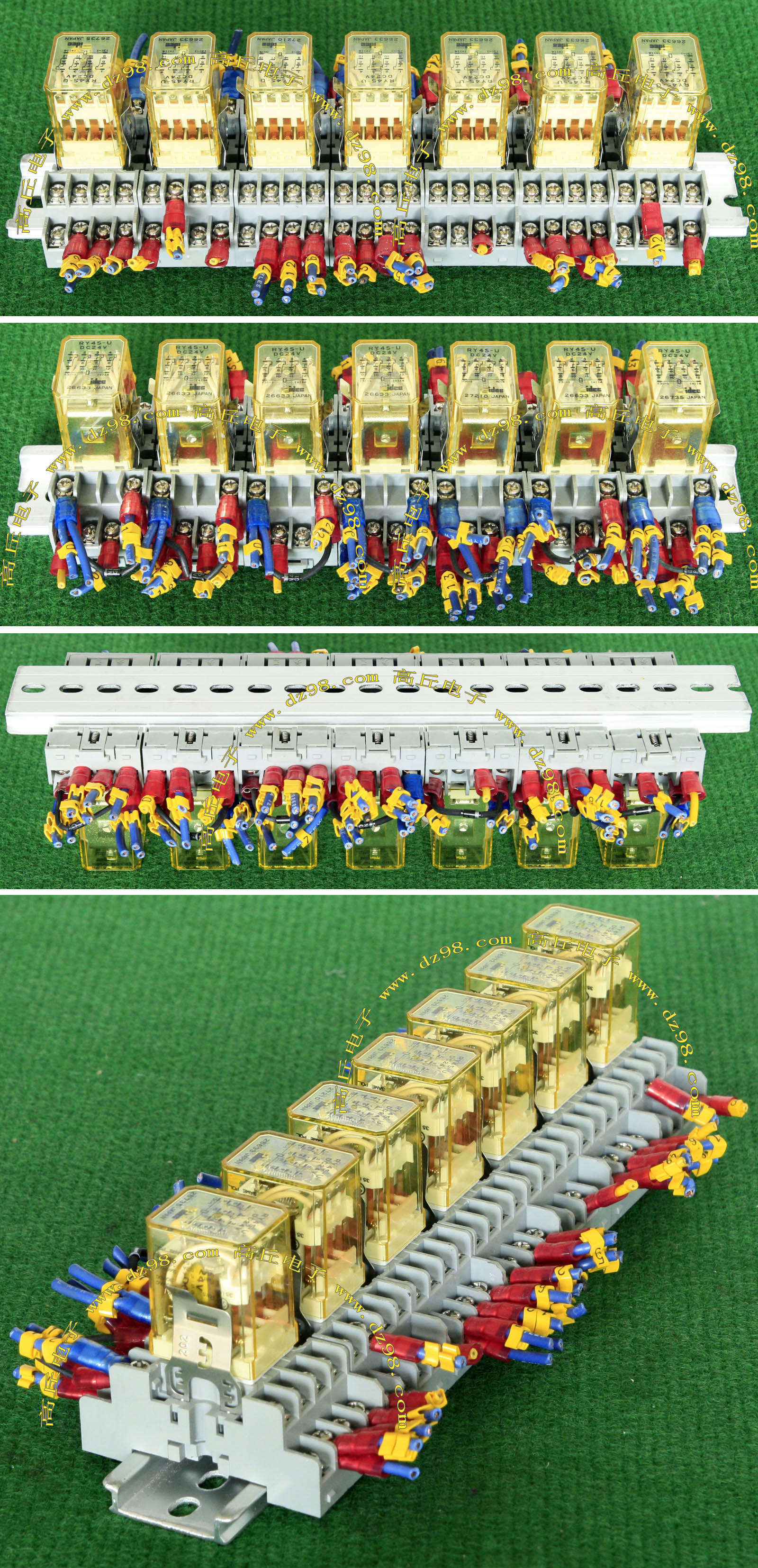 拆机件 | 进口设备拆下,外观9成新,每只都带原配导轨安装底座,占用30毫米导轨位置,线圈电压DC24V,4组常开常闭镀金触点, 触点工作电压240VAC,最大工作电流5A。整条7只带进口铝合金导轨重量约680克。 |
