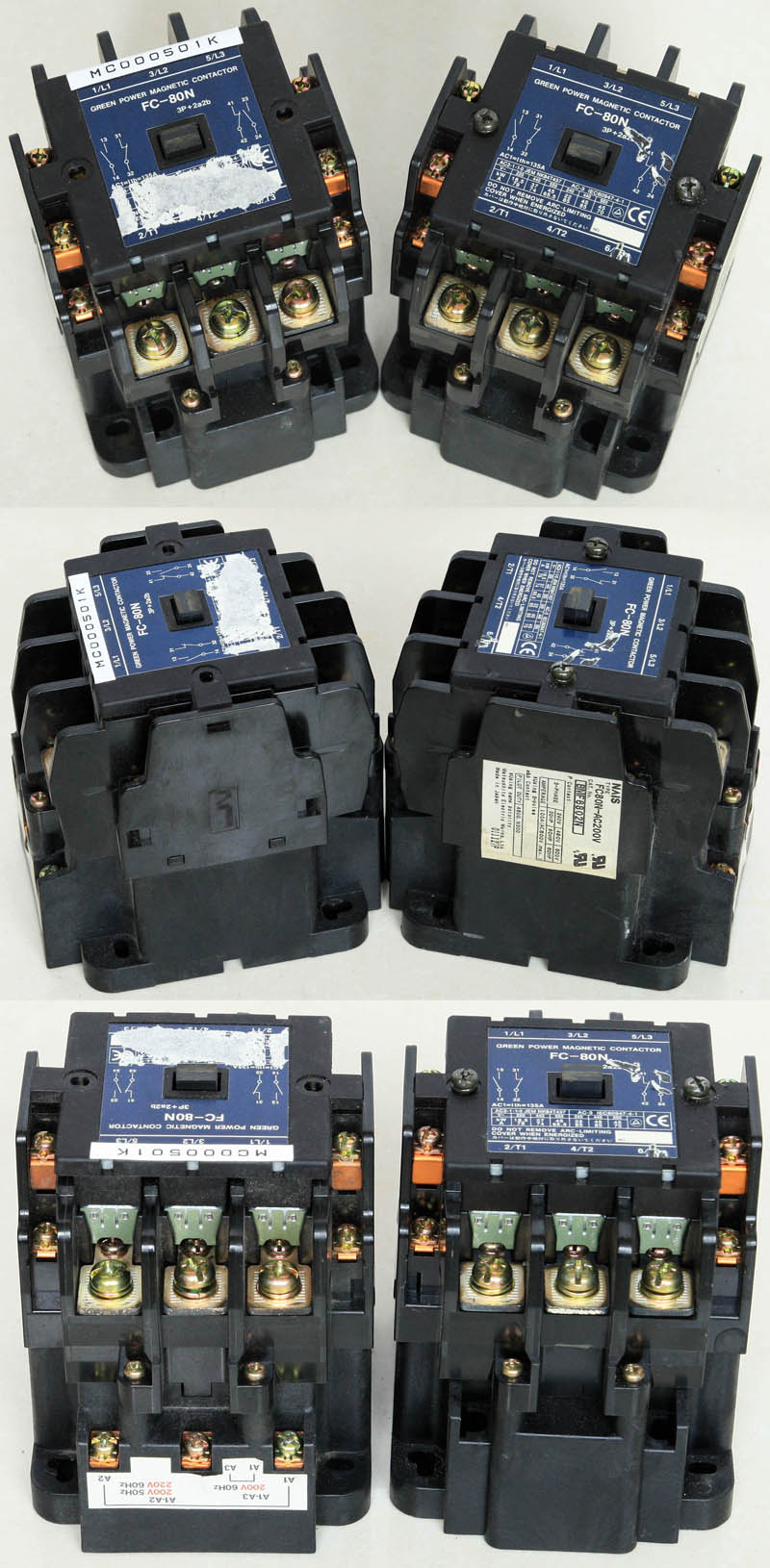 拆机件 | 拆机品,外观约8.5成新,基本都和图片差不多,产地:JAPAN,厂牌:日本富士,详细数据看实物图片标记,线圈电压AC100-110V,外形尺寸:87毫米x74毫米,高度98毫米。重量约600克。 |