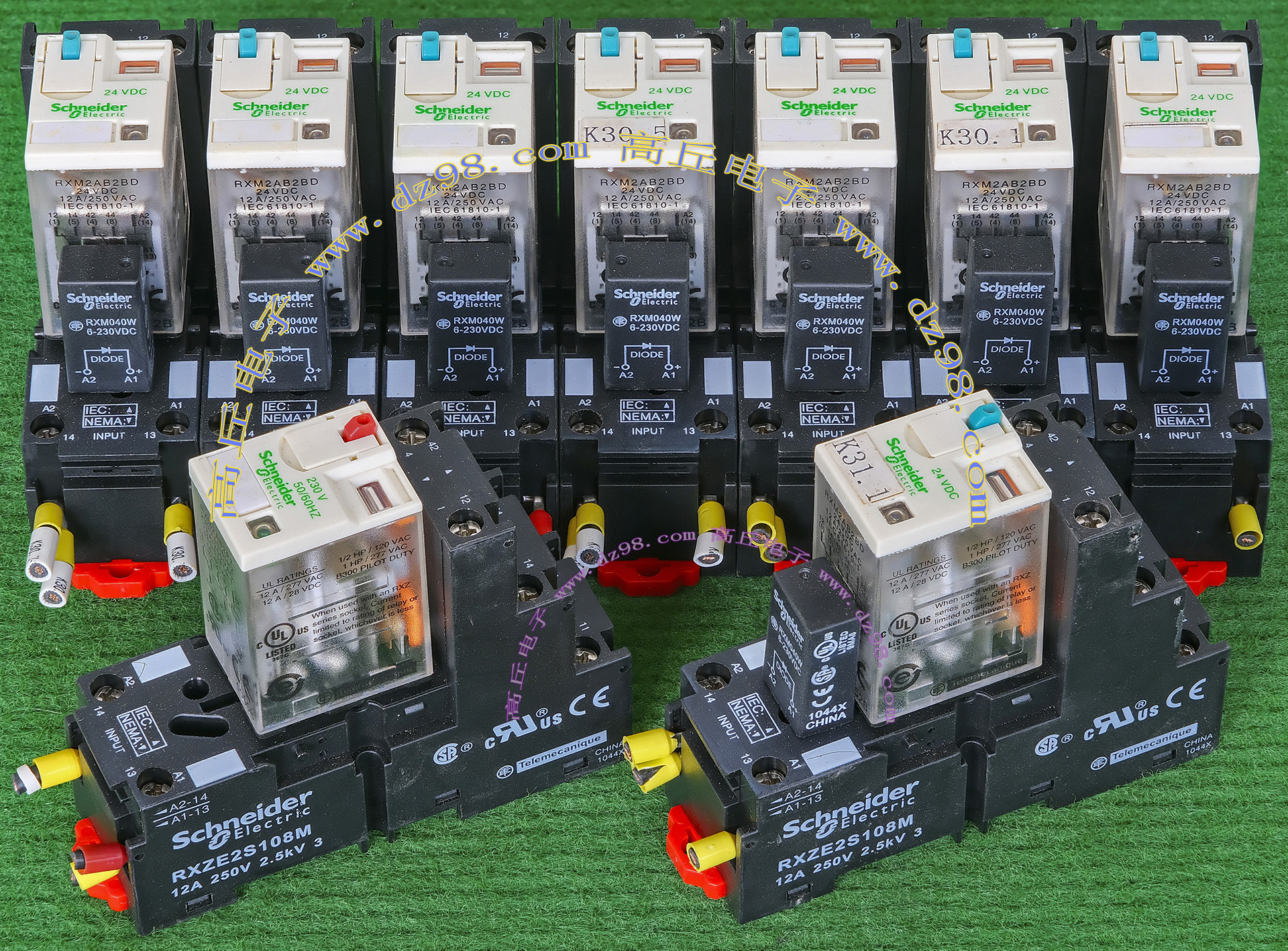 拆机件 | 进口设备拆下,外观8.5成新,每只都带导轨安装底座,占用34毫米导轨位置,线圈电压DC24V,2组常开常闭触点,触点工作电压250VAC,工作电流10A-20A。每只重量约200克。 |