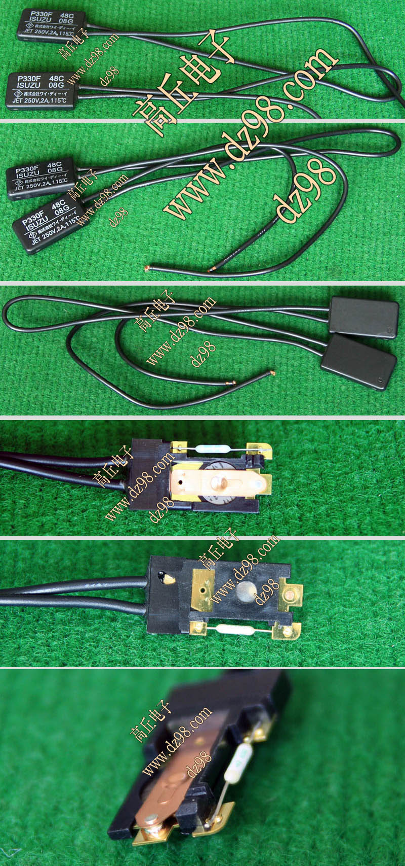 | 日本ISUZU铃木P330F 48摄氏度常闭温度开关BQA50 | 全新日本产温度开关,两只串联在一起,可以剪成单只使用,报价为两只(1对)连在一起价格,通常处于接通状态,温度超过48摄氏度 变为断开,温度下降后恢复接通状态。感应头尺寸:38x21x6.2毫米,引线长度17厘米,每对重量约25克。 | 单价20元。 |
