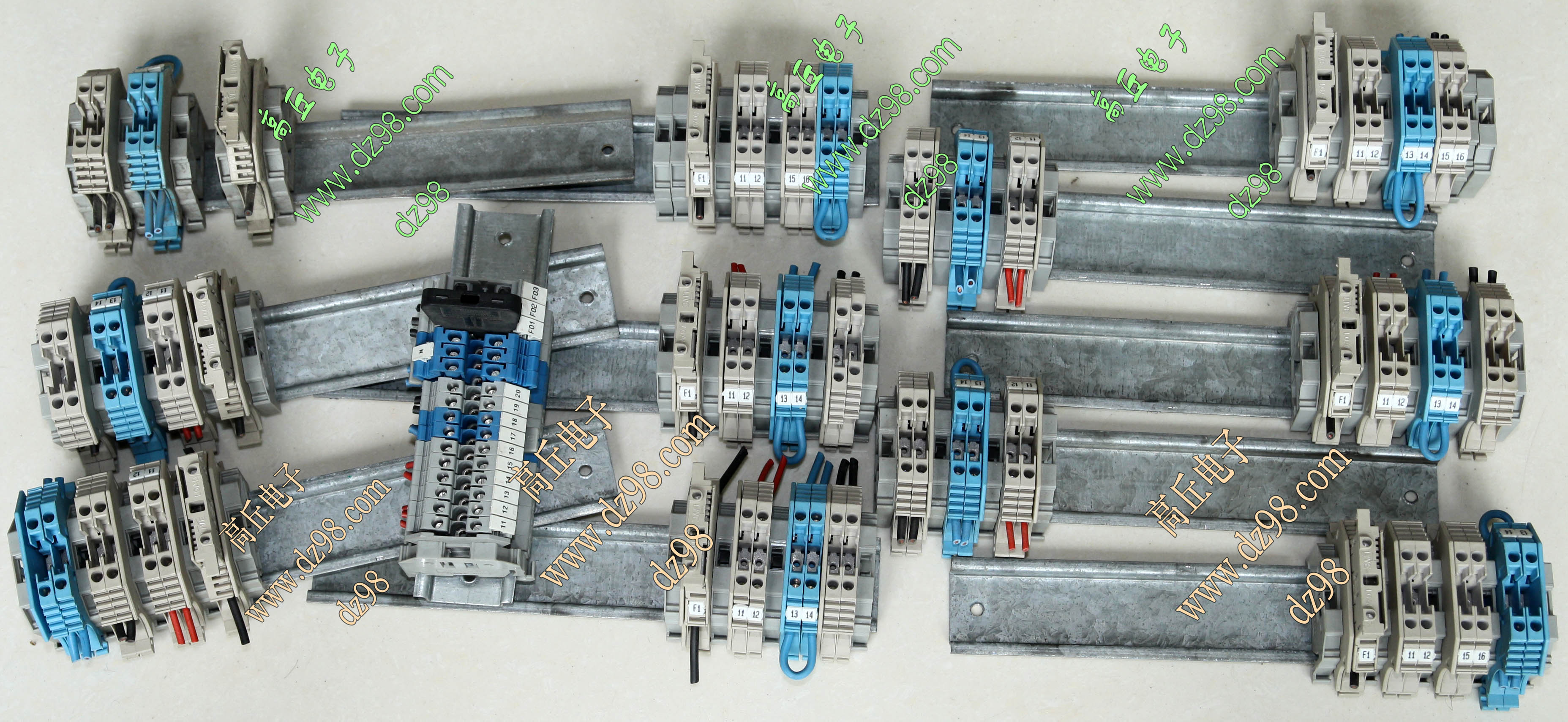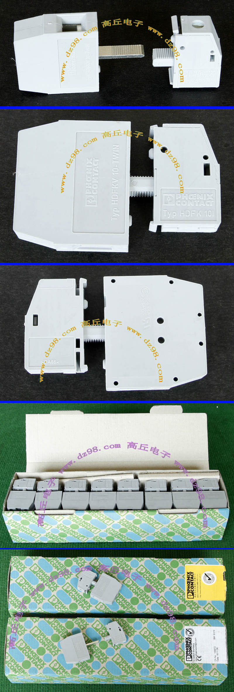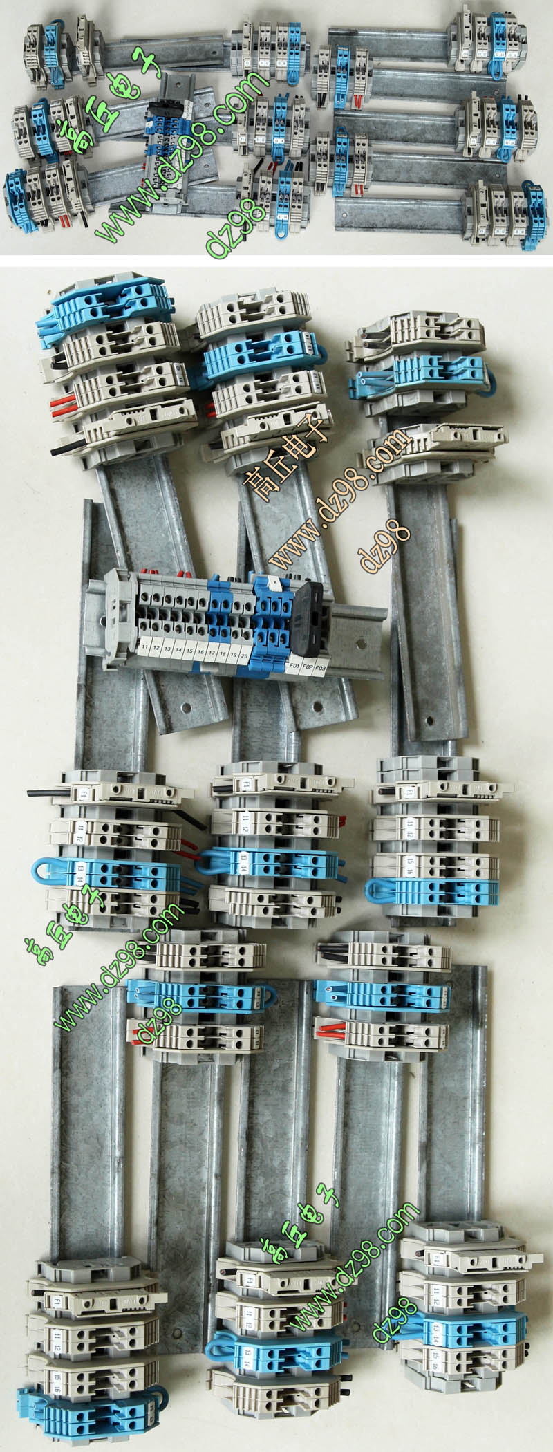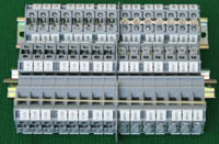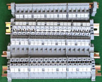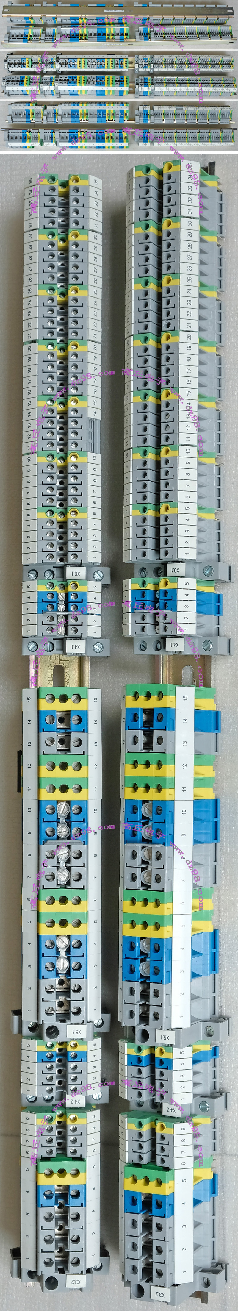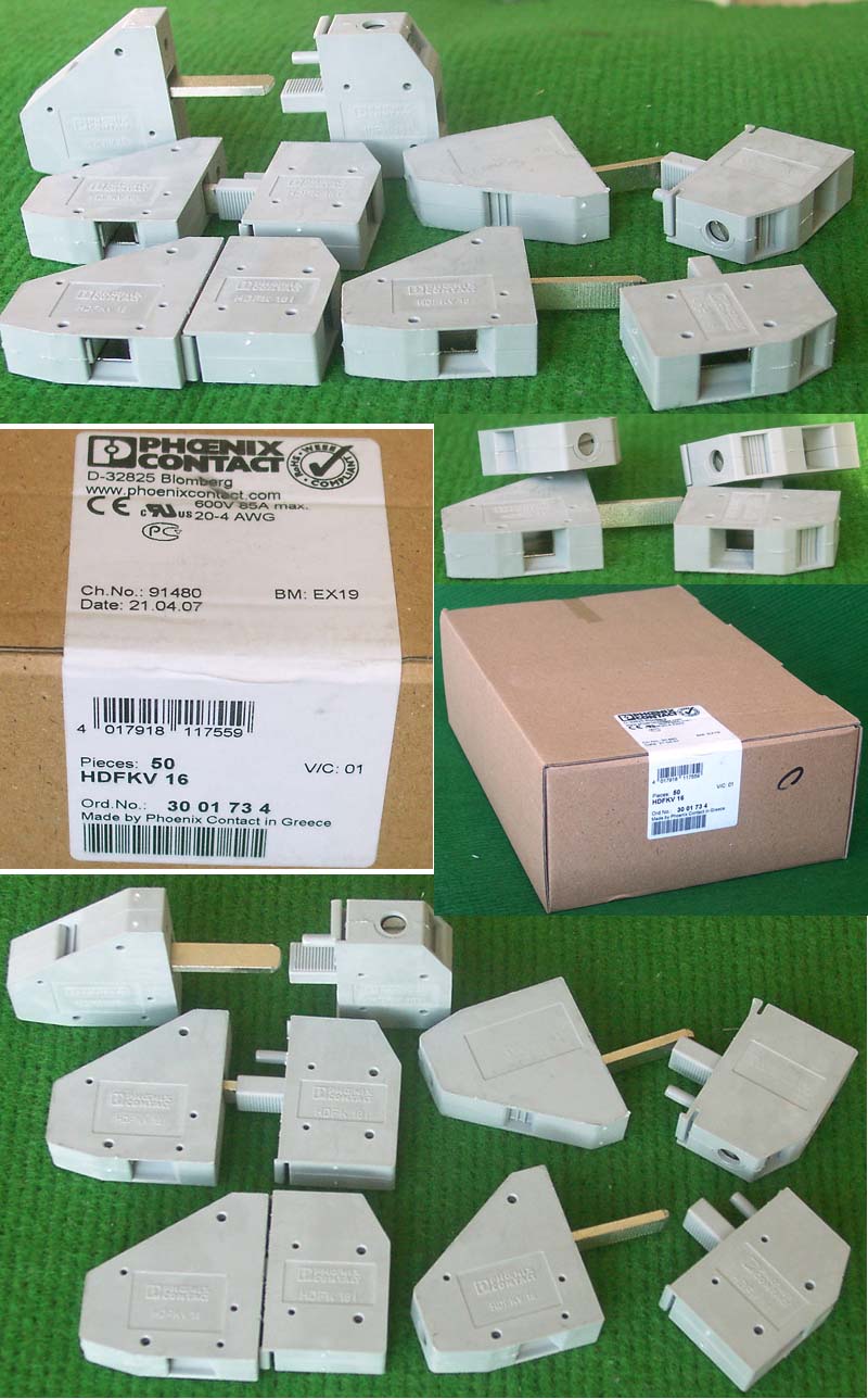 导轨按装式,厂牌:菲尼克斯,供货商:南京菲尼克斯电气有限公司,本商品为:上海贝尔通信向菲尼克斯采购的用后库存余货,每组均带导轨 ,重量约690克。本接线排有下面单元组合:(1)型号:typ D-UK 16N,电压600V,电流85A,7个单元,其中3个带中间连接带铜连接条。(2)型号:typ D-UK 4/10,电压600V,电流20A,5个单元,其中3个带中间连接带铜连接条。(3)6单元保险丝座可以装配10A以内,5mm x 20mm保险丝。 |