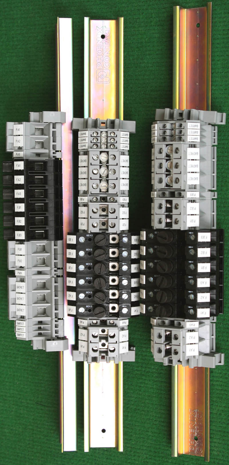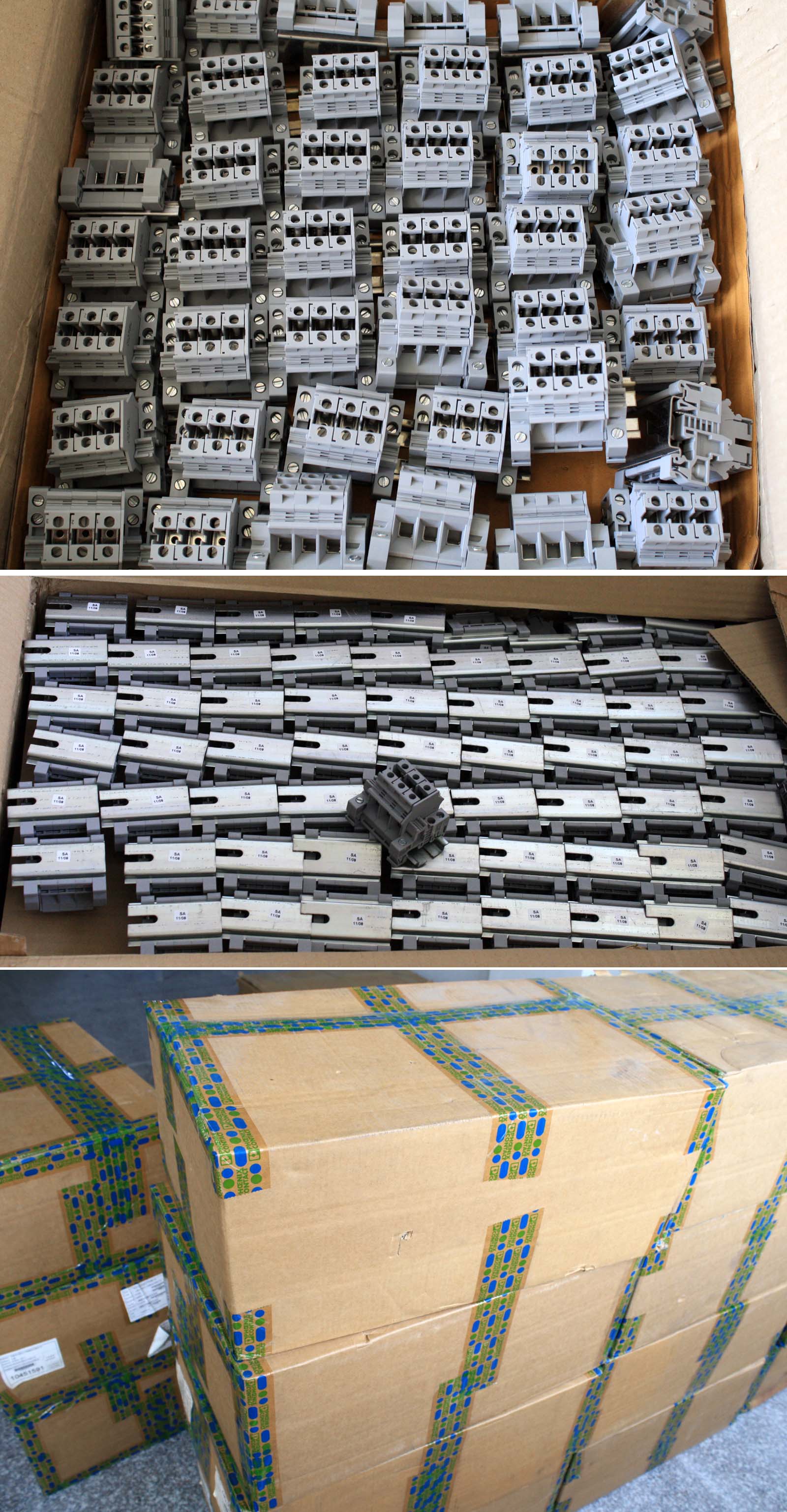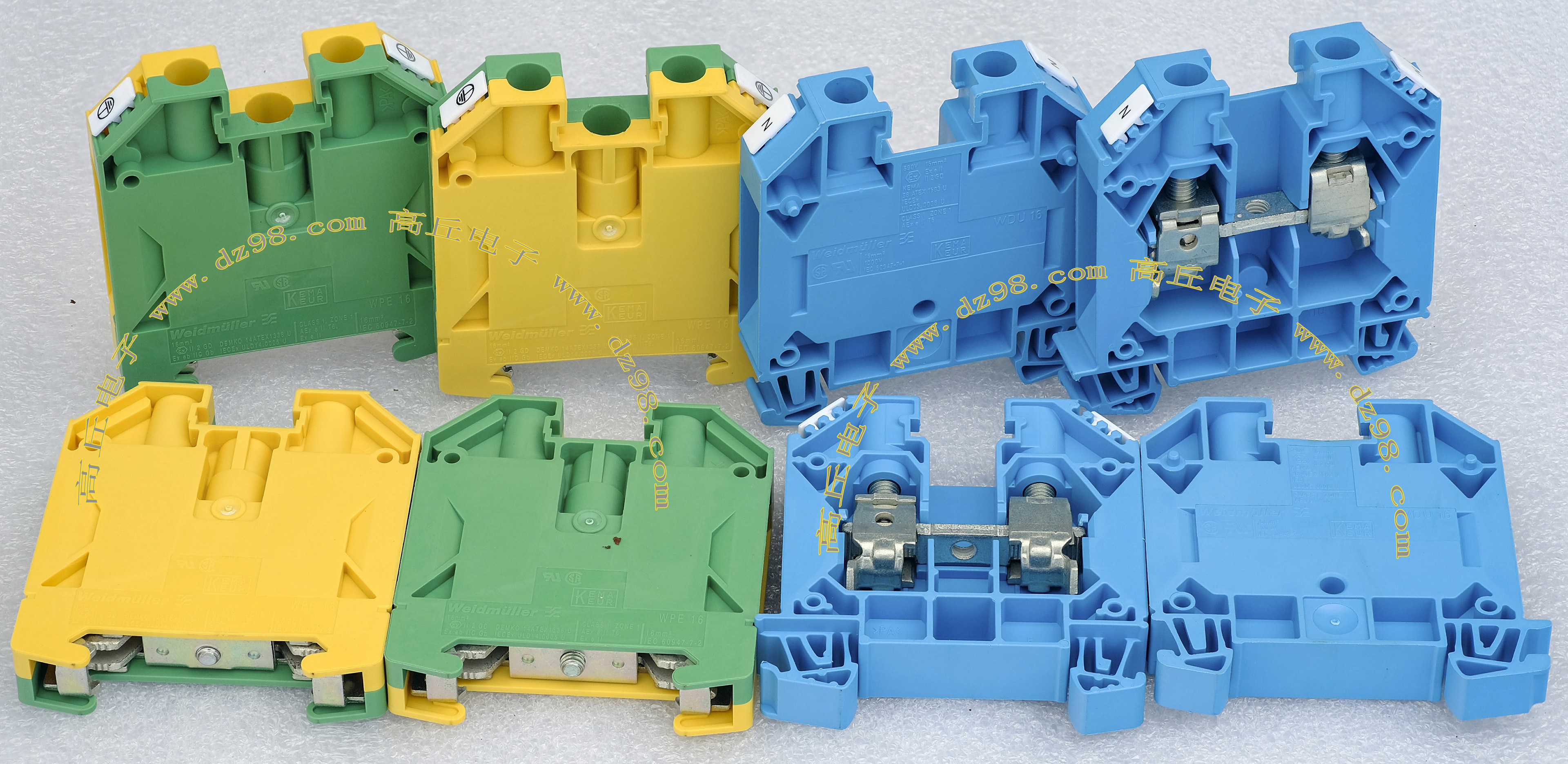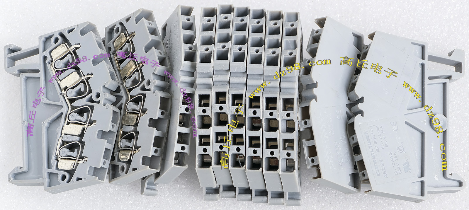 导轨按装式,厂牌:菲尼克斯,供货商:南京菲尼克斯电气有限公司,本商品为:上海贝尔通信向菲尼克斯采购的用后库存余货,每组均带导轨 ,重量约690克。本接线排有下面单元组合:(1)型号:typ D-UK 16N,电压600V,电流85A,7个单元,其中3个带中间连接带铜连接条。(2)型号:typ D-UK 4/10,电压600V,电流20A,5个单元,其中3个带中间连接带铜连接条。(3)6单元保险丝座可以装配10A以内,5mm x 20mm保险丝。 |