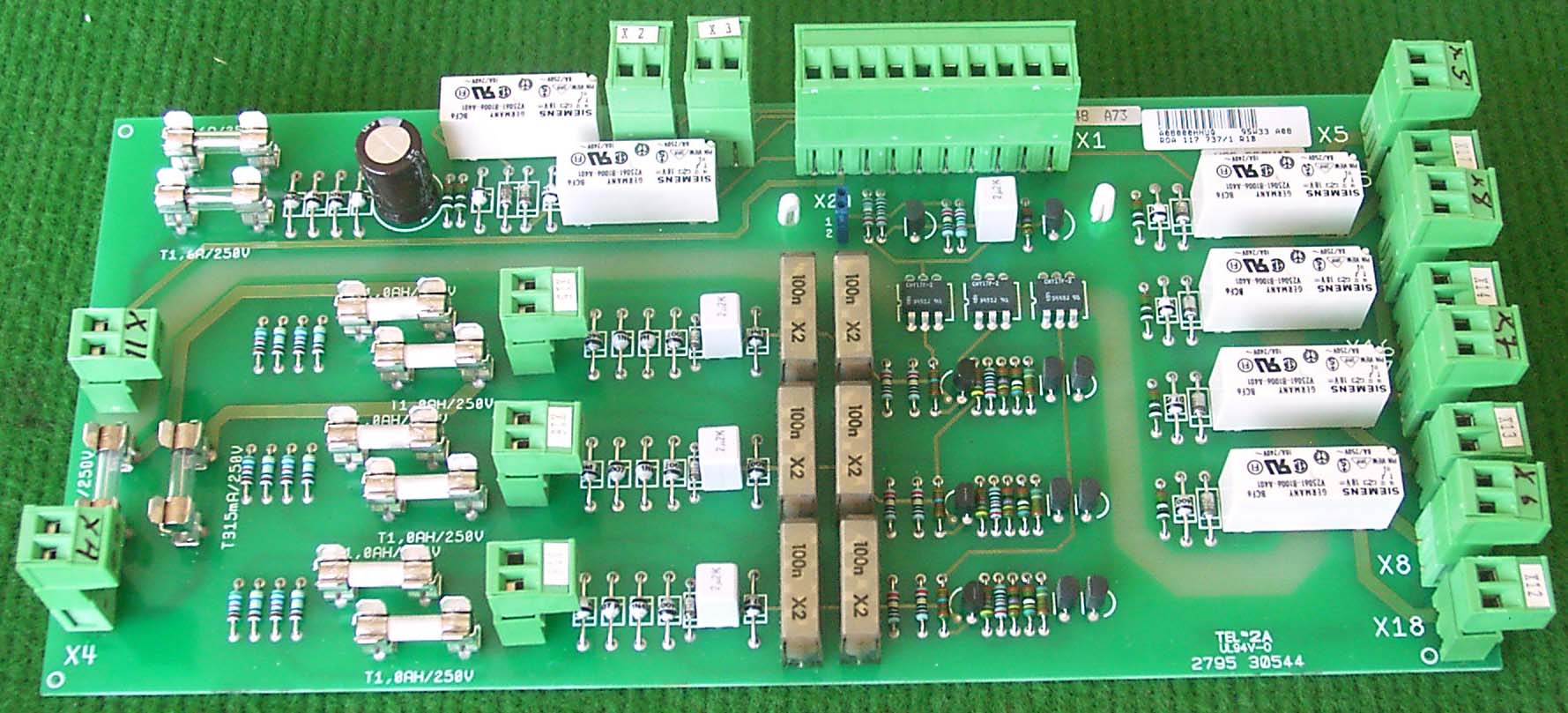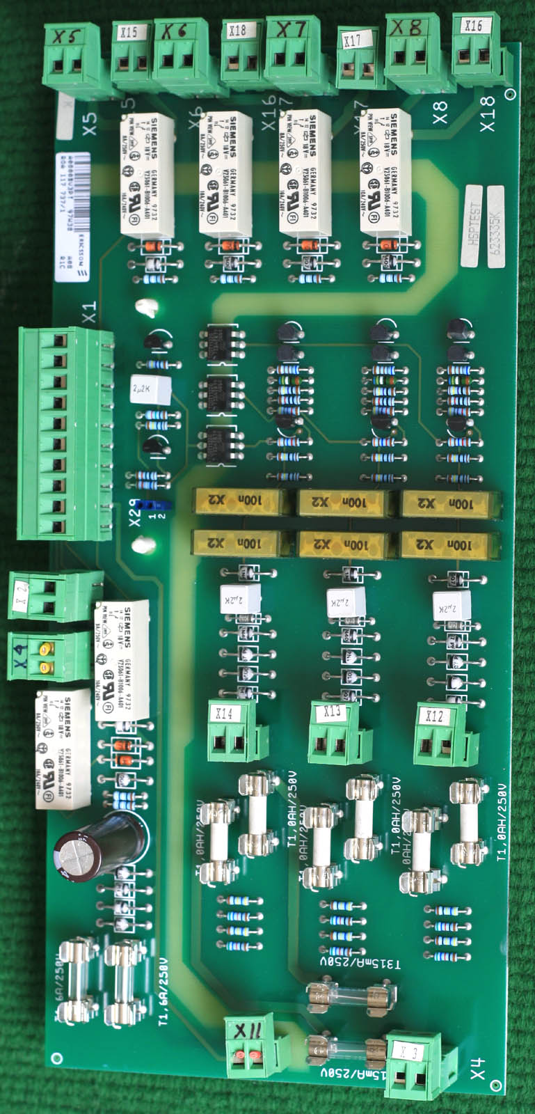 拆机件,供拆零件用,板上主要元件:菲尼克斯2端子接插件15只,菲尼克斯10端子接插件1只,西门子继电器6只,其它一些小零件等。 外形尺寸;长度260毫米,宽度120毫米,高度33毫米,重量约290克。 |