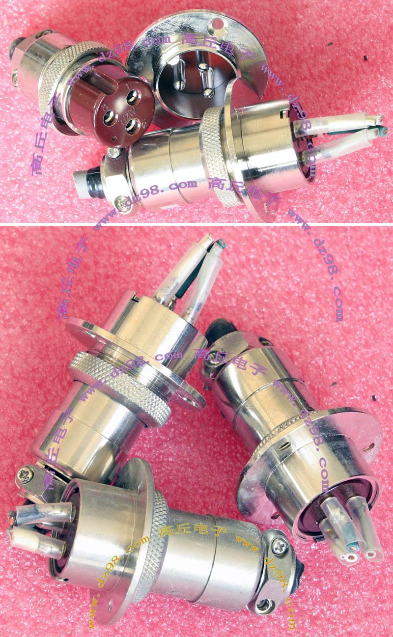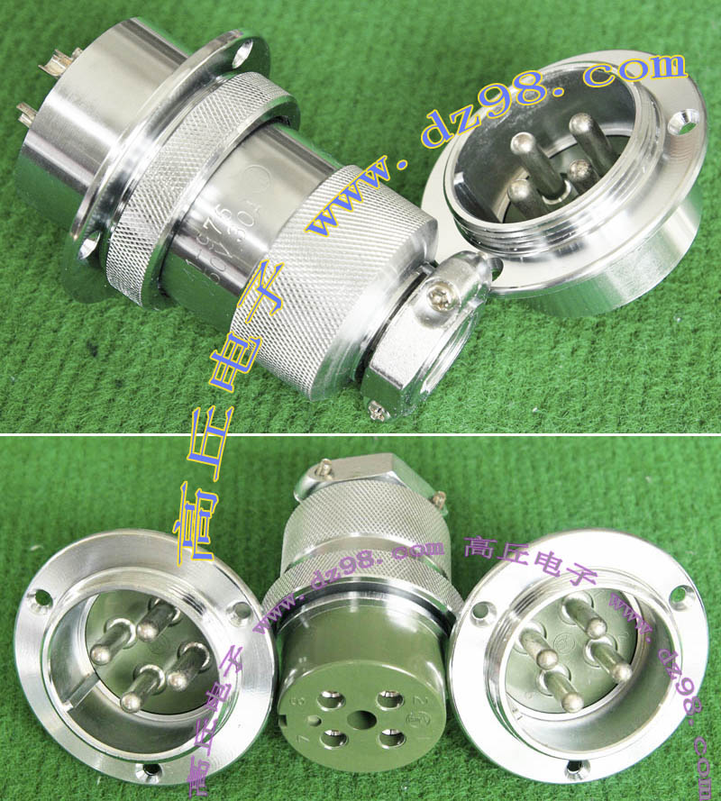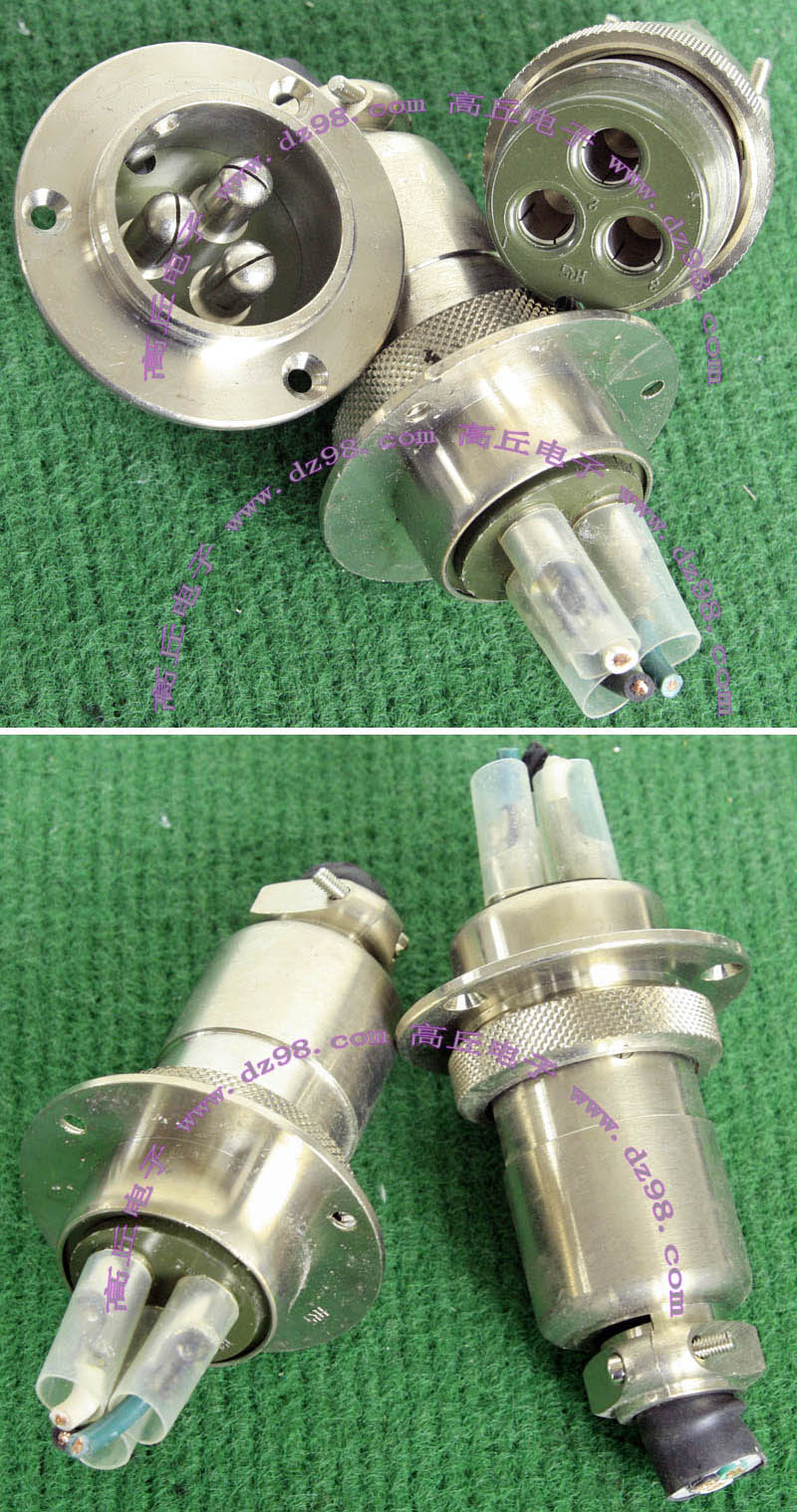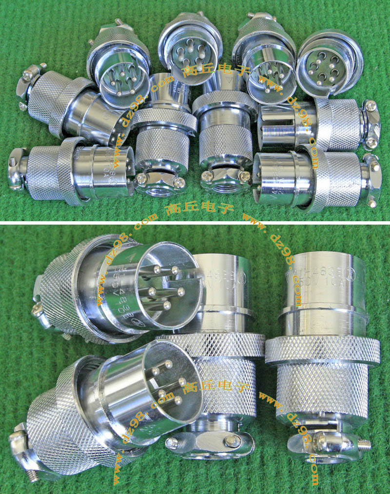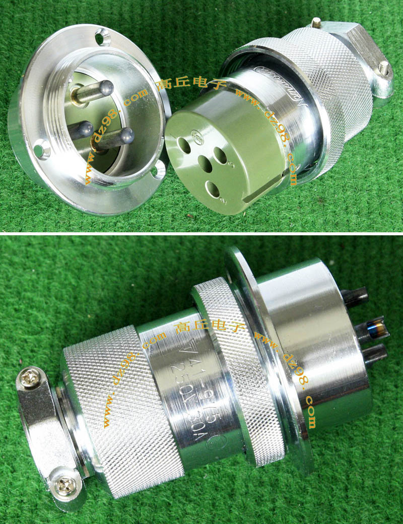 全新进口备件,做工精致,军品级插头与插座,共4P,每芯承受电流估计25-35A,铝合金外壳,镀银导电芯,重量300克,安装开孔直径35mm,安装螺丝孔距离35mm。 |