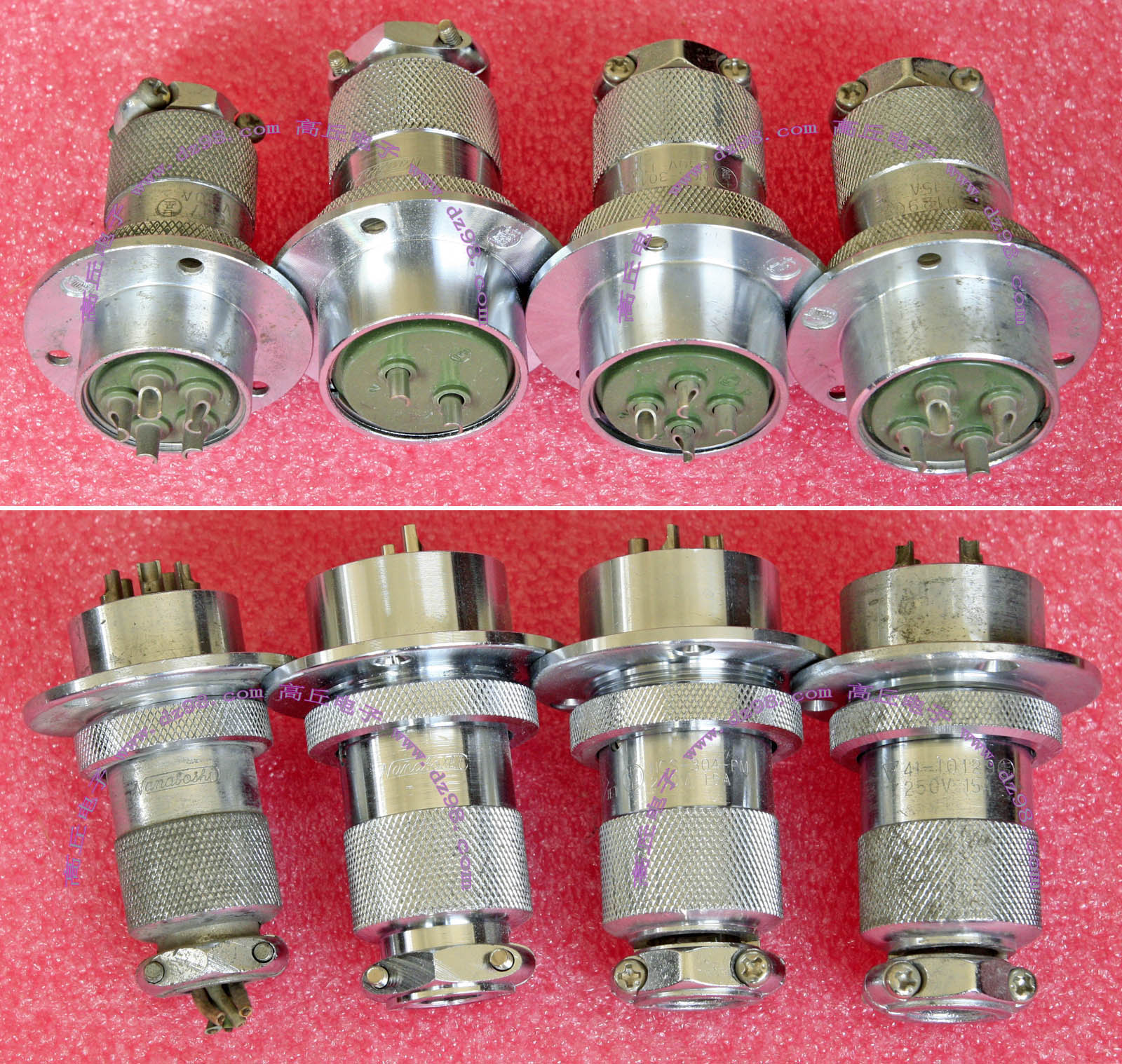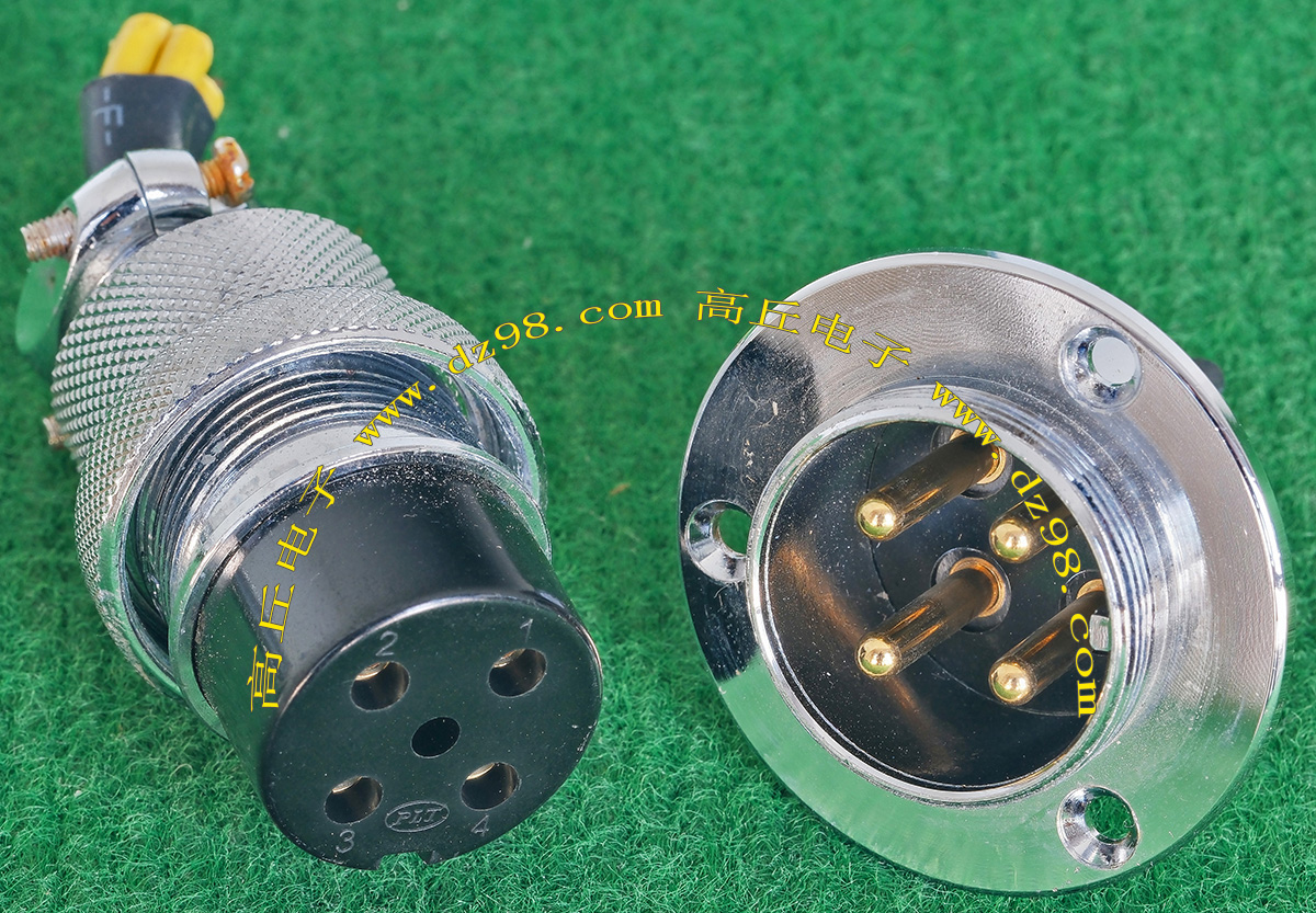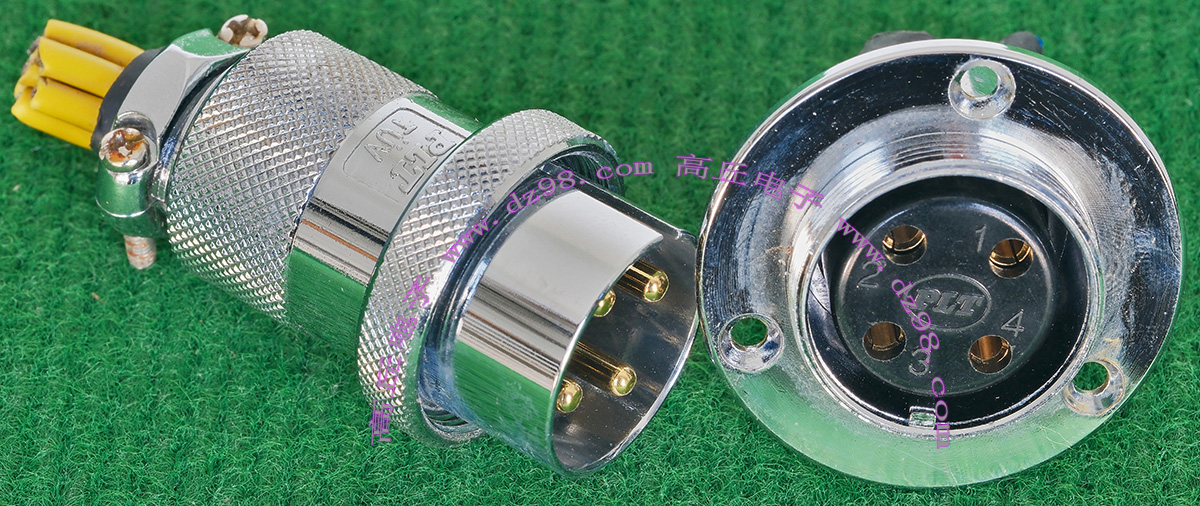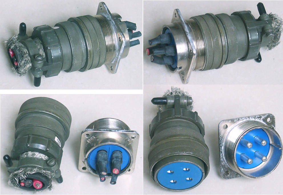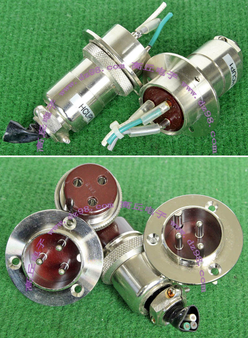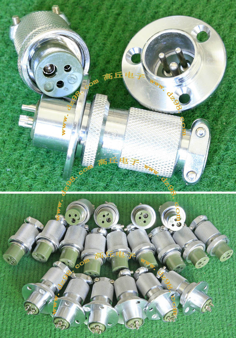 全新进口备件,做工精致,军品级插头与插座,共4P,每芯承受电流估计25-35A,铝合金外壳,镀银导电芯,重量300克,安装开孔直径35mm,安装螺丝孔距离35mm。 |