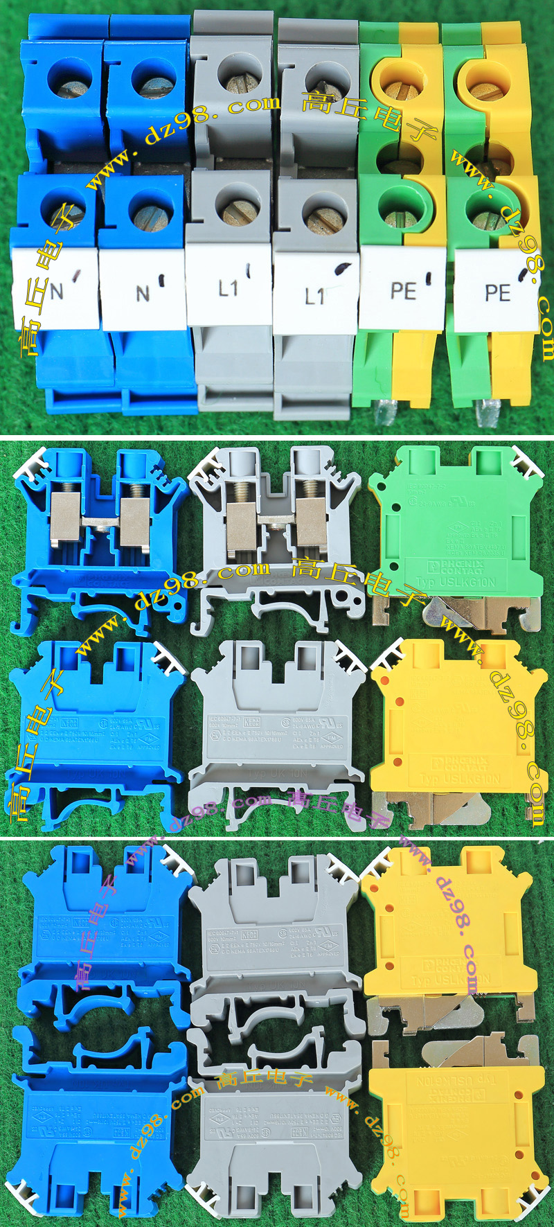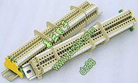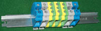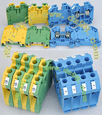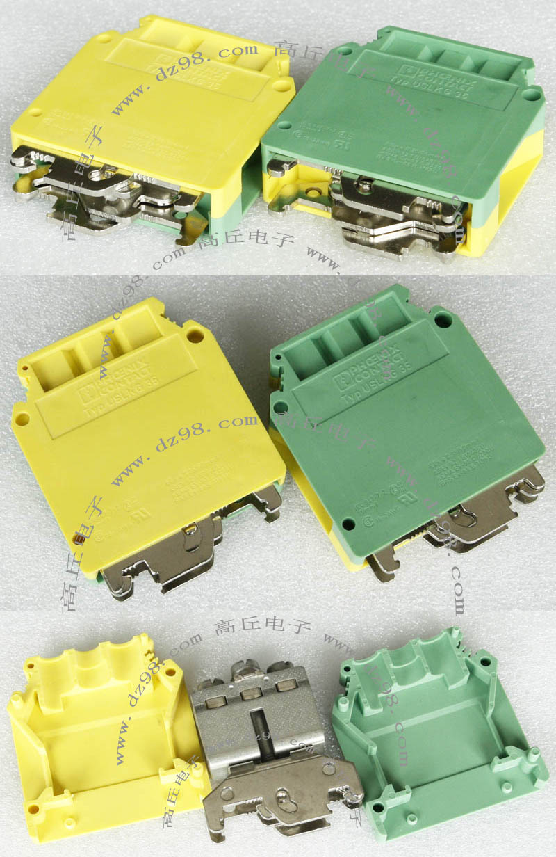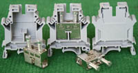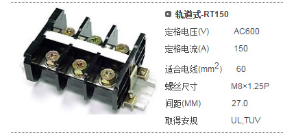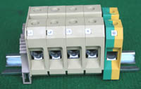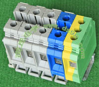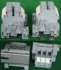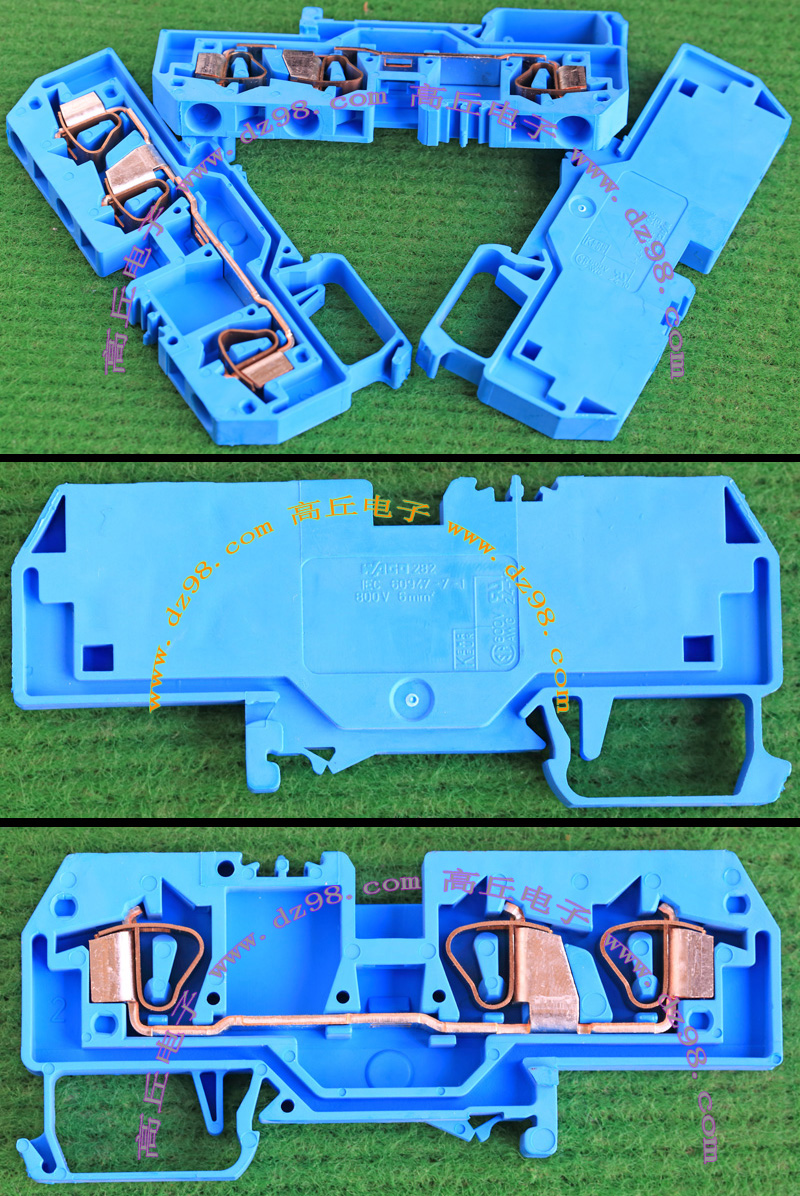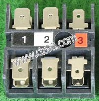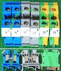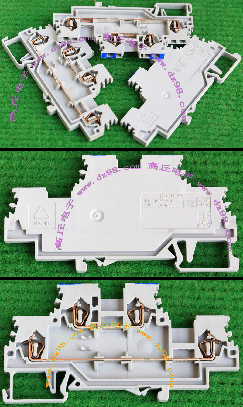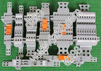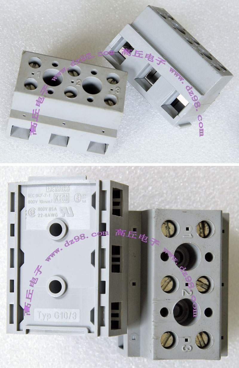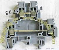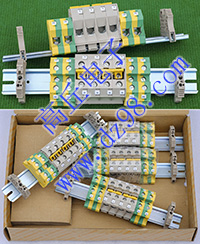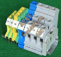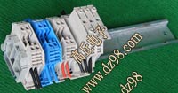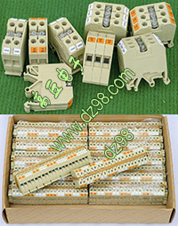 型号:typ UK 10N,电压600V,电流65A,导轨按装式,每组3只连在一起,拆掉中间的连接铜条可分为独立3个单元,重量约61克。 |