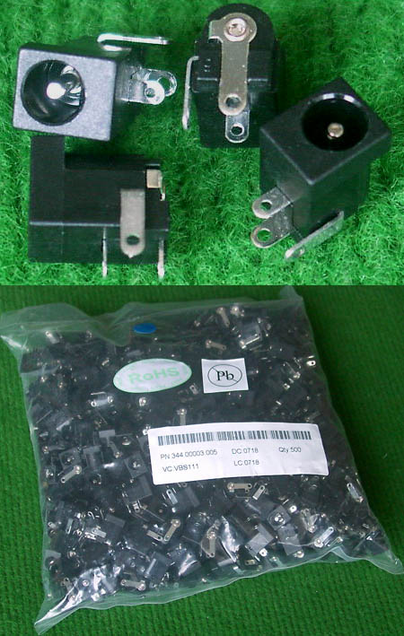 全新进口插座,符合外直径5.5mm,内直径2mm电源插头相配。每个包装500只。 |