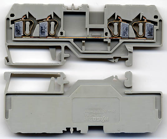 拆机件,WAGO 281,符合导线4平方内,标记电压电流:800V-26A。 |