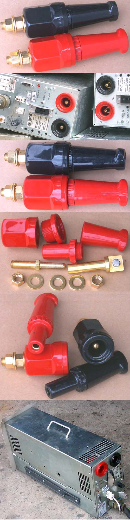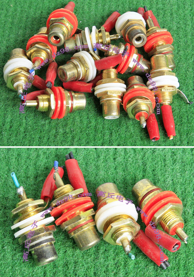 拆机件,红色/黑色成对出售,高绝缘塑料外壳,耐压600V,电流250A,镀金导电芯,整体每对重量800克,仅镀金导电芯每对重量540克。用本大电流接插件代替接线柱具有低电阻、良好的接触性能、使用方便,可用于小型电焊机,大型电池充电,高级音频功放的喇叭输出等。 安装座铜柱直径1厘米(前端接触头),总长度8厘米,插头铜管套外直径1.6厘米,总长度厘8.8米,铜柱与铜管套接触位置达5厘米。 |