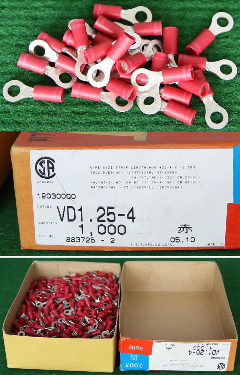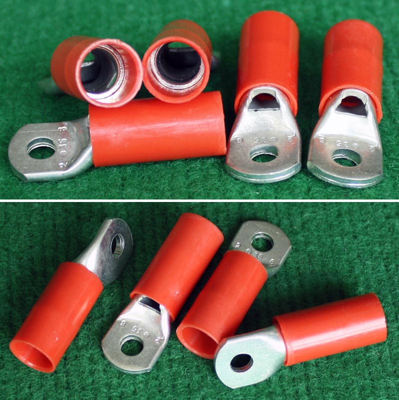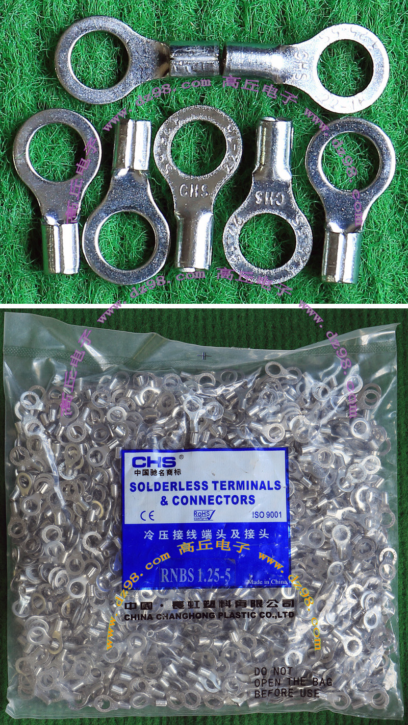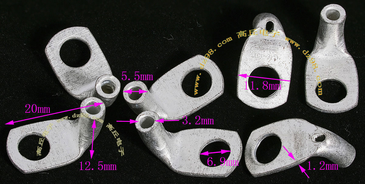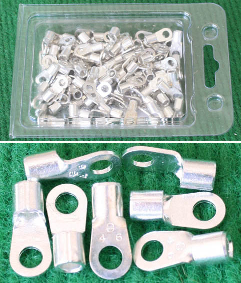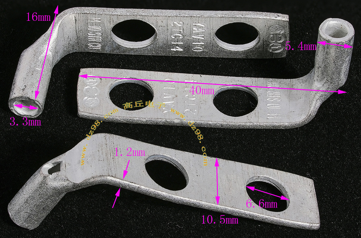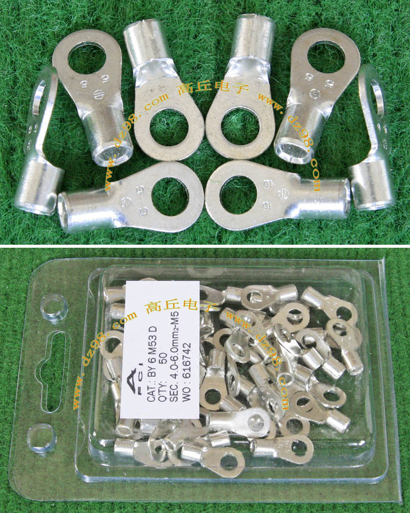 全新库存,外形尺寸:长度33.5mm、安装头孔直径6.4mm, 安装头宽度12mm,铜材厚度1.2mm,压线处内孔直径5.5mm,每只重量约7.2克。 |