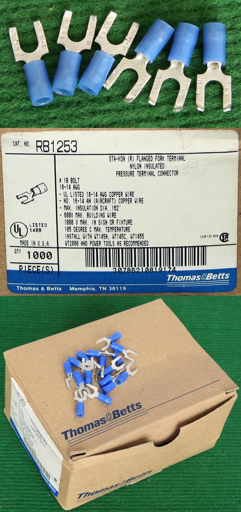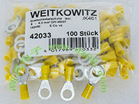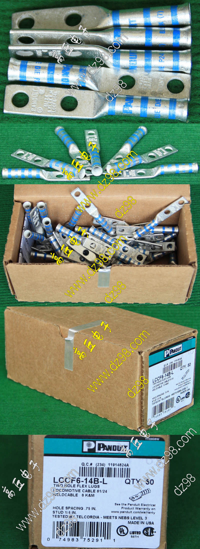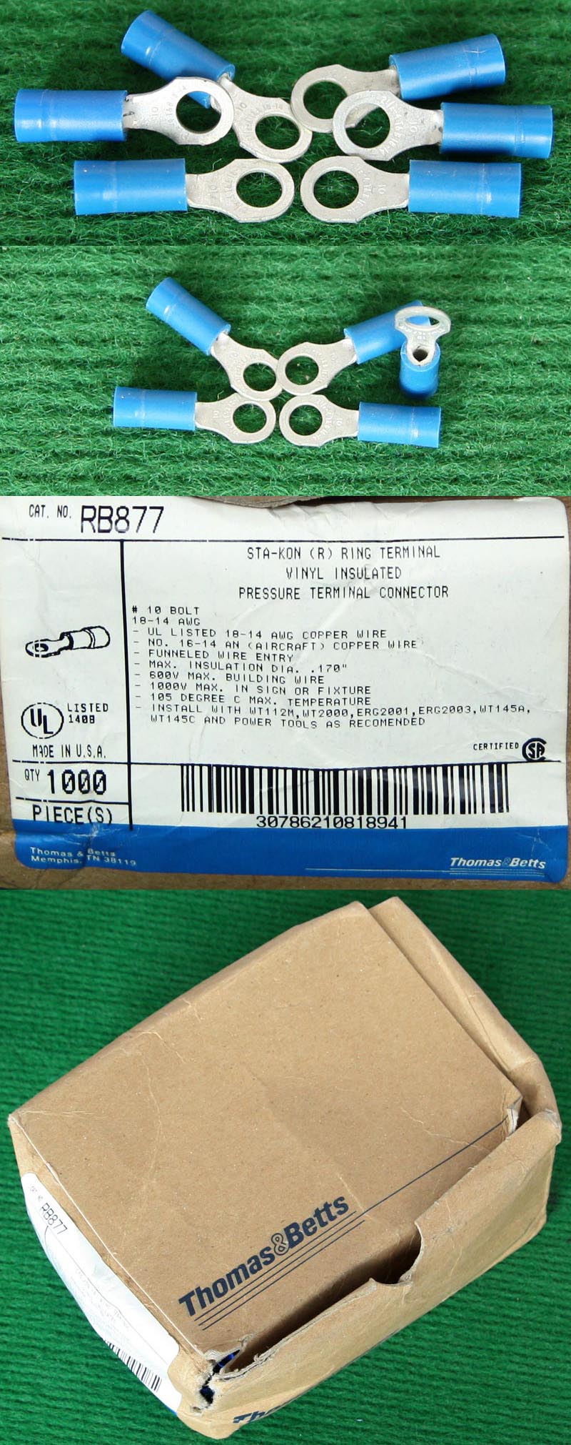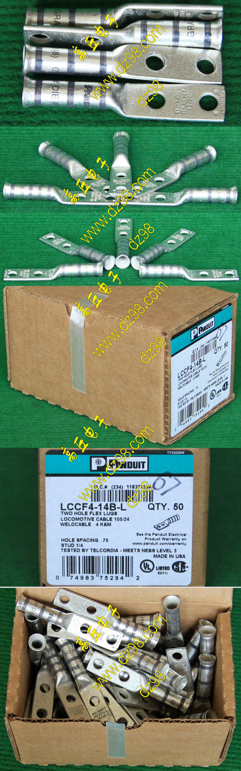 全新库存,产地:SPAIN,品牌:FCI-BURNDY,外形尺寸:长度17.8mm、圆头内孔直径4.3mm,圆头内孔外径7.8mm,铜材厚度1mm,压线处内孔直径3.5mm,每100只带小塑料包装盒重量约148克。 |