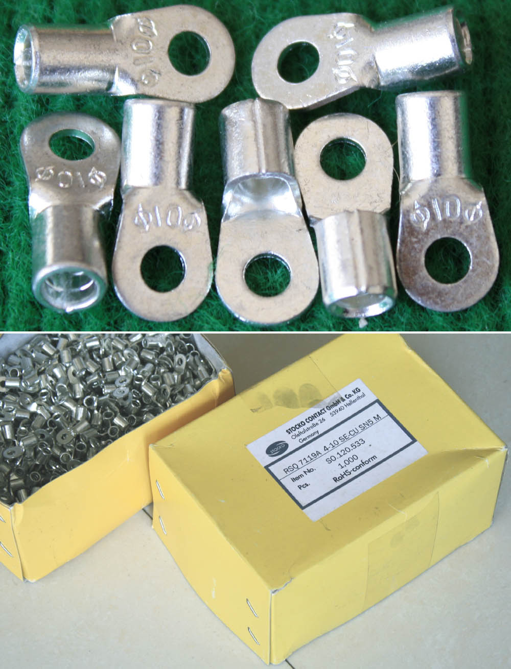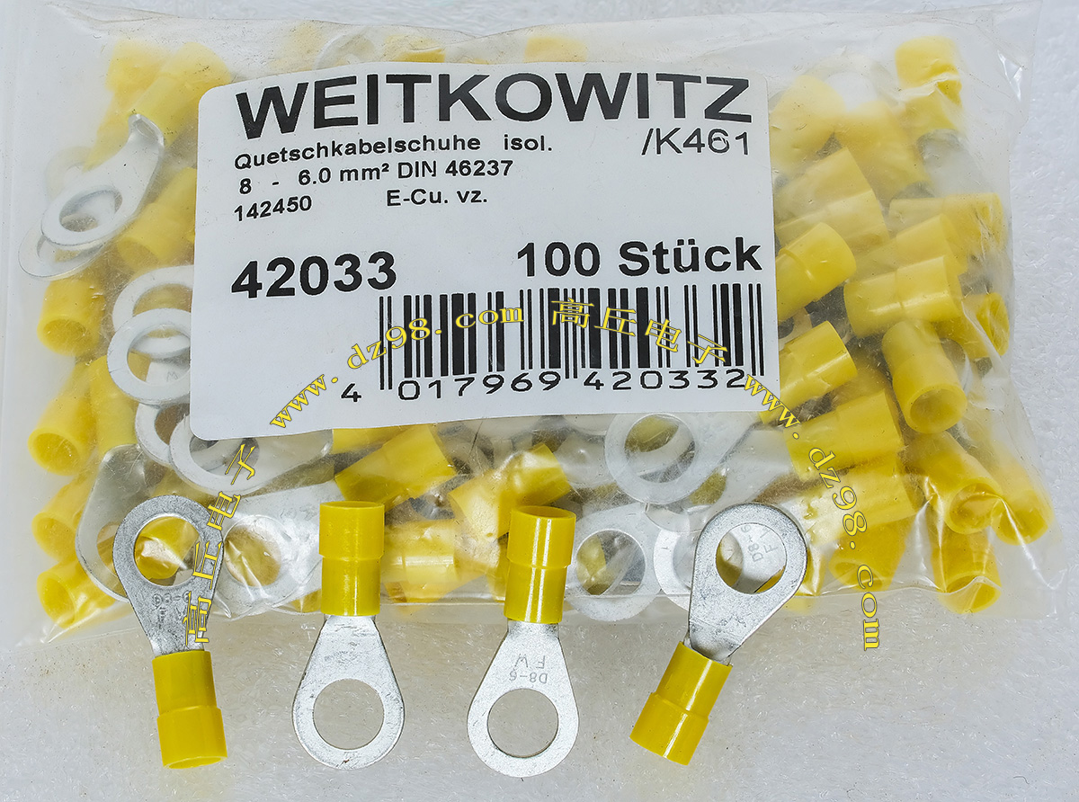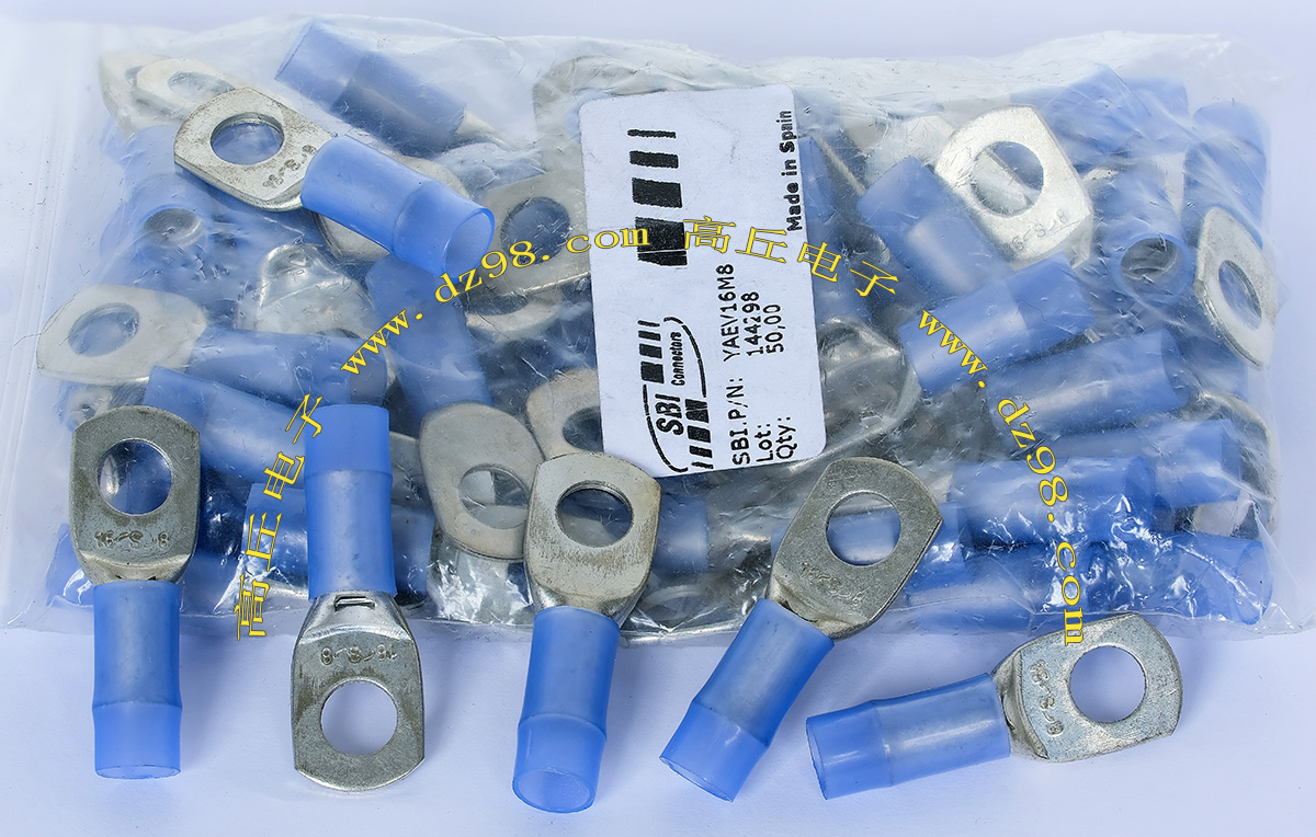 全新库存,德国进口,品牌:FCI-BURNDY,外形尺寸:长度21mm、圆头内孔直径4.3mm,圆头内孔外径10mm,铜材厚度1.1mm,压线处内孔直径4.5mm,每100只重量约237克。 |