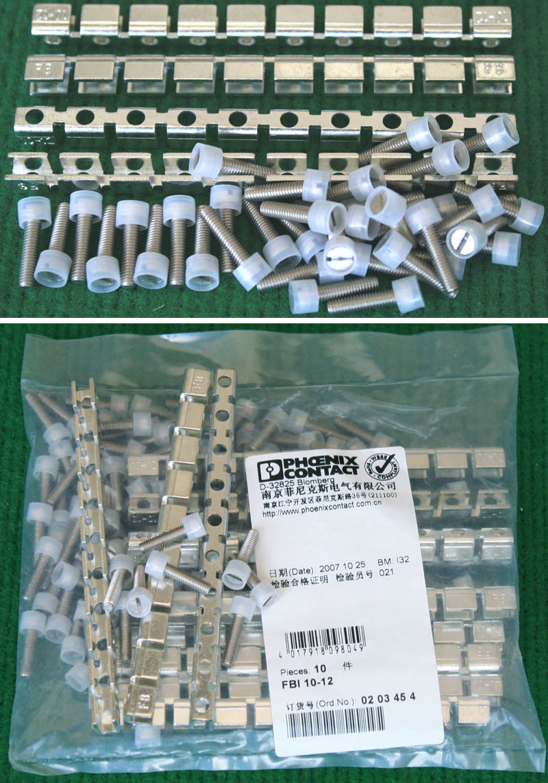 厂牌:菲尼克斯,供货商:南京菲尼克斯电气有限公司,全新原装,适合配用型号:typ UK 16N系列接线端子,可使多个端子连通,连接长短可根据需要切断,能与本网页的商品编号BQC419、BQC418、BQC414、BQC361配合使用。 配原装通锣丝,一套等于:10单元铜条1条,10只铜锣丝,每套重量约43克。 |