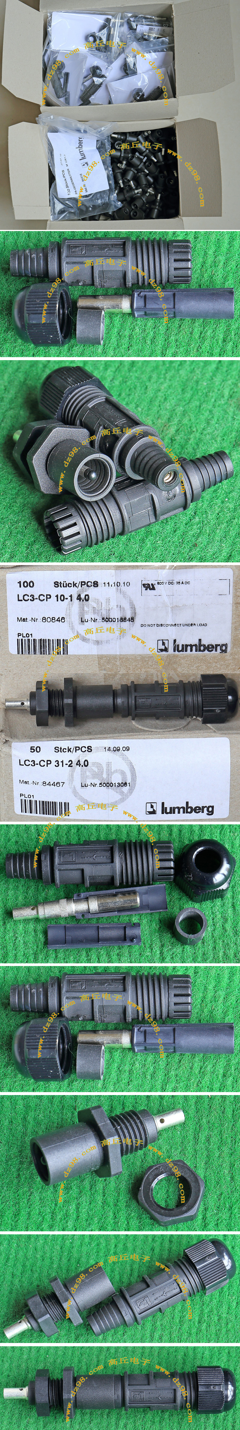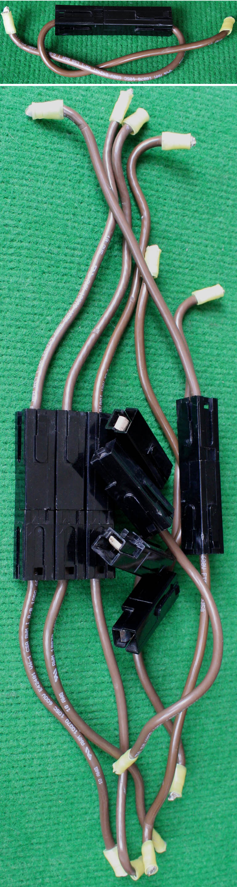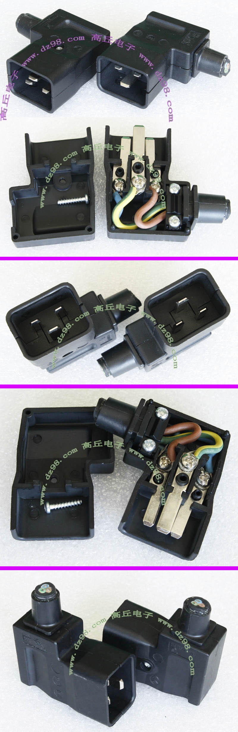 拆机件,引线长度约8厘米,导线有多股细铜线组合,极柔软(可在1.5厘米直径卷360度),最大电流25A。 本插头报价为一个单元对插,重量约38克。每只都设计有卡口,可以纵横多单元任意组合。 |