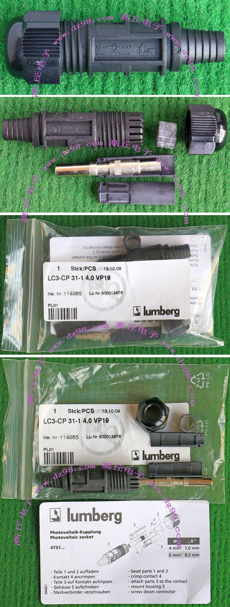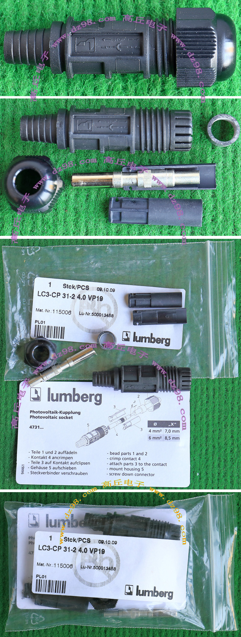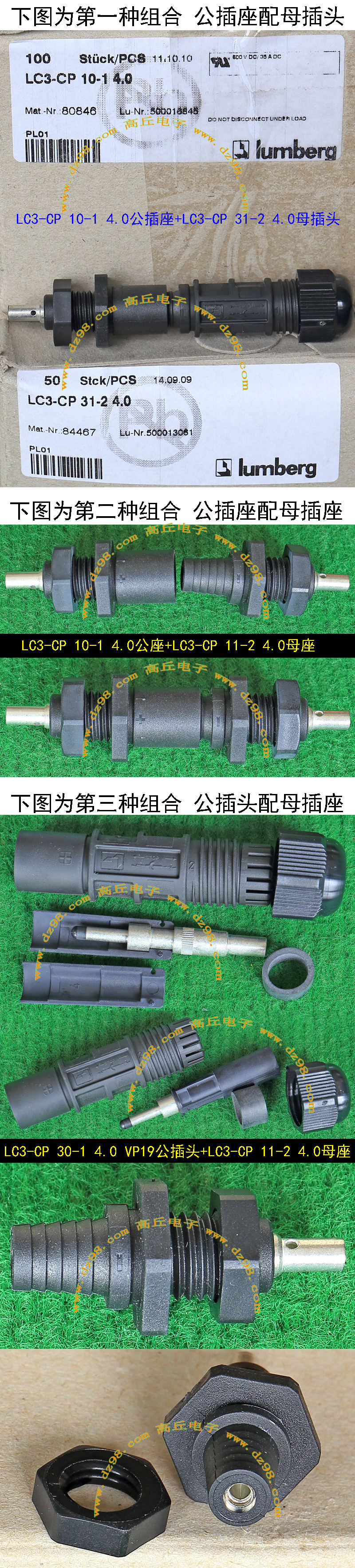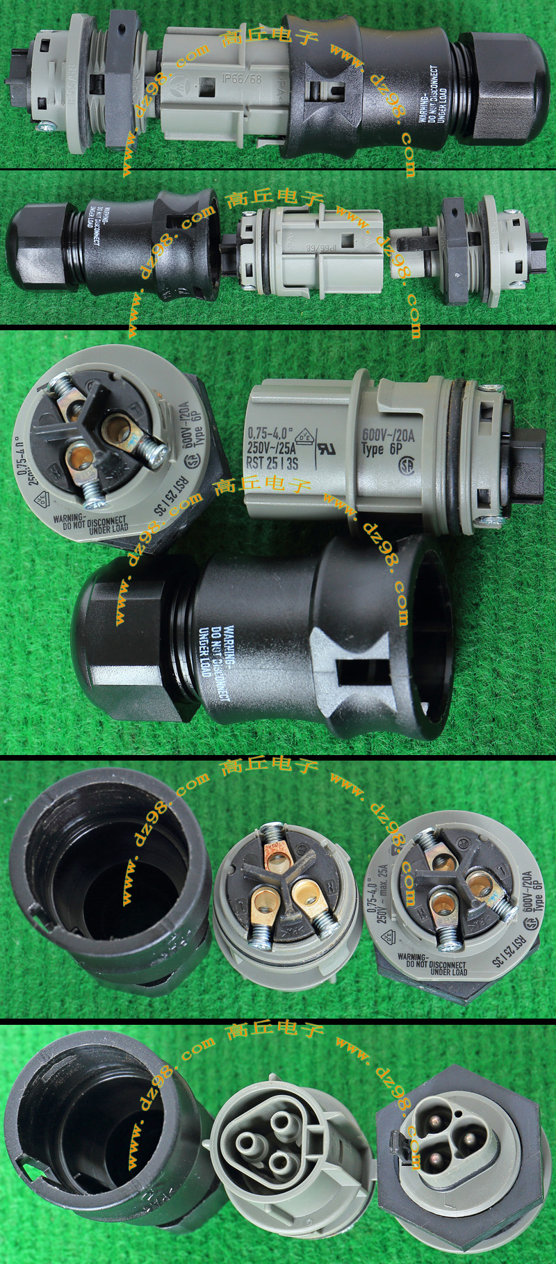 拆机件,引线长度约8厘米,导线有多股细铜线组合,极柔软(可在1.5厘米直径卷360度),最大电流25A。 本插头报价为一个单元对插,重量约38克。每只都设计有卡口,可以纵横多单元任意组合。 |