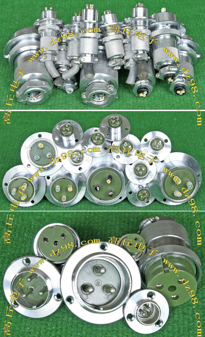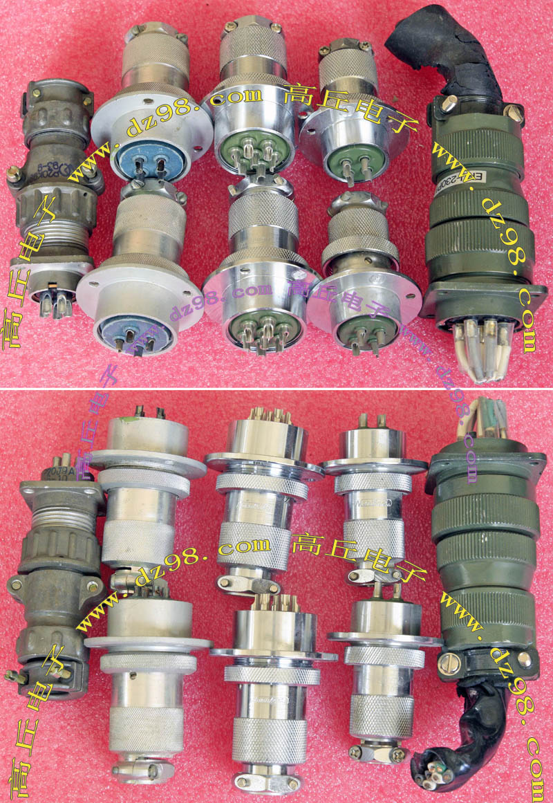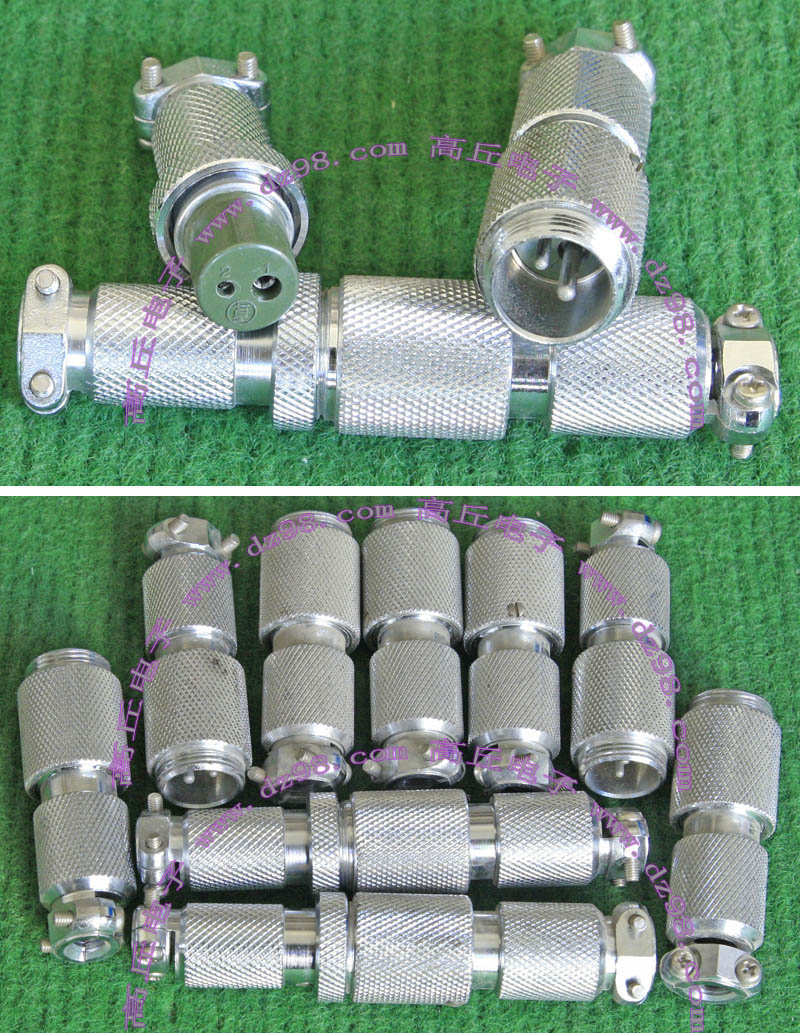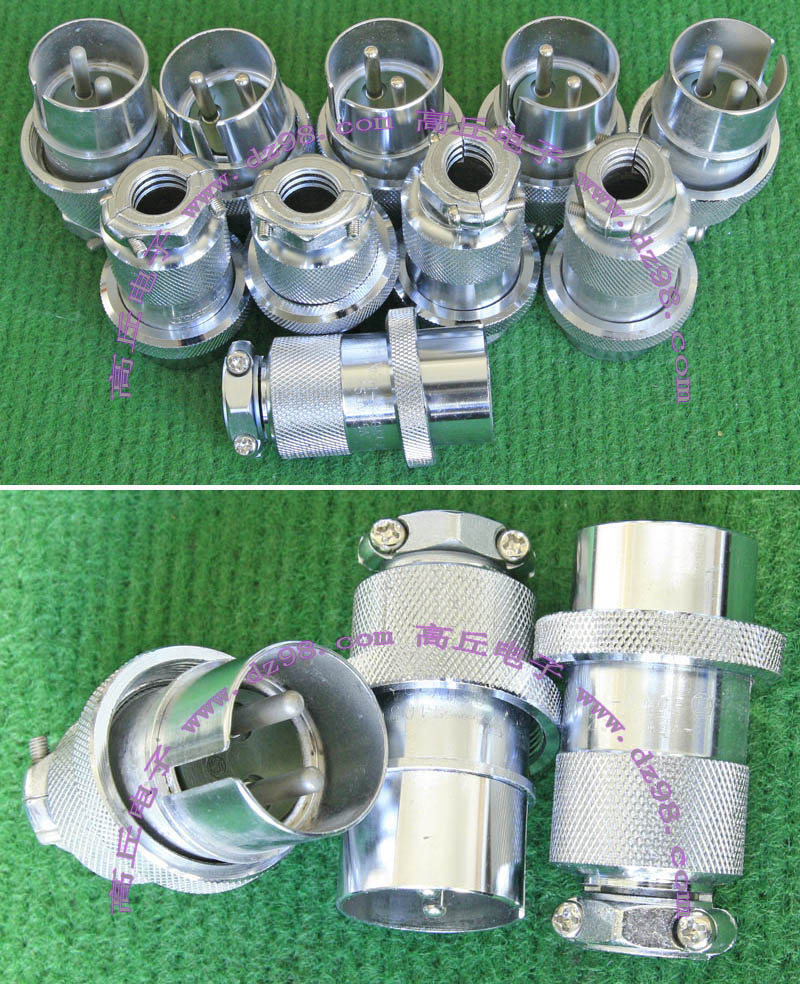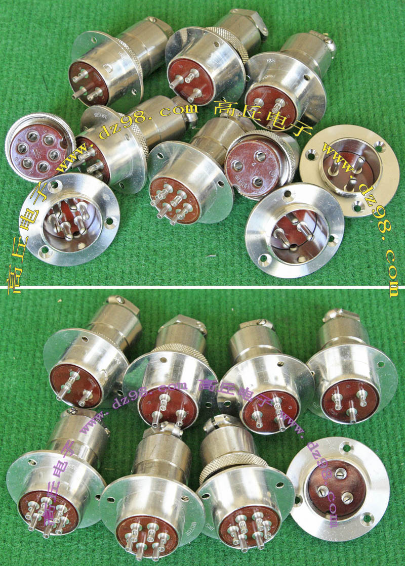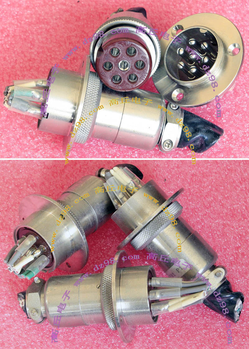 拆机件,军品级插头与插座,每芯电流约40A,铝合金外壳,镀银导电芯,每对重量约400克。 |