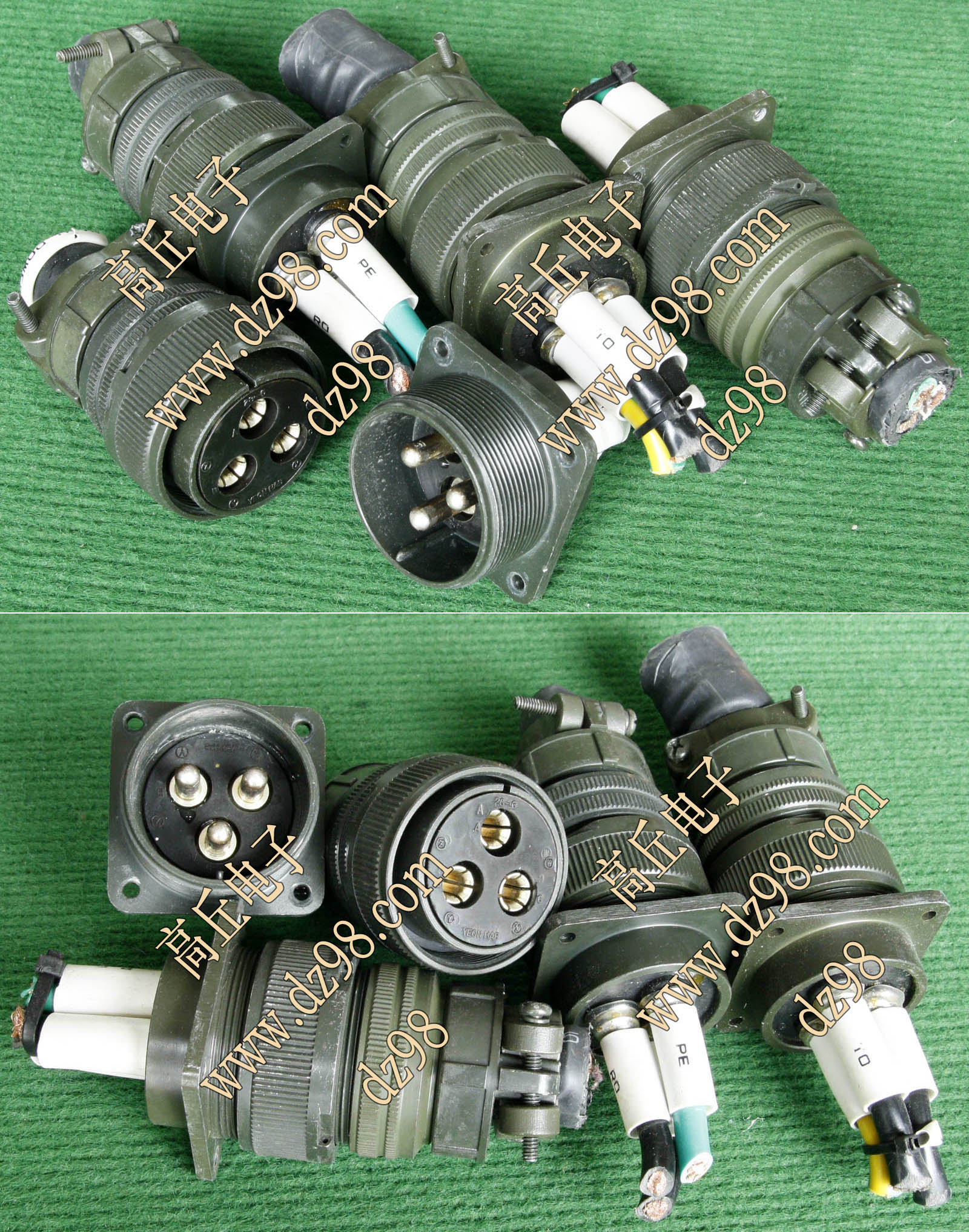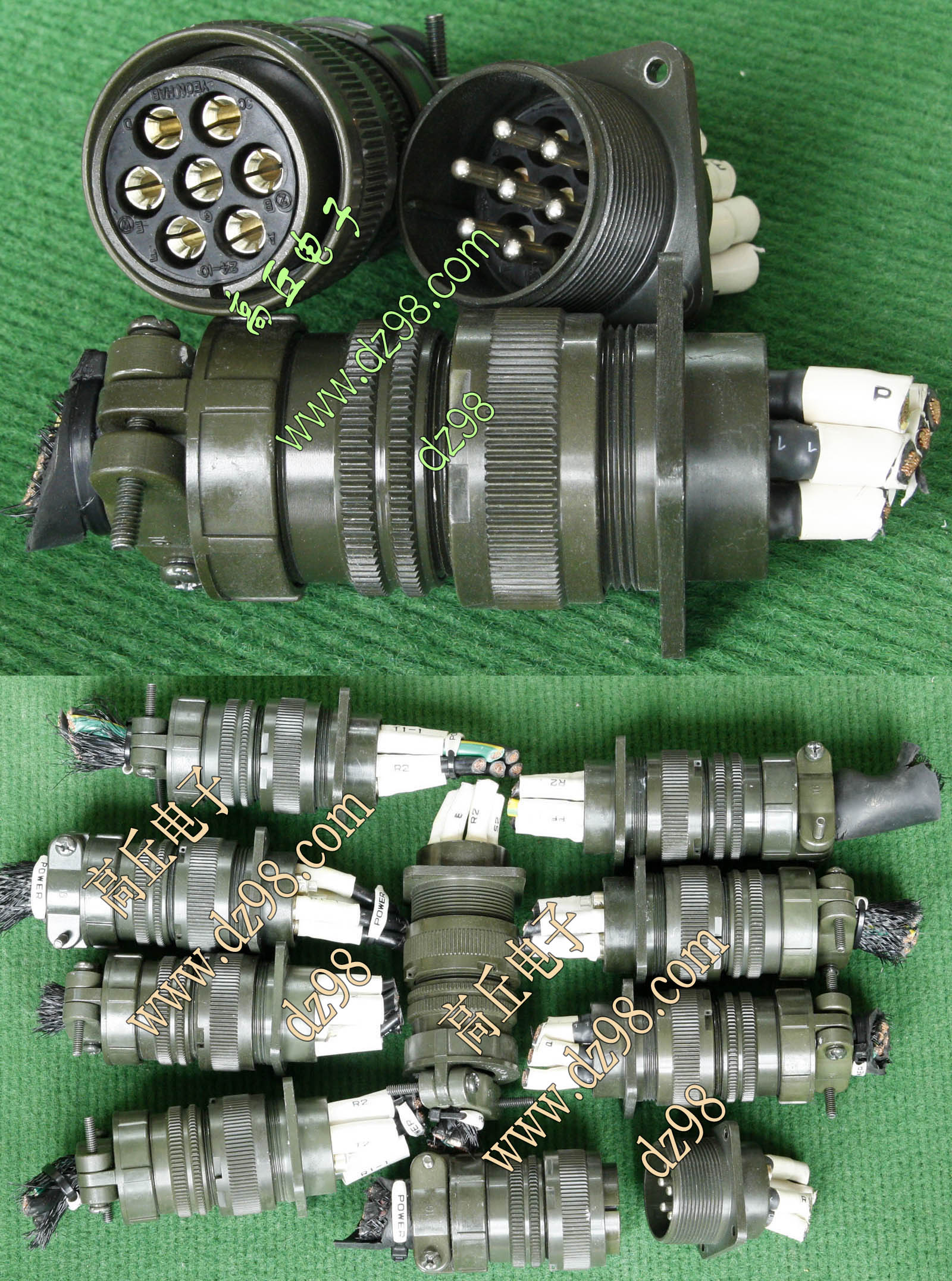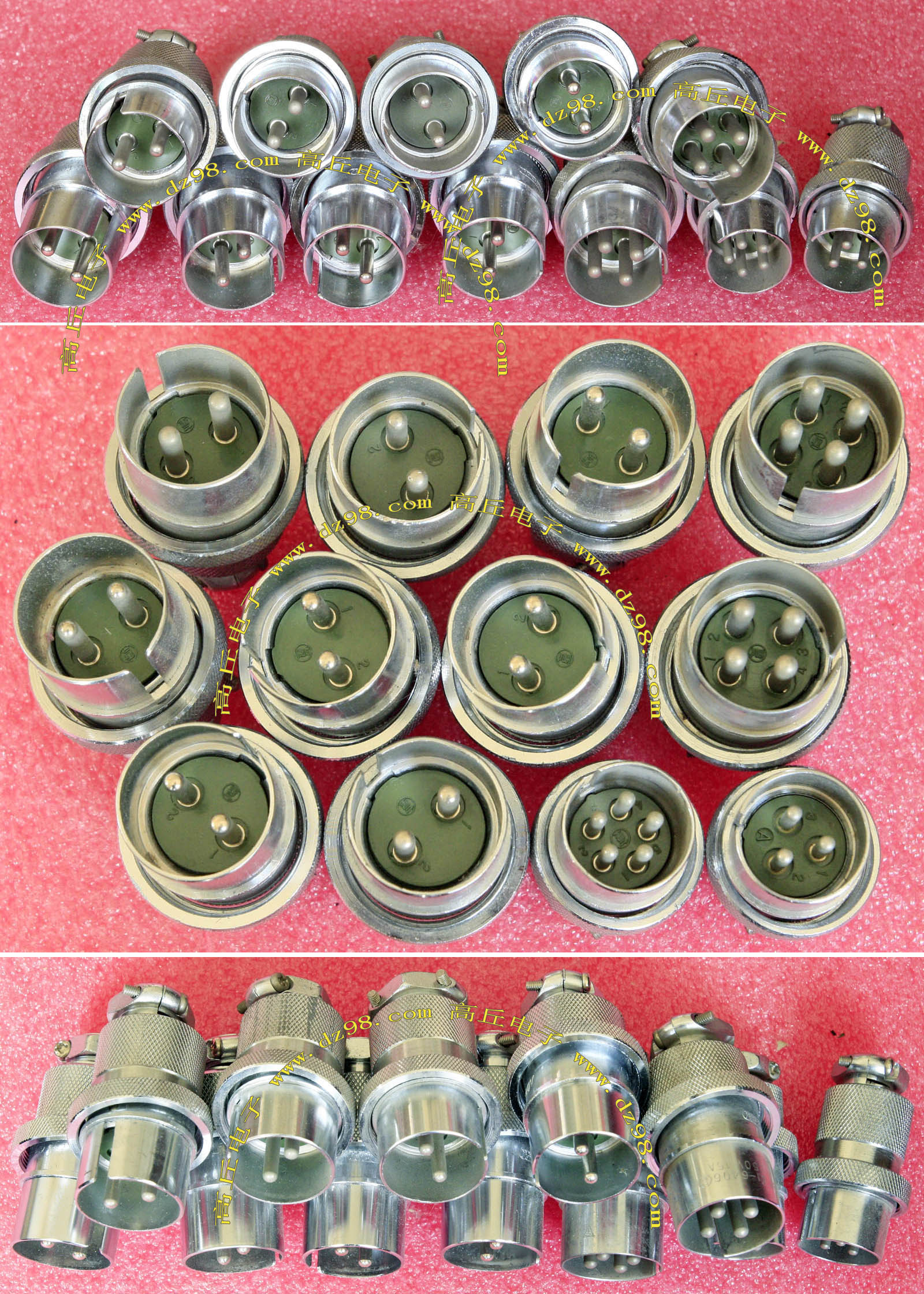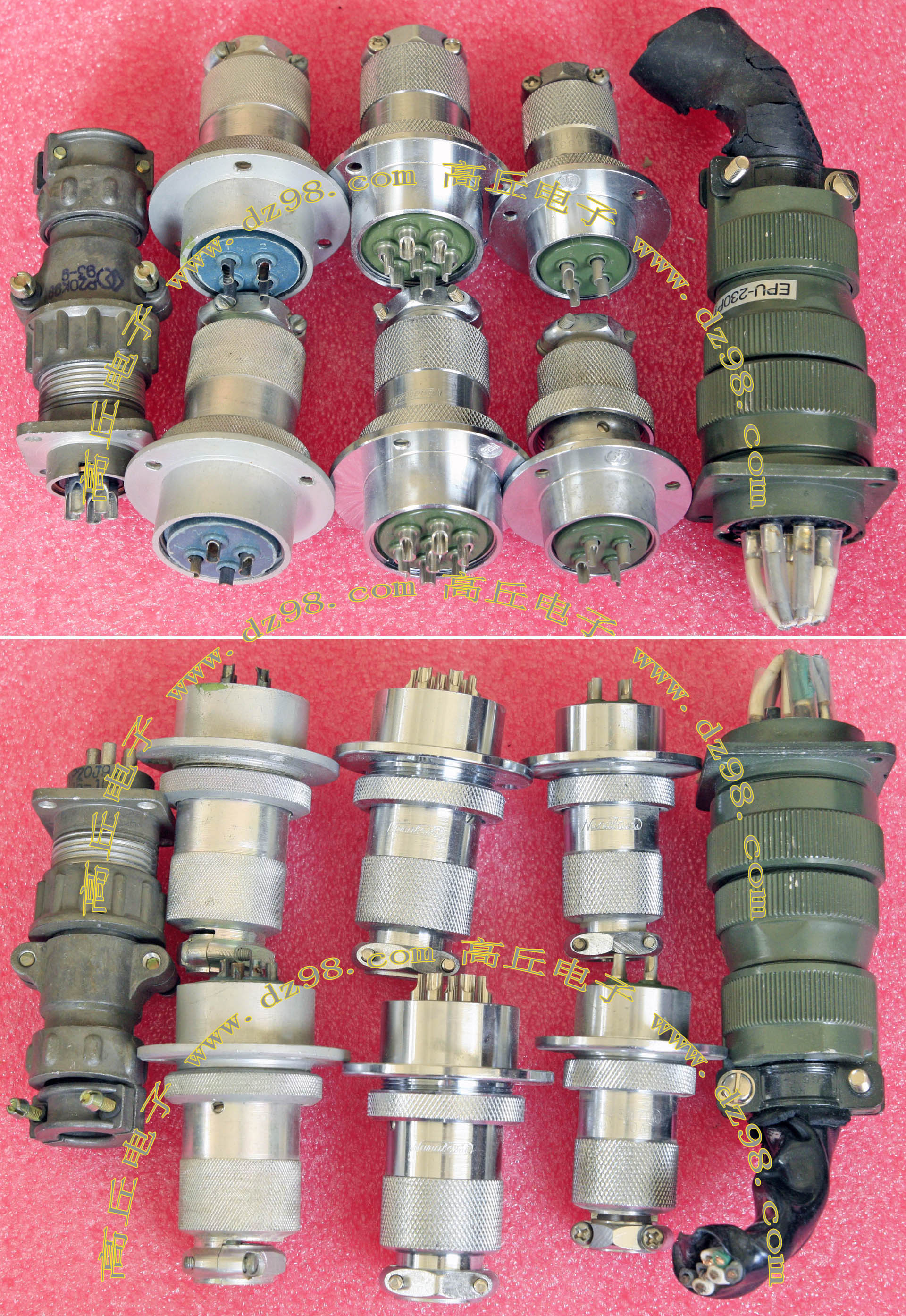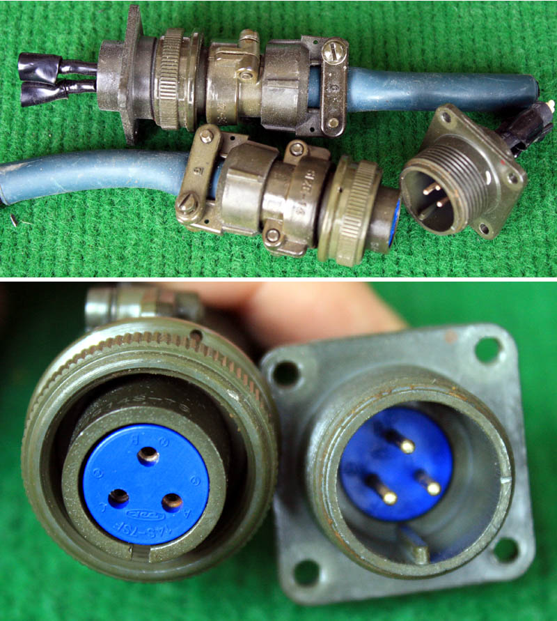 拆机件,军品级插头与插座,每芯电流约40A,铝合金外壳,镀银导电芯,每对重量约400克。 |