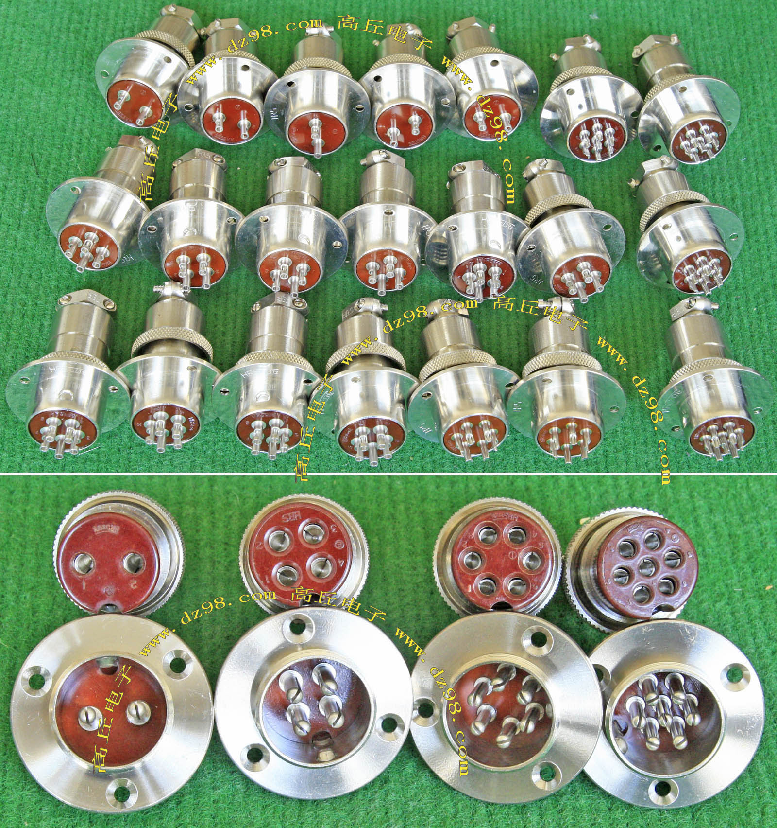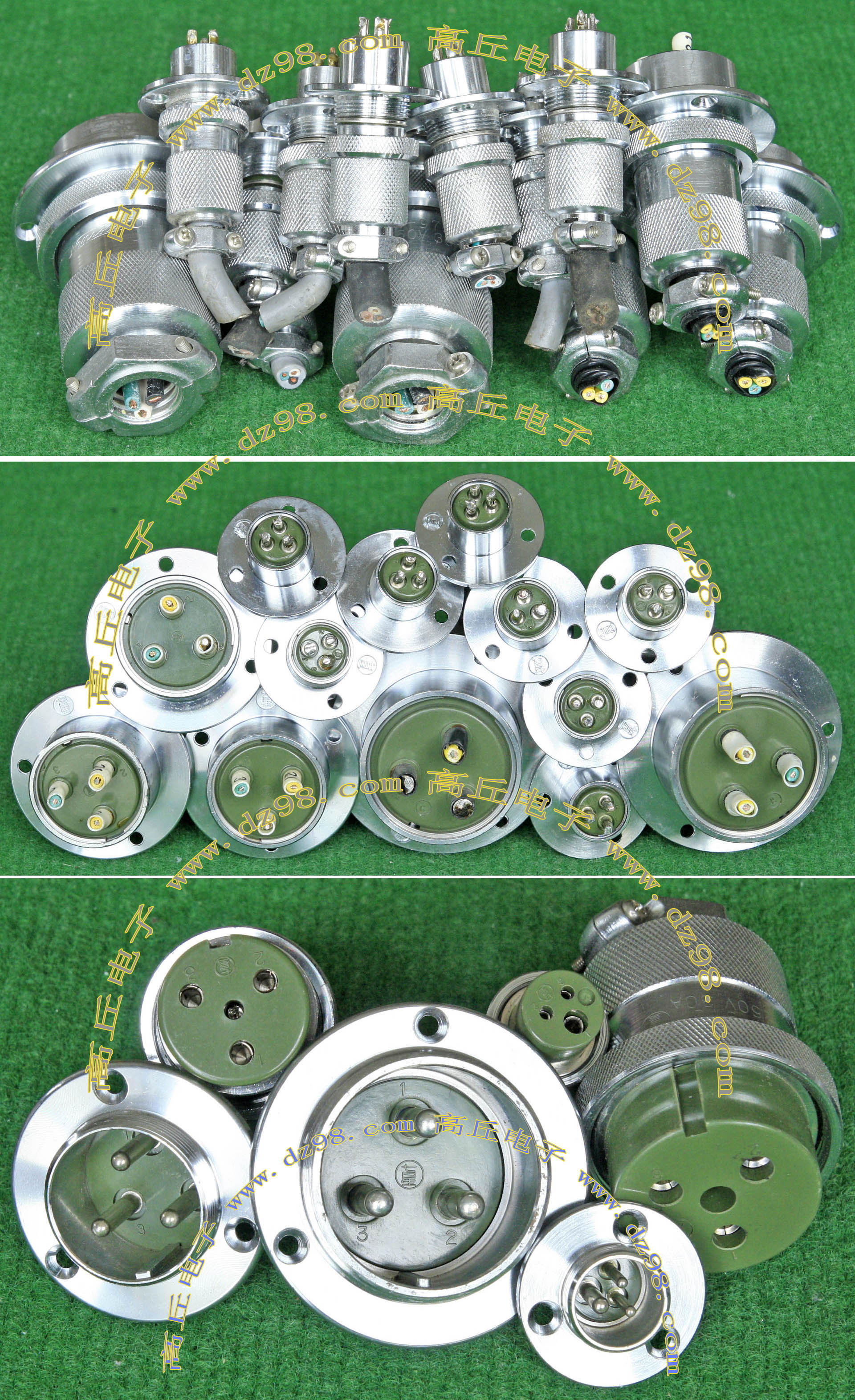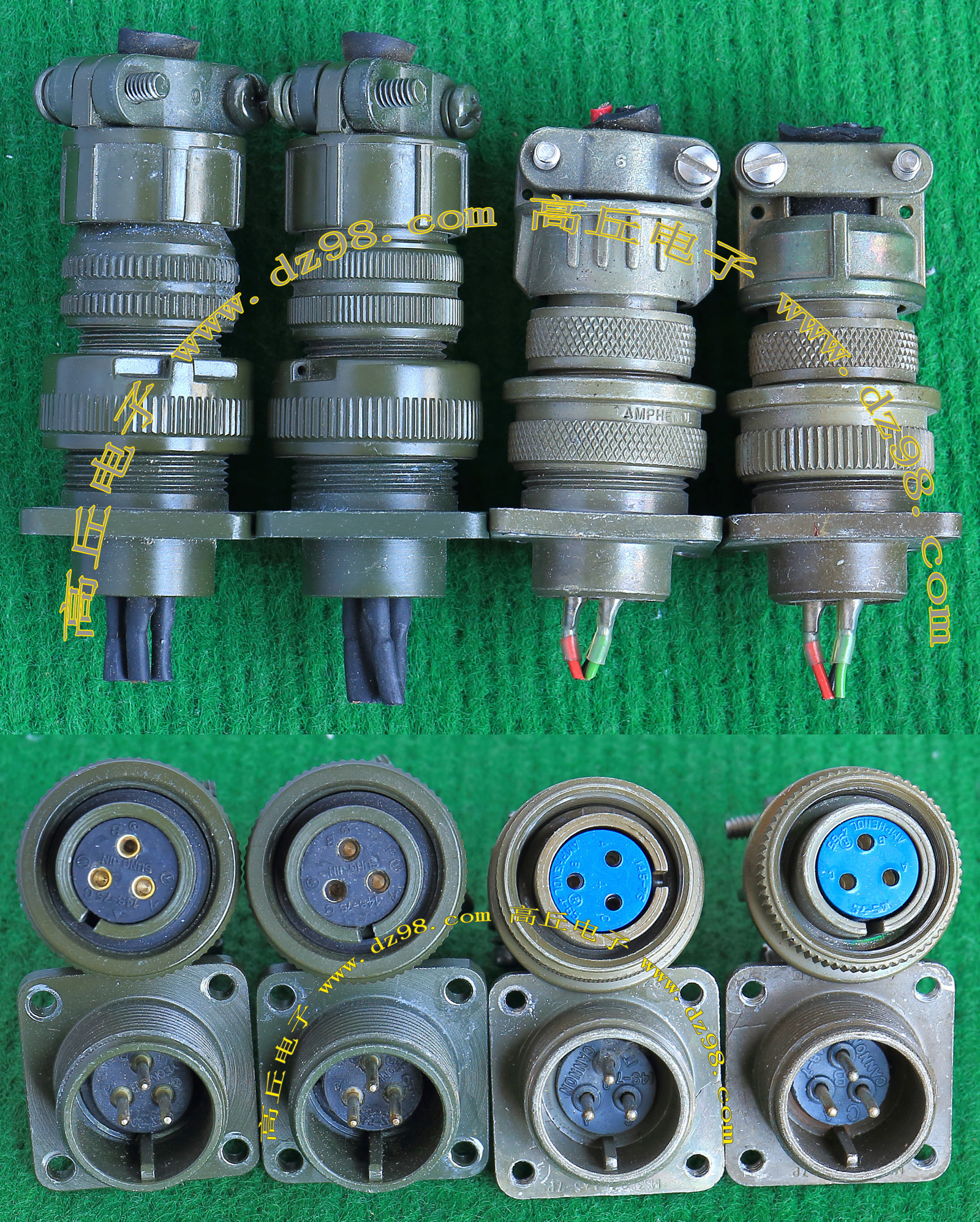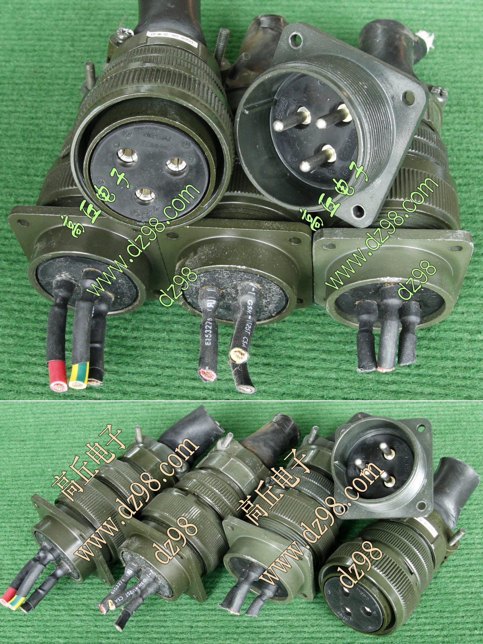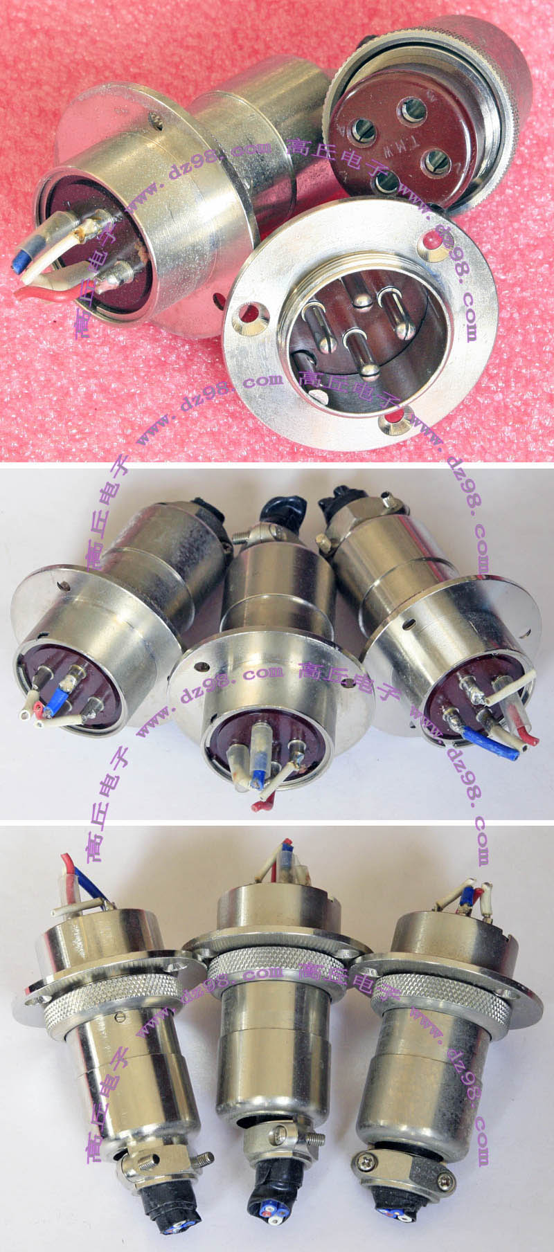 拆机件,军品级插头与插座,每芯电流约40A,铝合金外壳,镀银导电芯,每对重量约400克。 |
