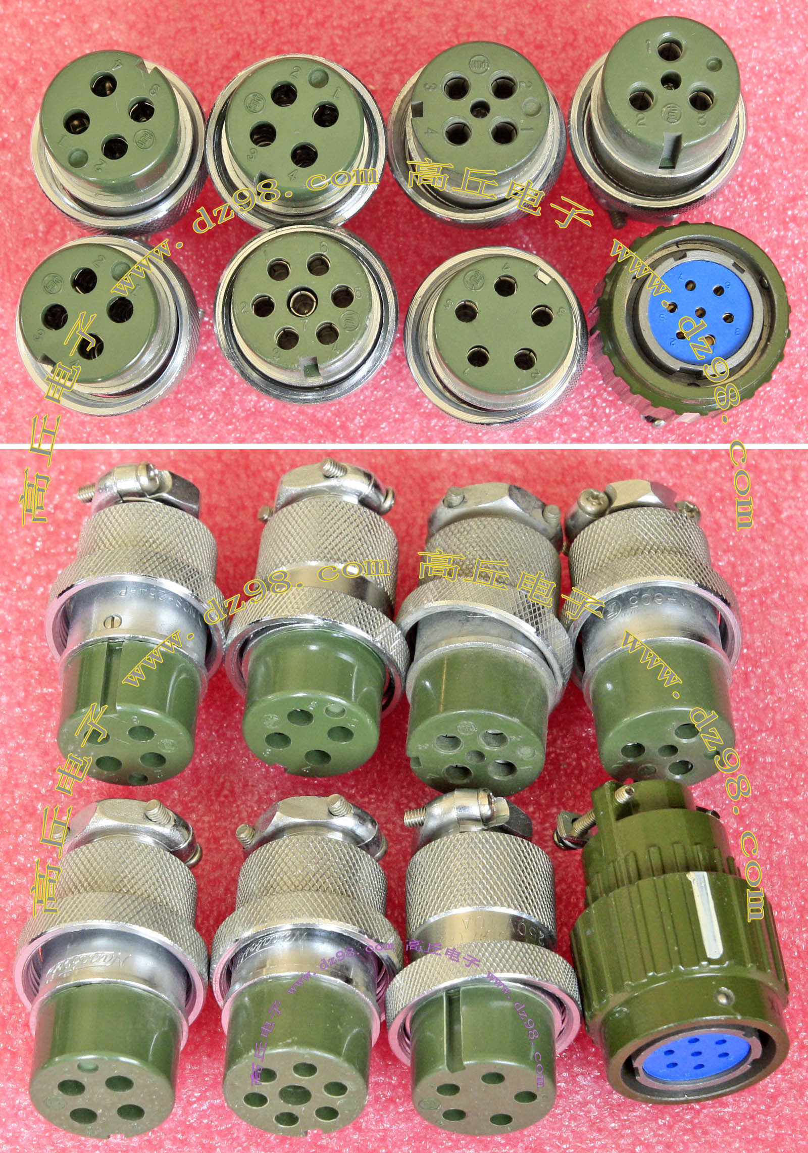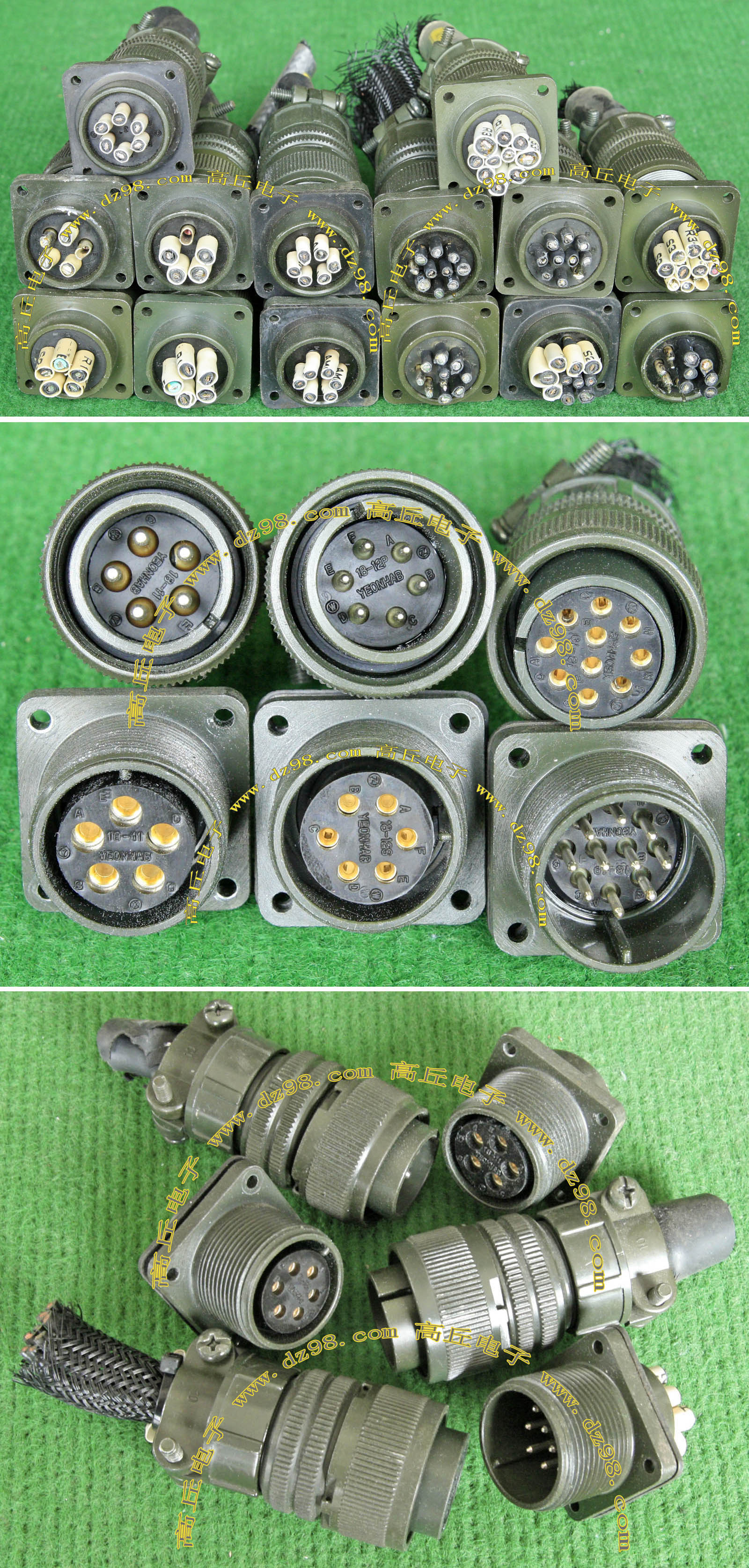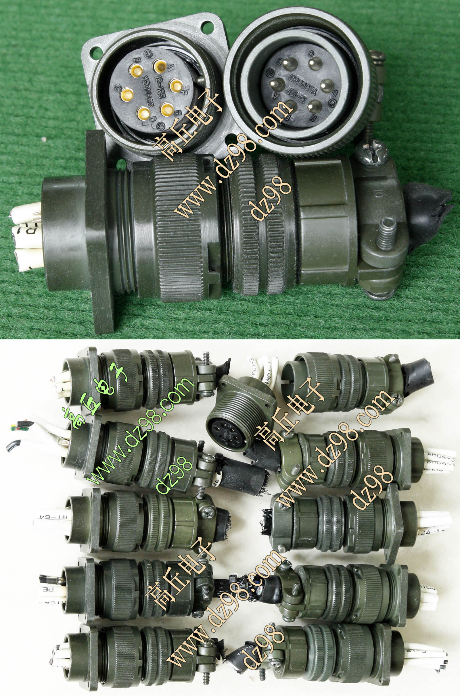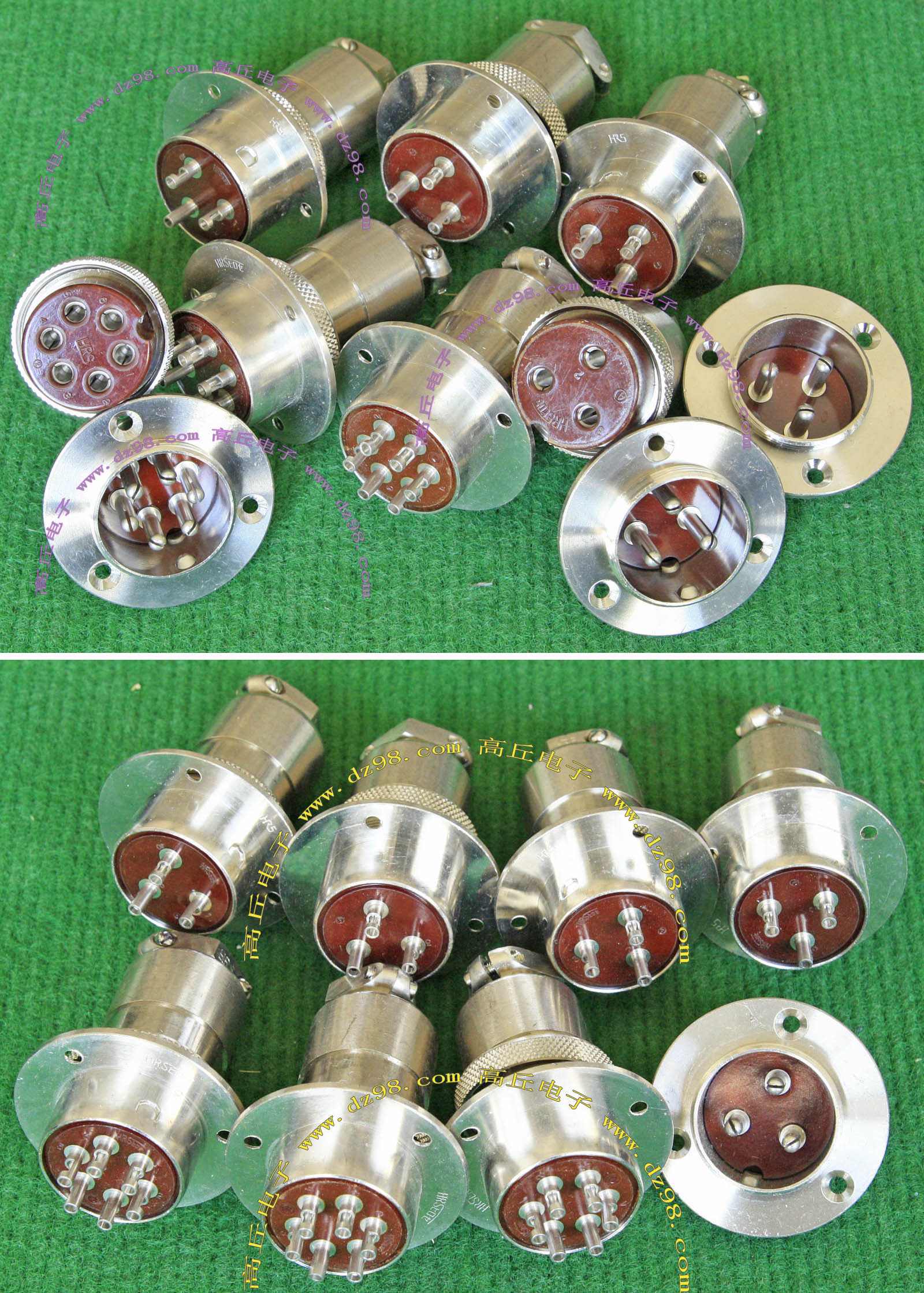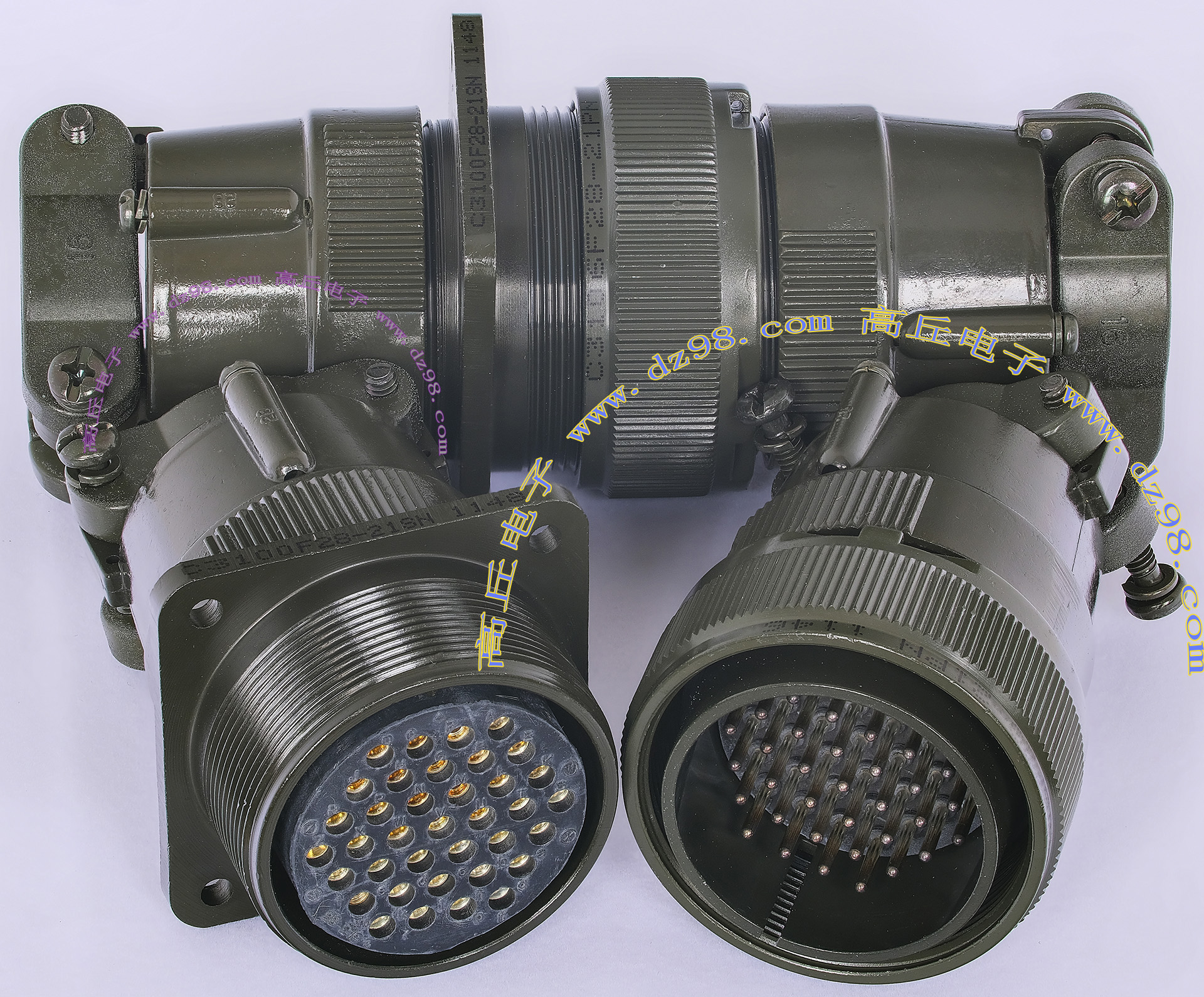 拆机件,军品级插头与插座,每芯电流约40A,铝合金外壳,镀银导电芯,每对重量约400克。 |
