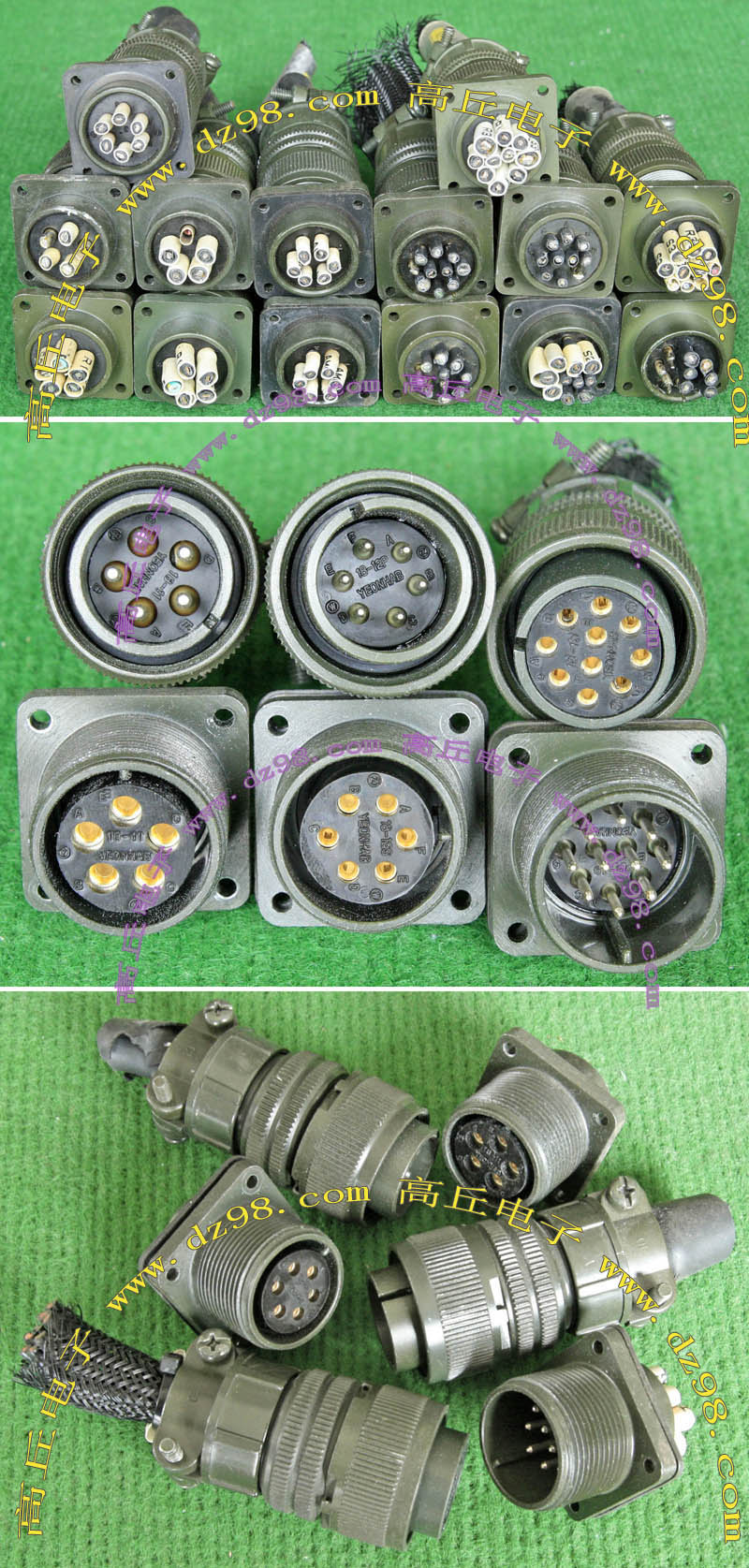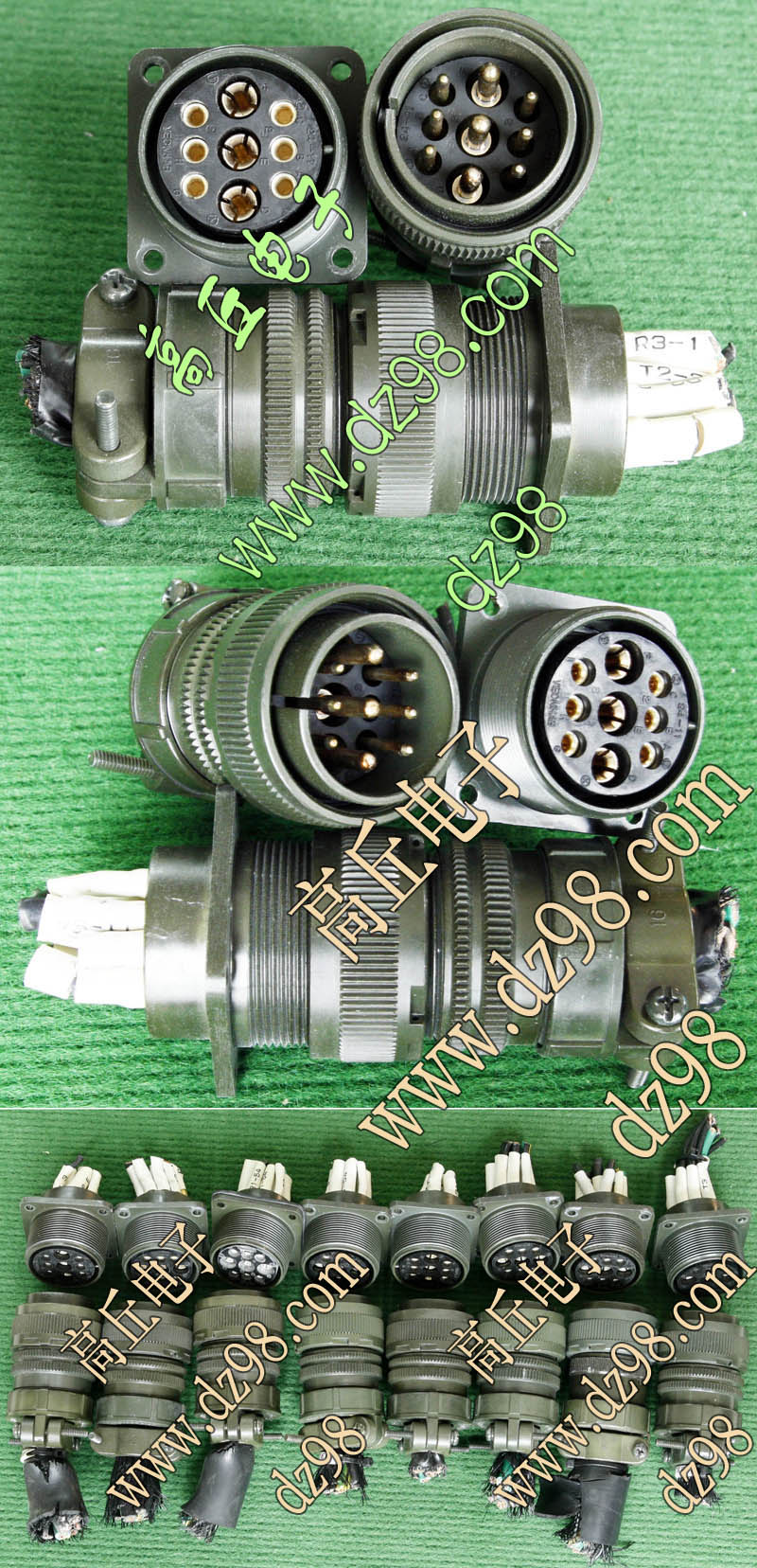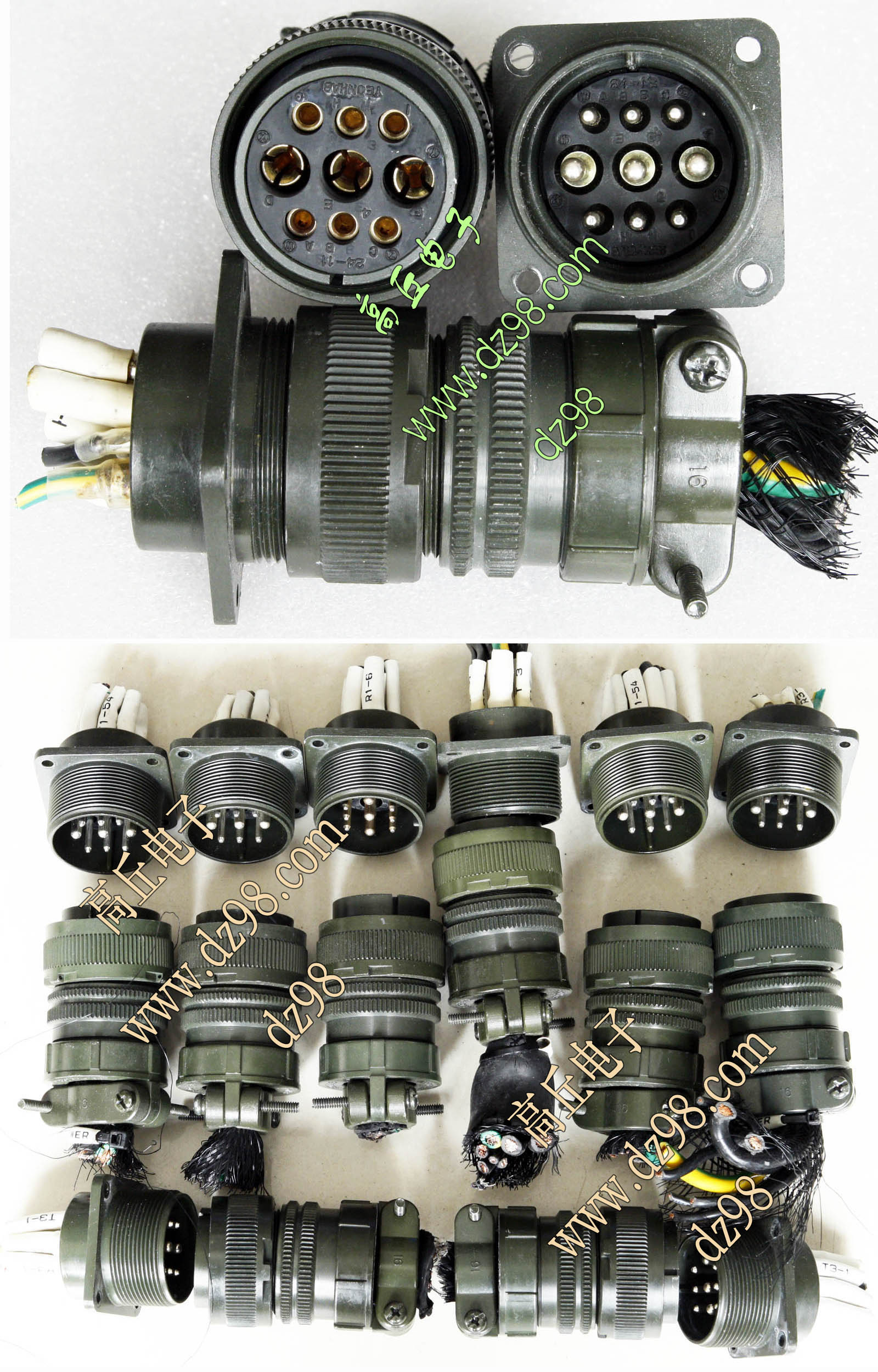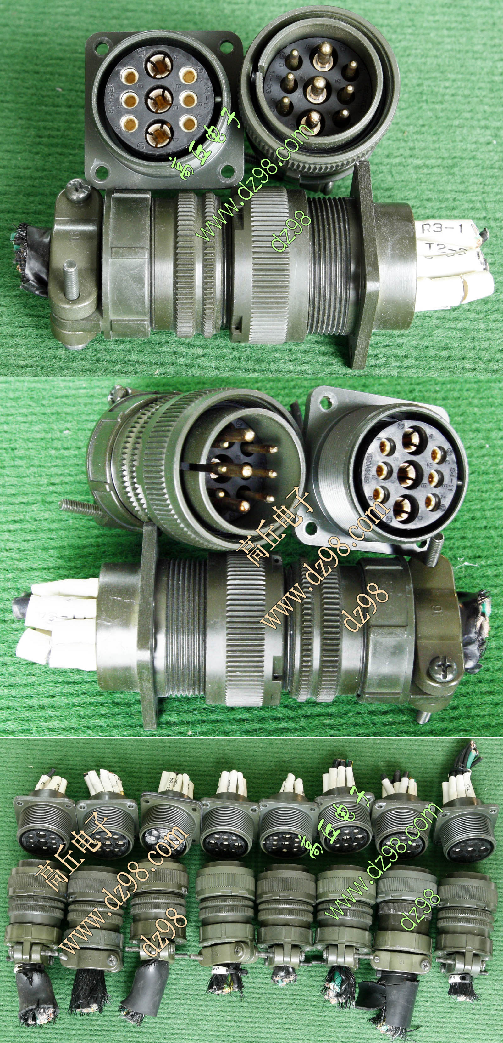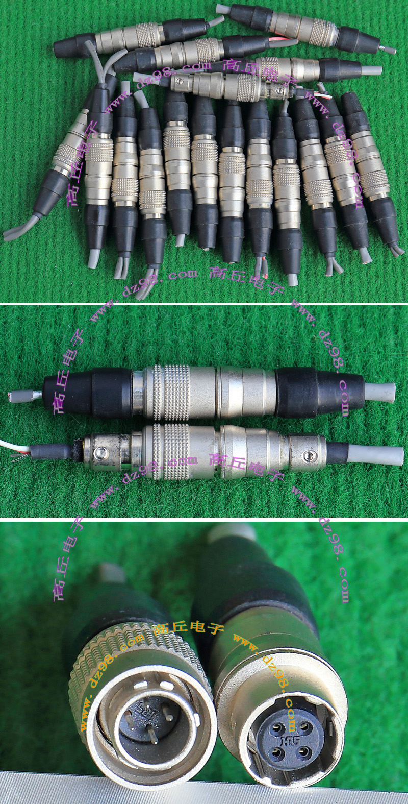 拆机件,军品级插头与插座,每芯电流约40A,铝合金外壳,镀银导电芯,每对重量约400克。 |