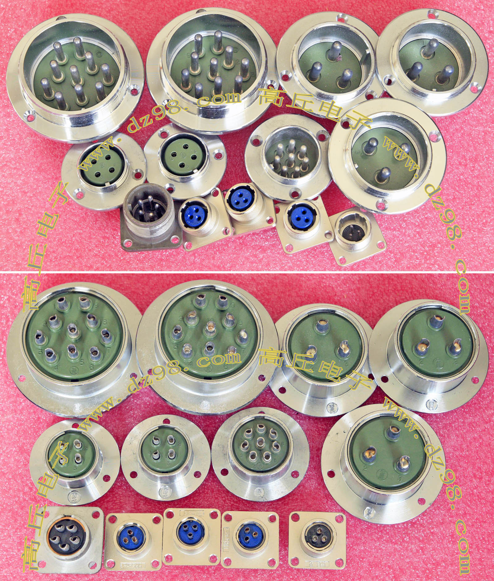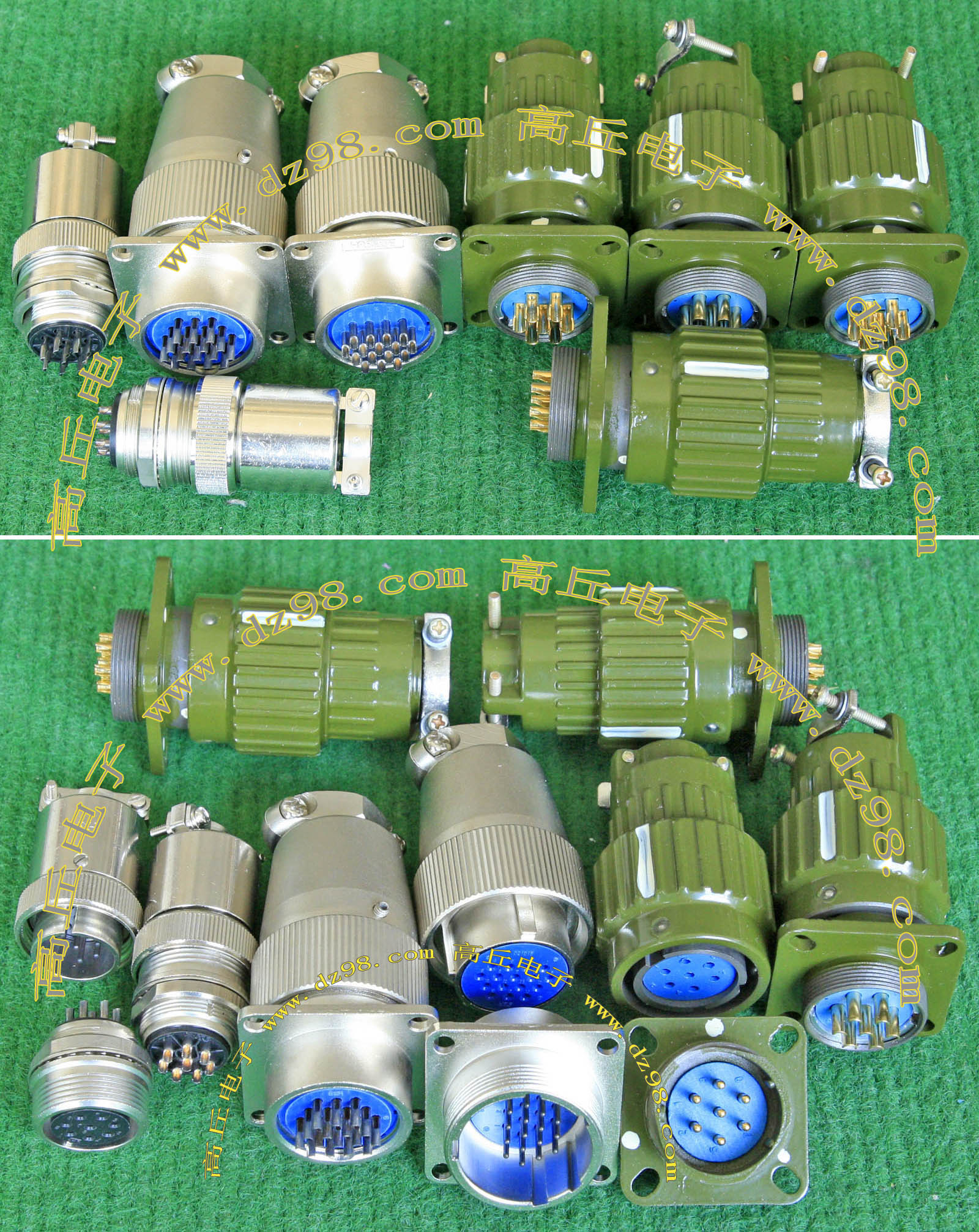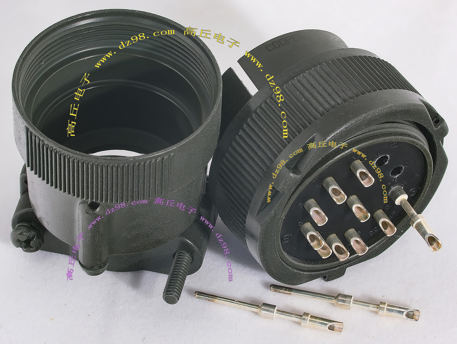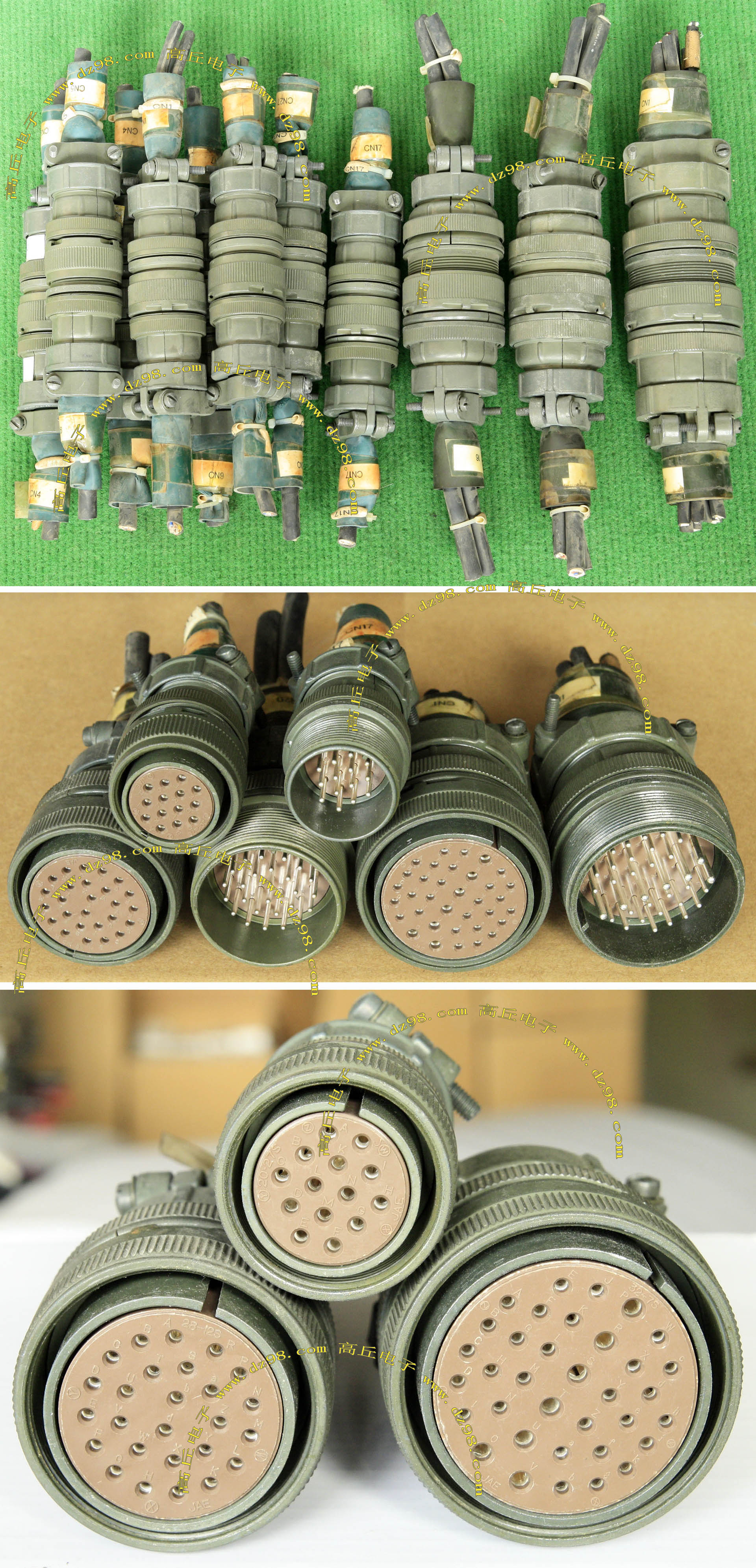 拆机件,军品级插头与插座,每芯电流约40A,铝合金外壳,镀银导电芯,每对重量约400克。 |
