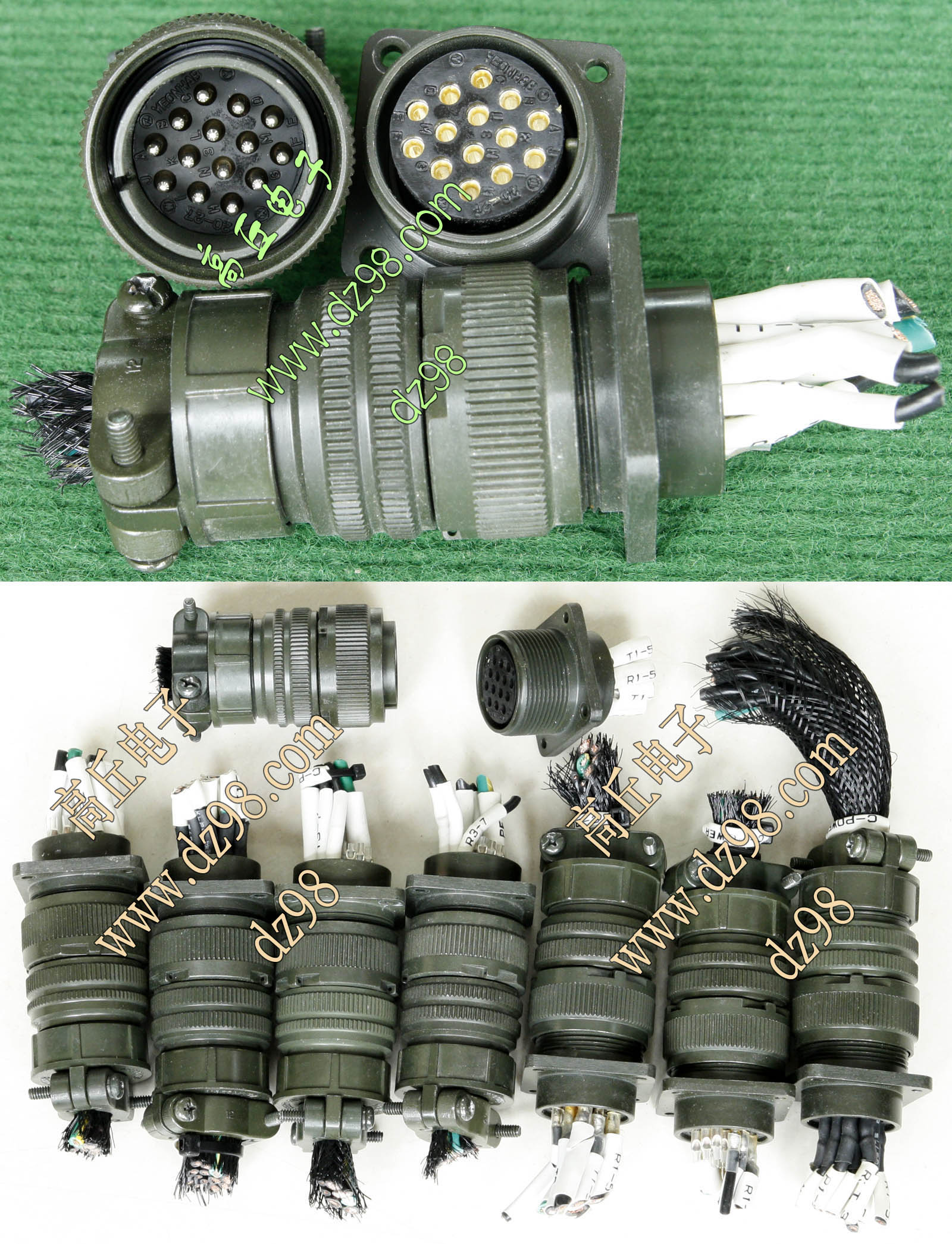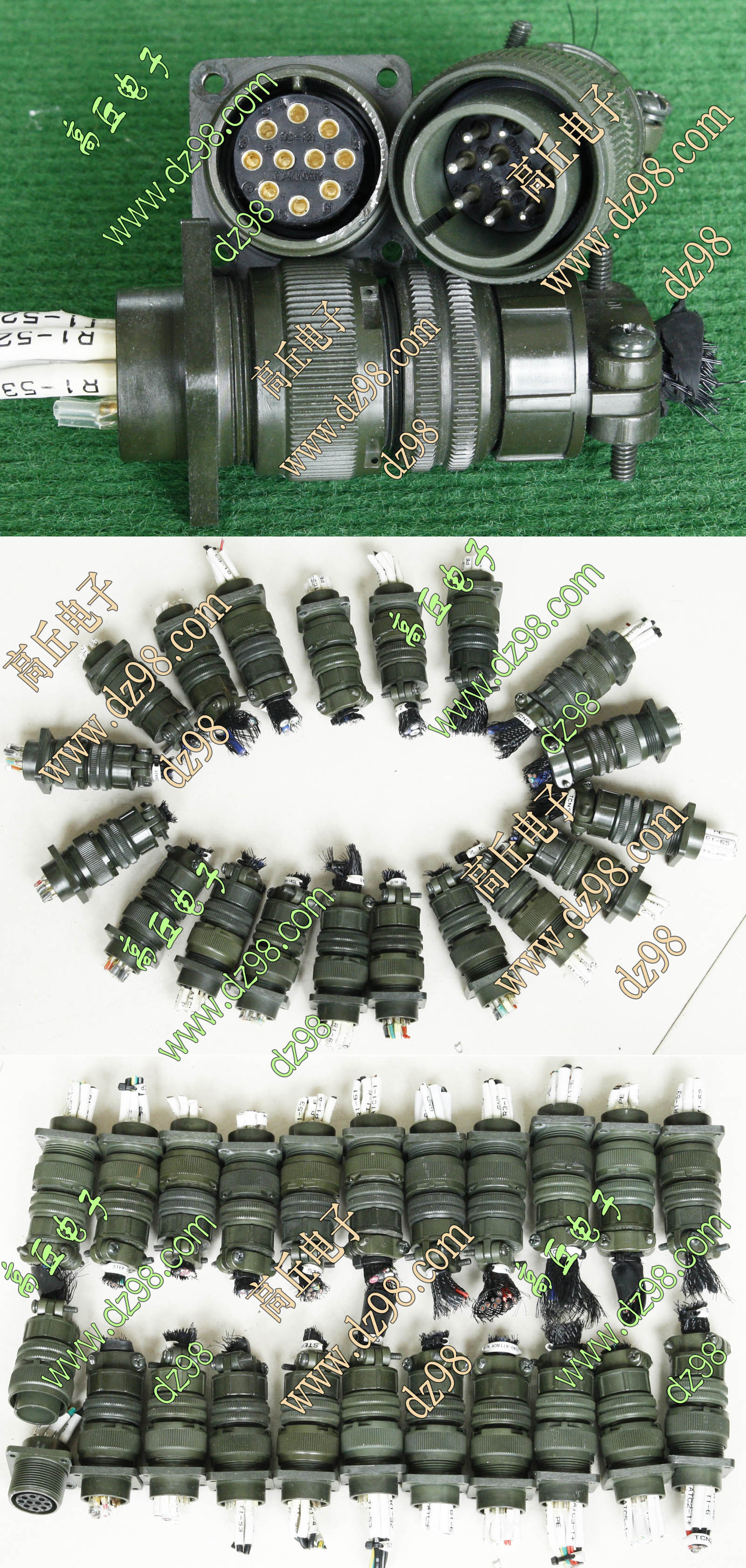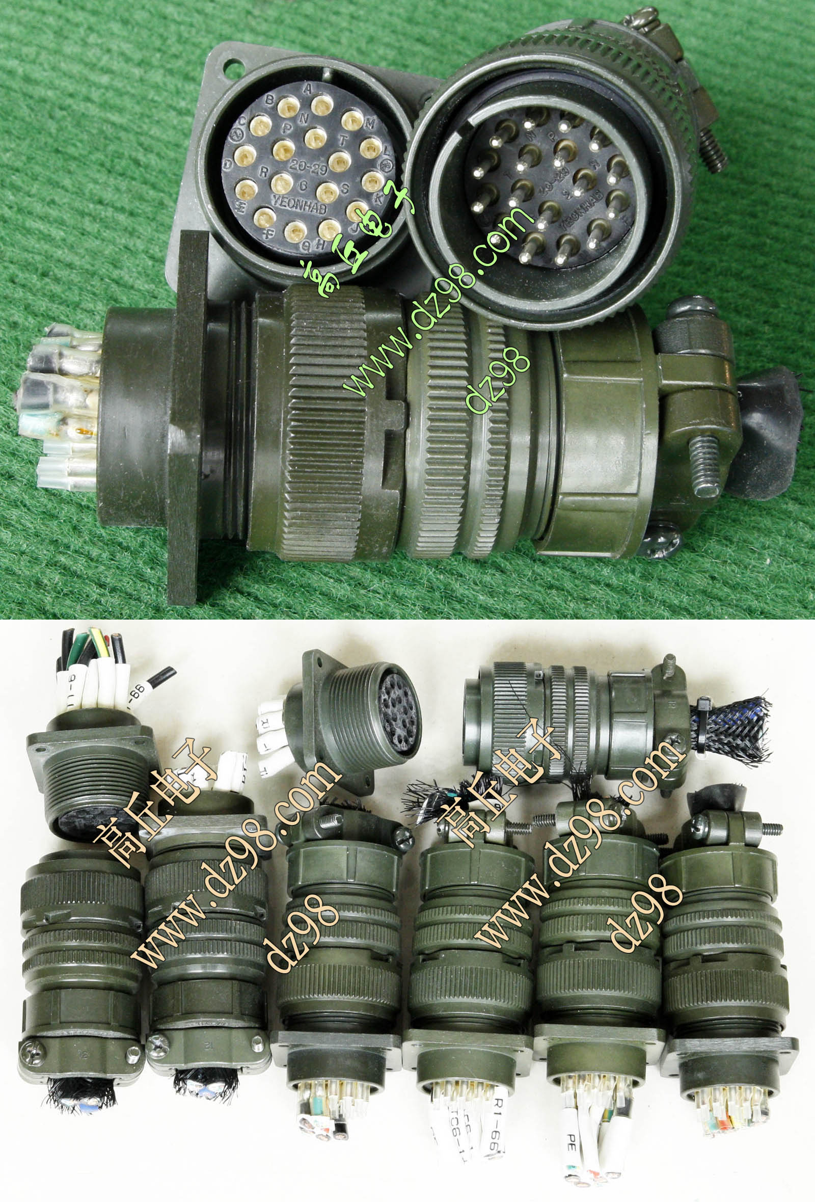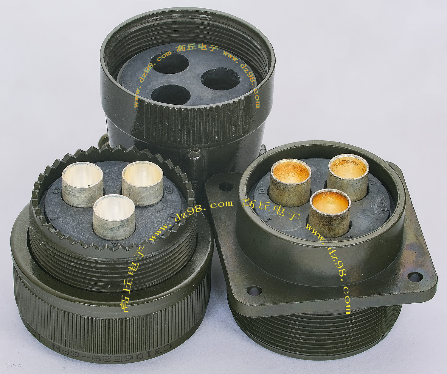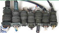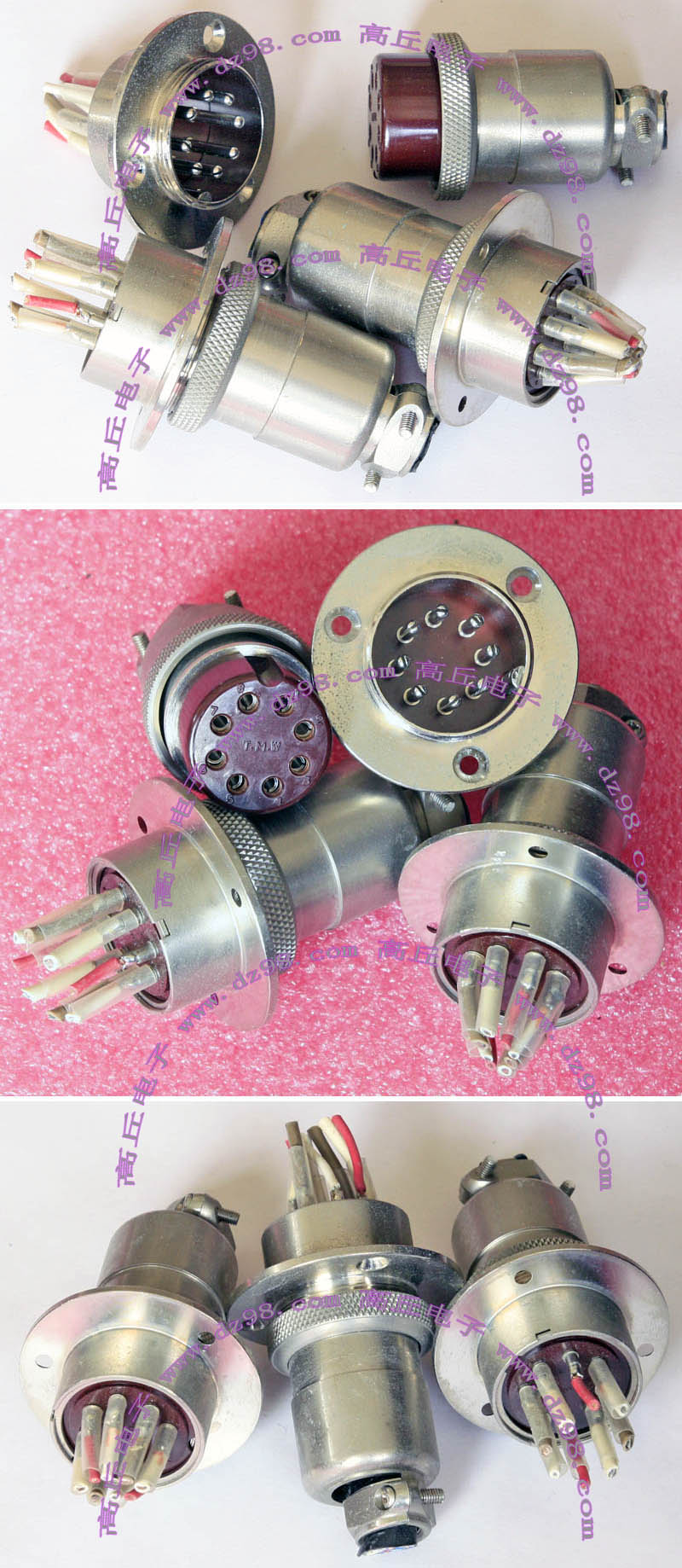 拆机件,军品级插头与插座,每芯电流约40A,铝合金外壳,镀银导电芯,每对重量约400克。 |