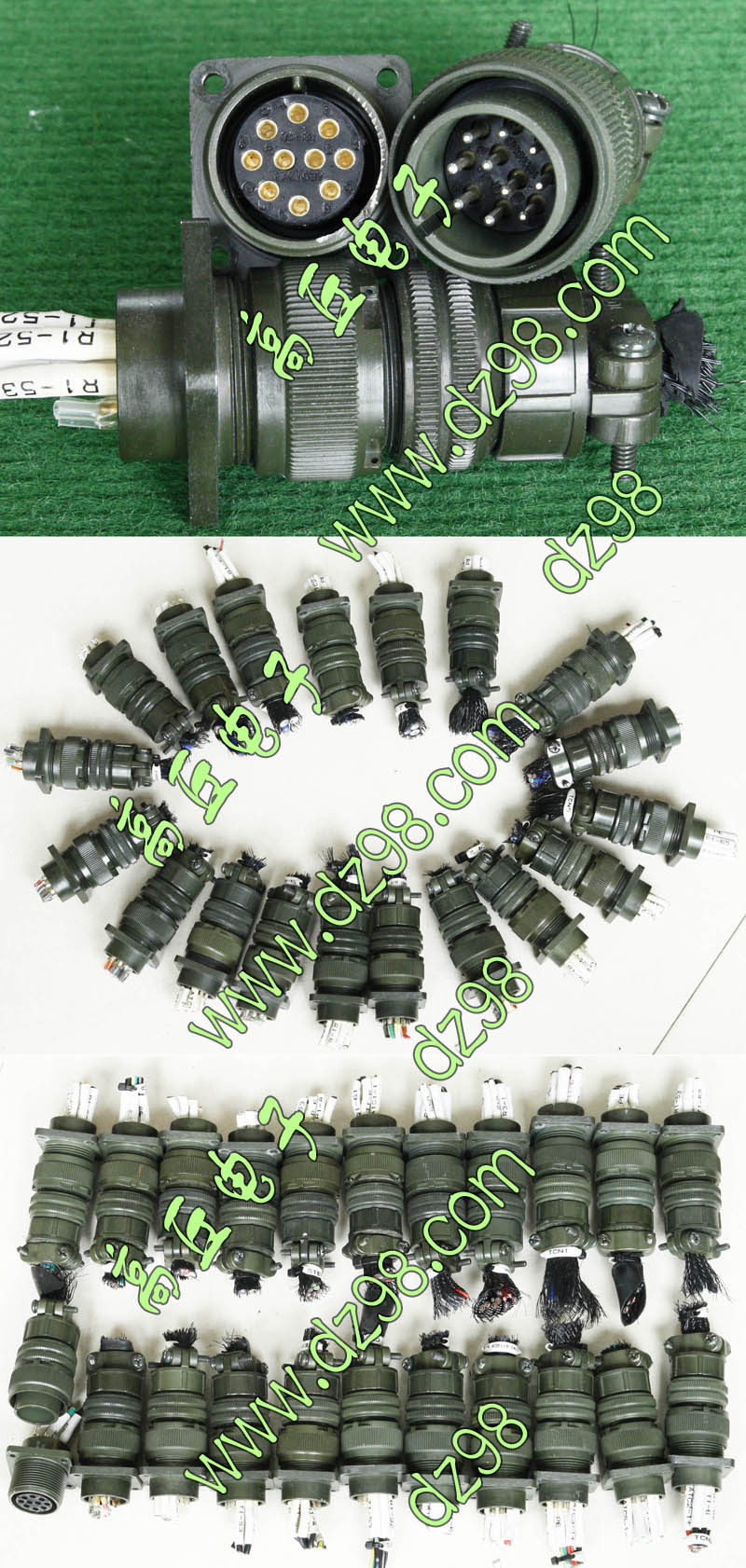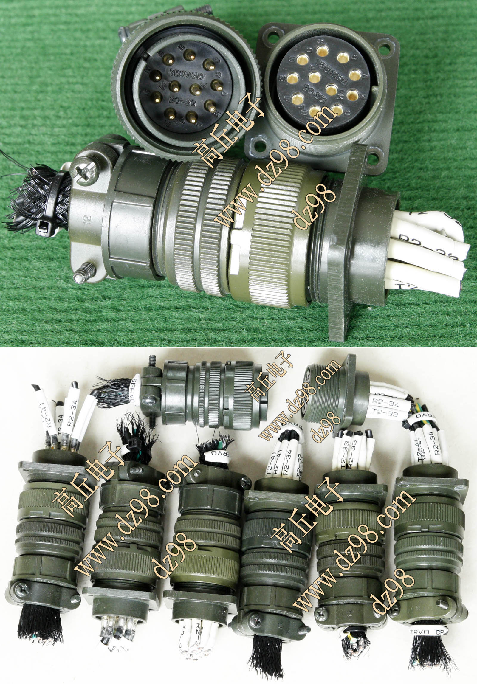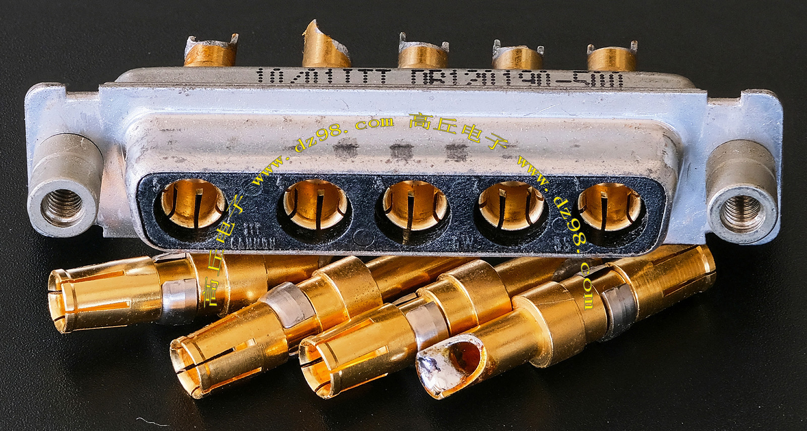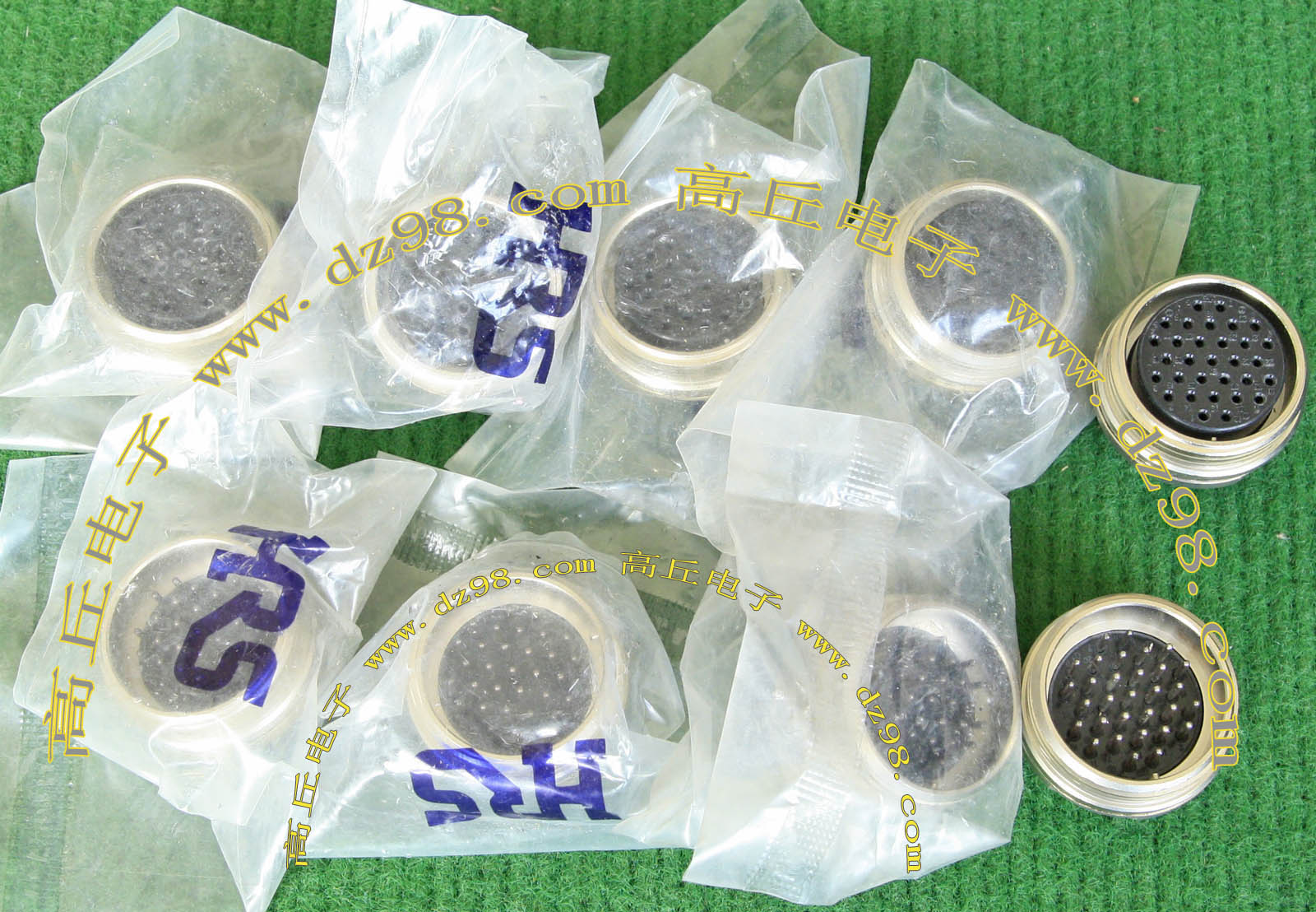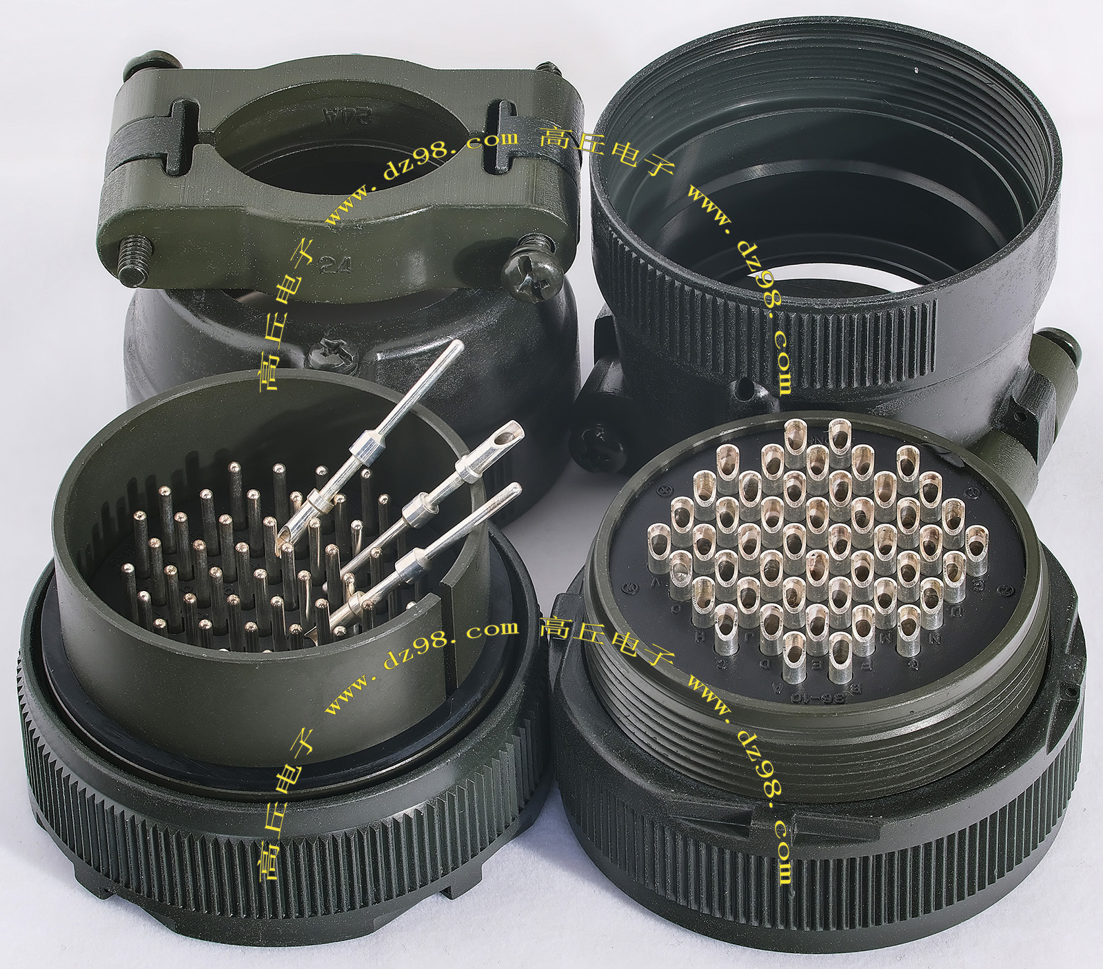拆机件,军品级插头与插座,每芯电流约40A,铝合金外壳,镀银导电芯,每对重量约400克。 |