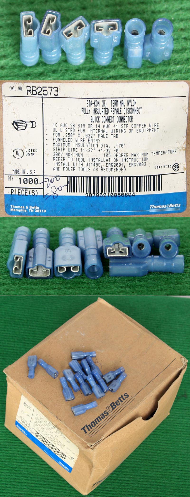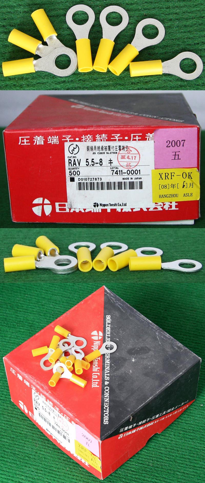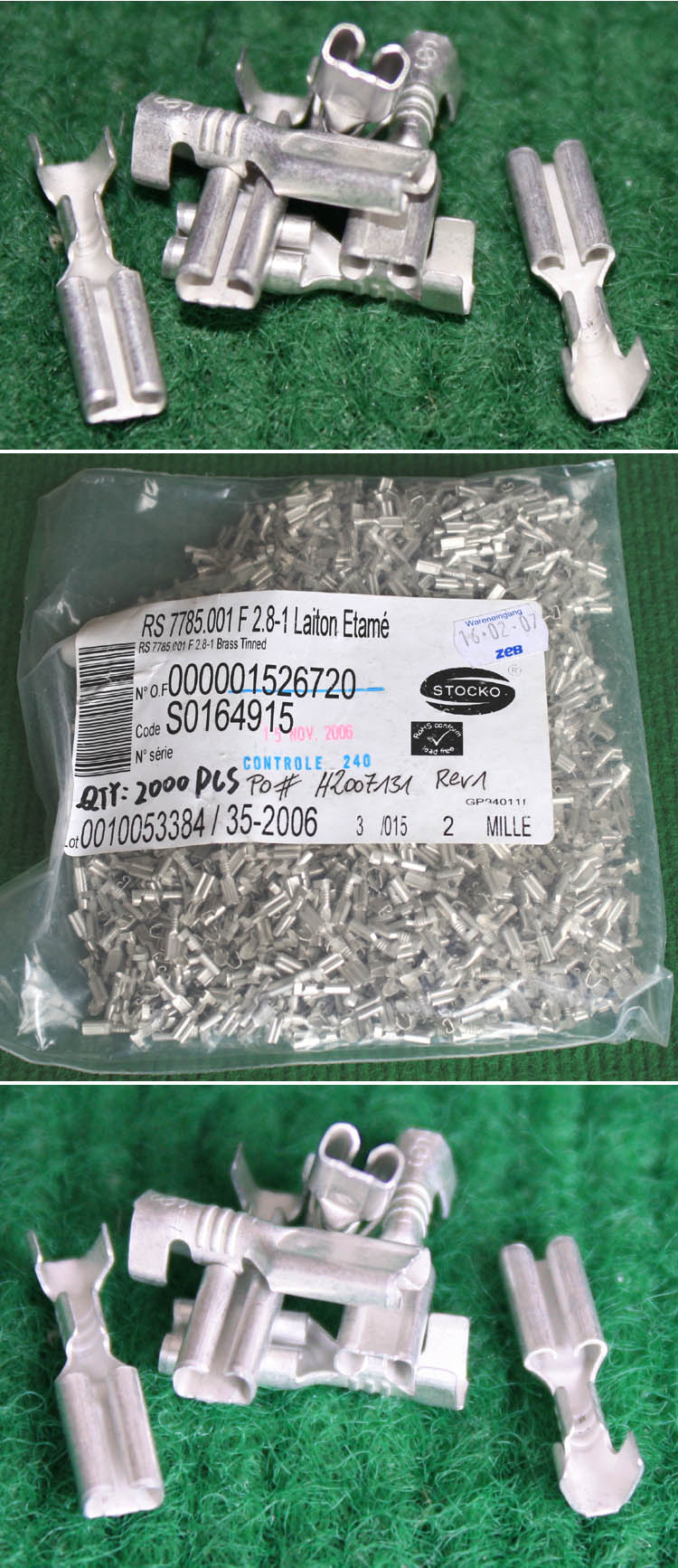 全新品,STOCKO原装,实物请看图片,能插在2.5-3mm之间的扁插针上,每包数量2000只。 |