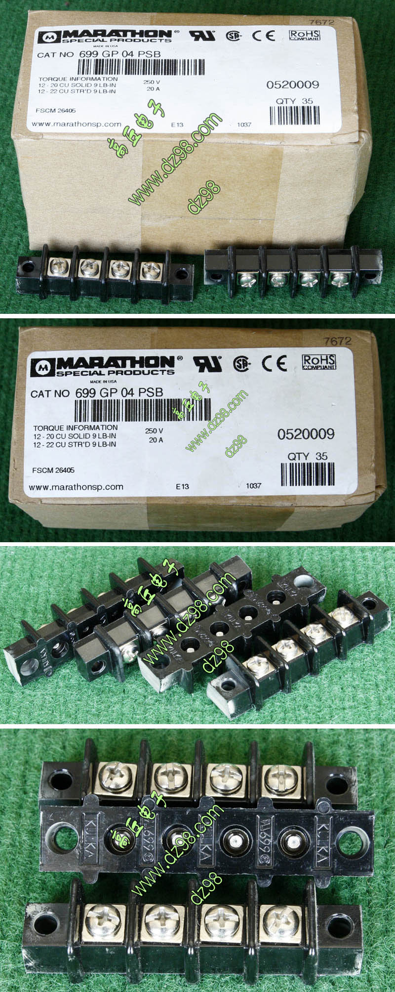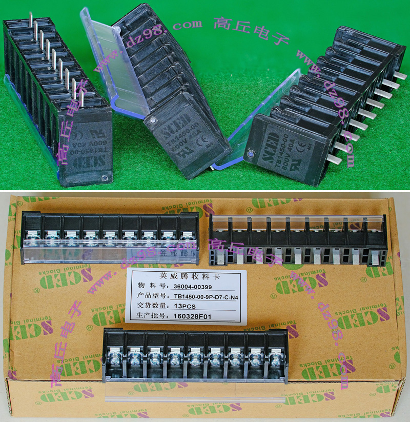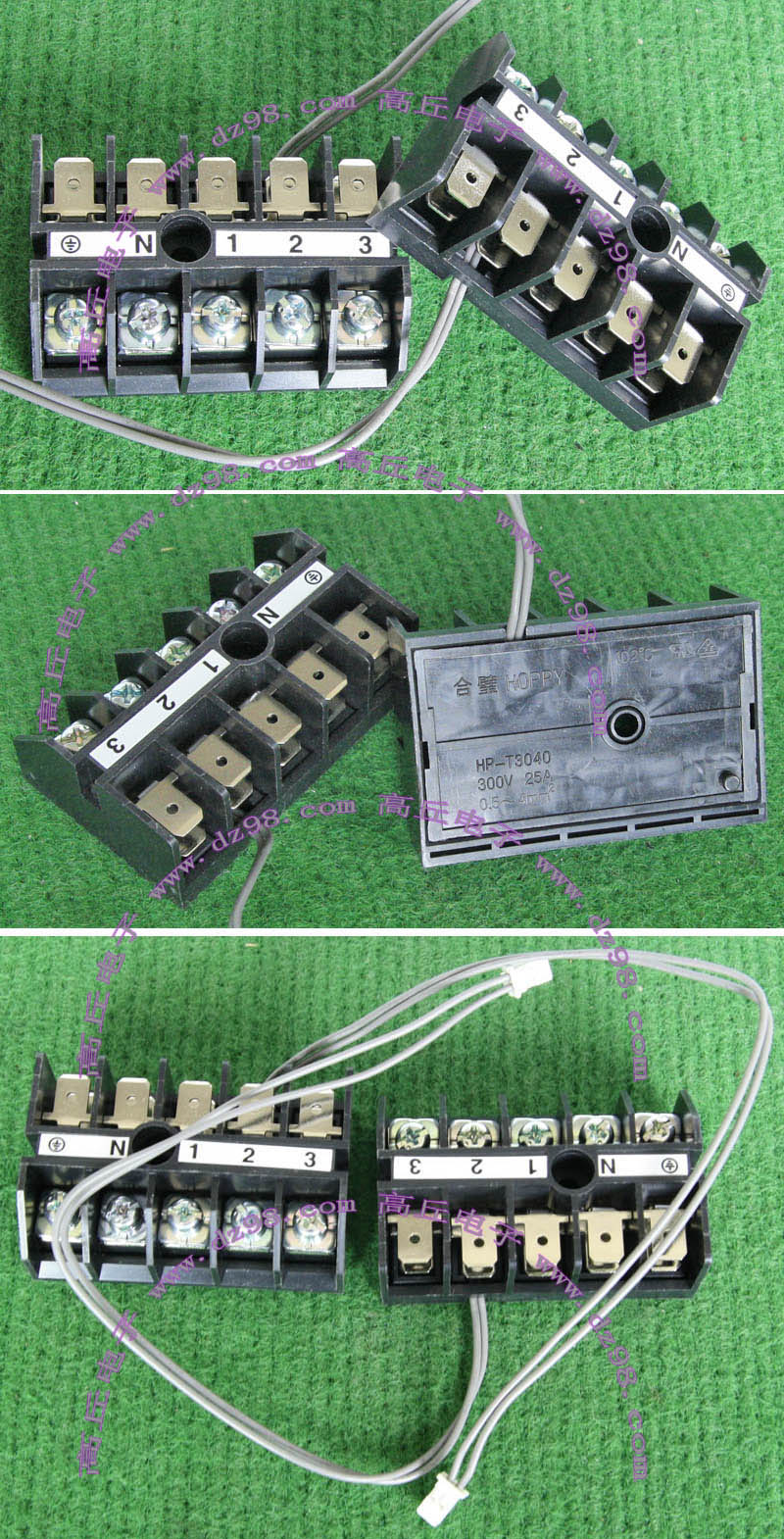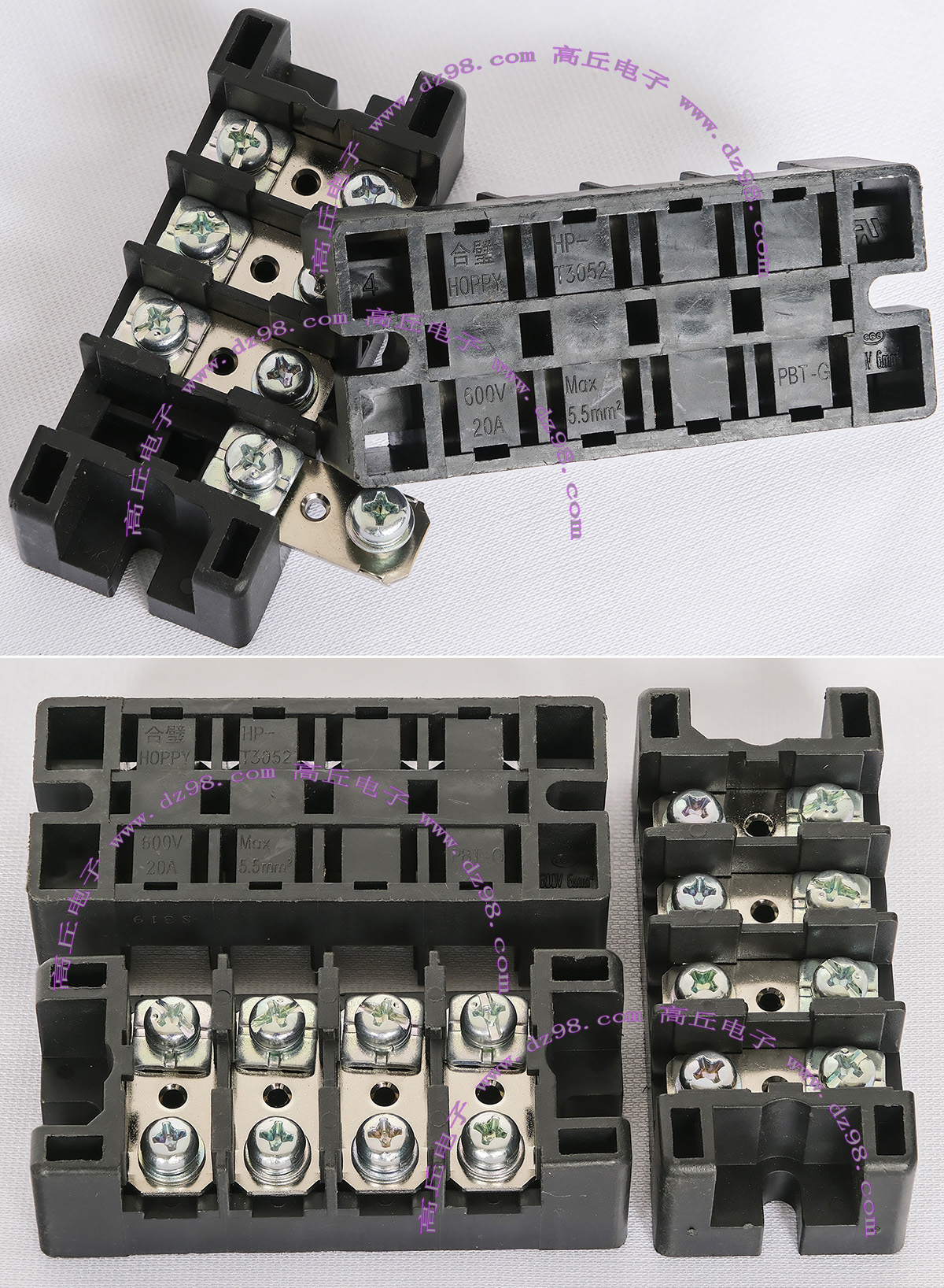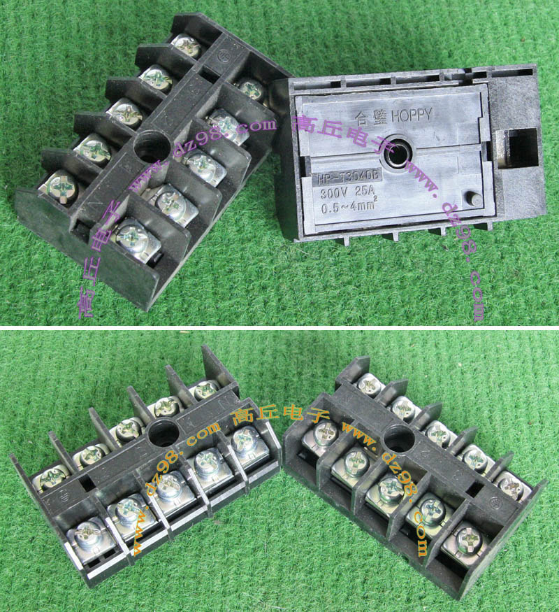 | HOPPY合璧HP-T3052-4P 600V 20A4档 接线端子BQD564 | 全新,实物参照图片,标称电压电流600V,20A,用料足,最大可以通过50A电流,外形尺寸;70x30x20毫米,重量约47克。 |