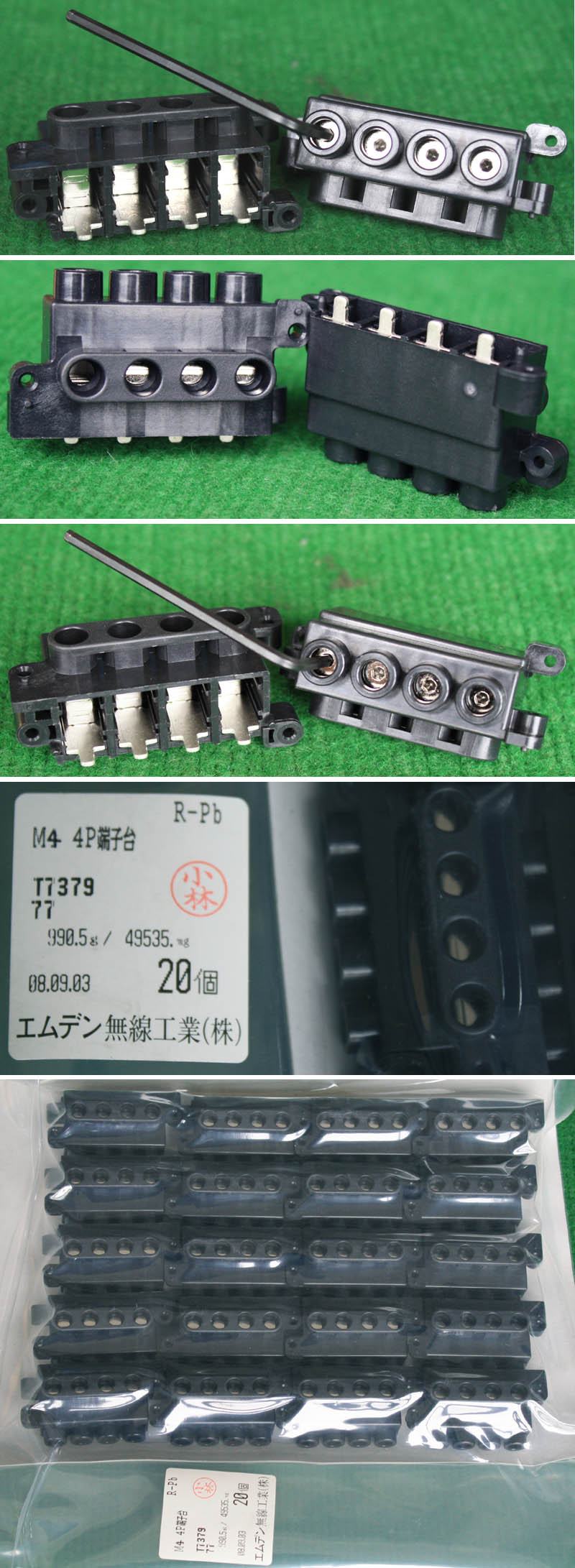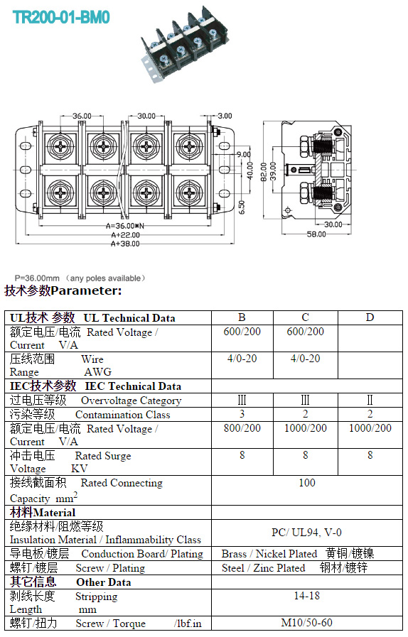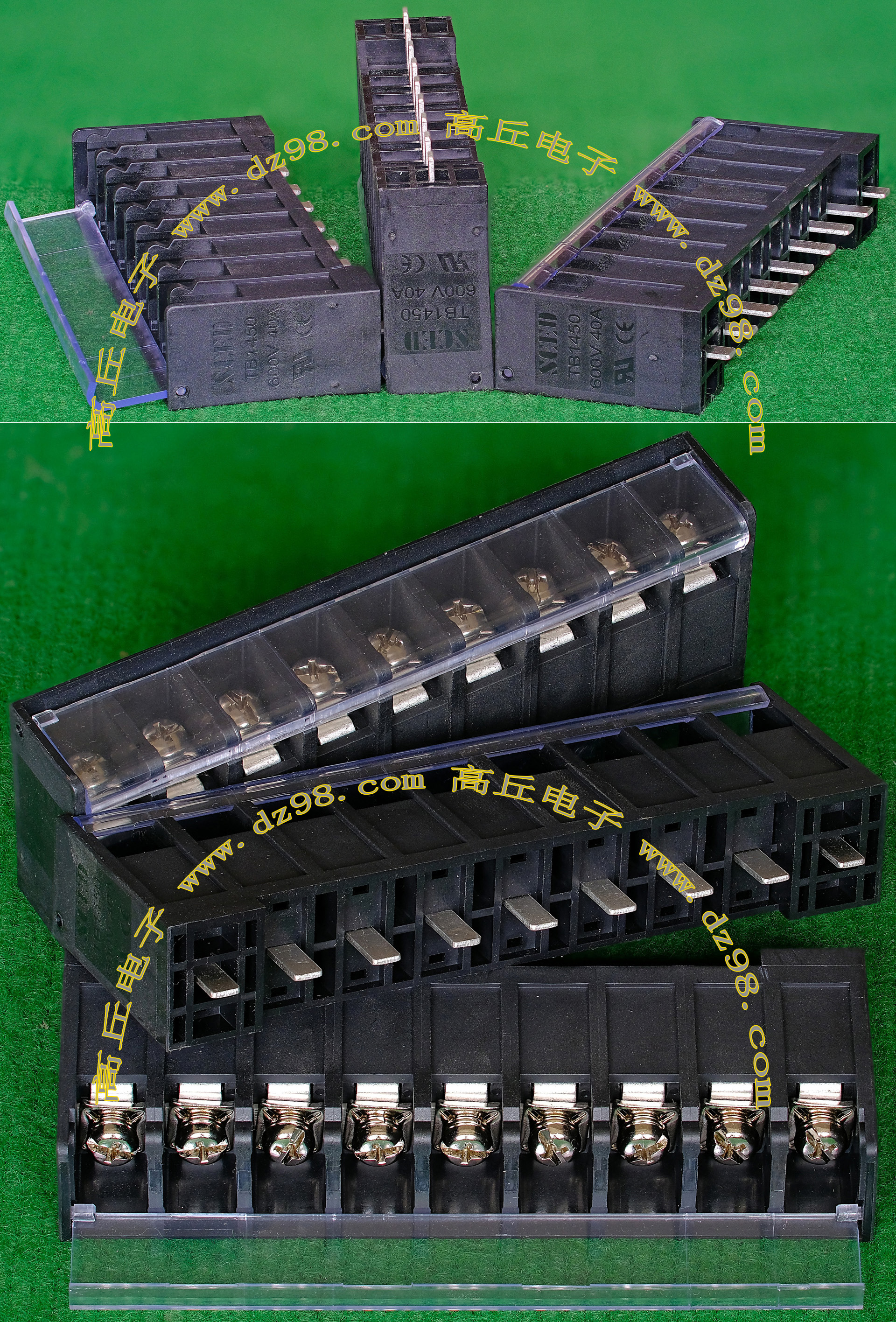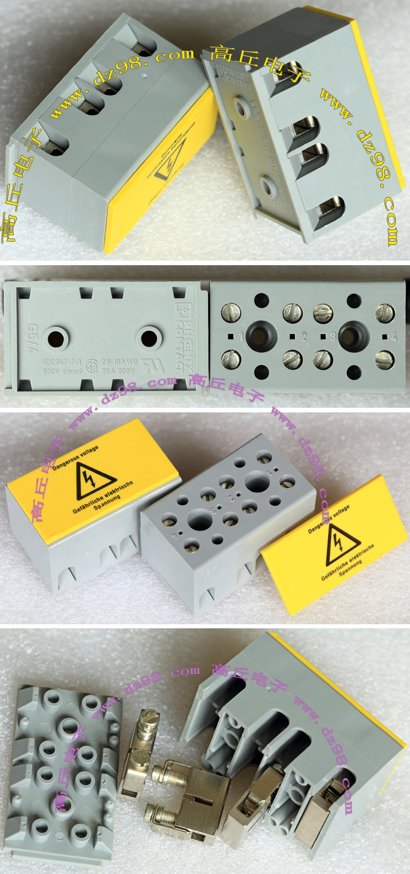 | HOPPY合璧HP-T3052-4P 600V 20A4档 接线端子BQD564 | 全新,实物参照图片,标称电压电流600V,20A,用料足,最大可以通过50A电流,外形尺寸;70x30x20毫米,重量约47克。 |