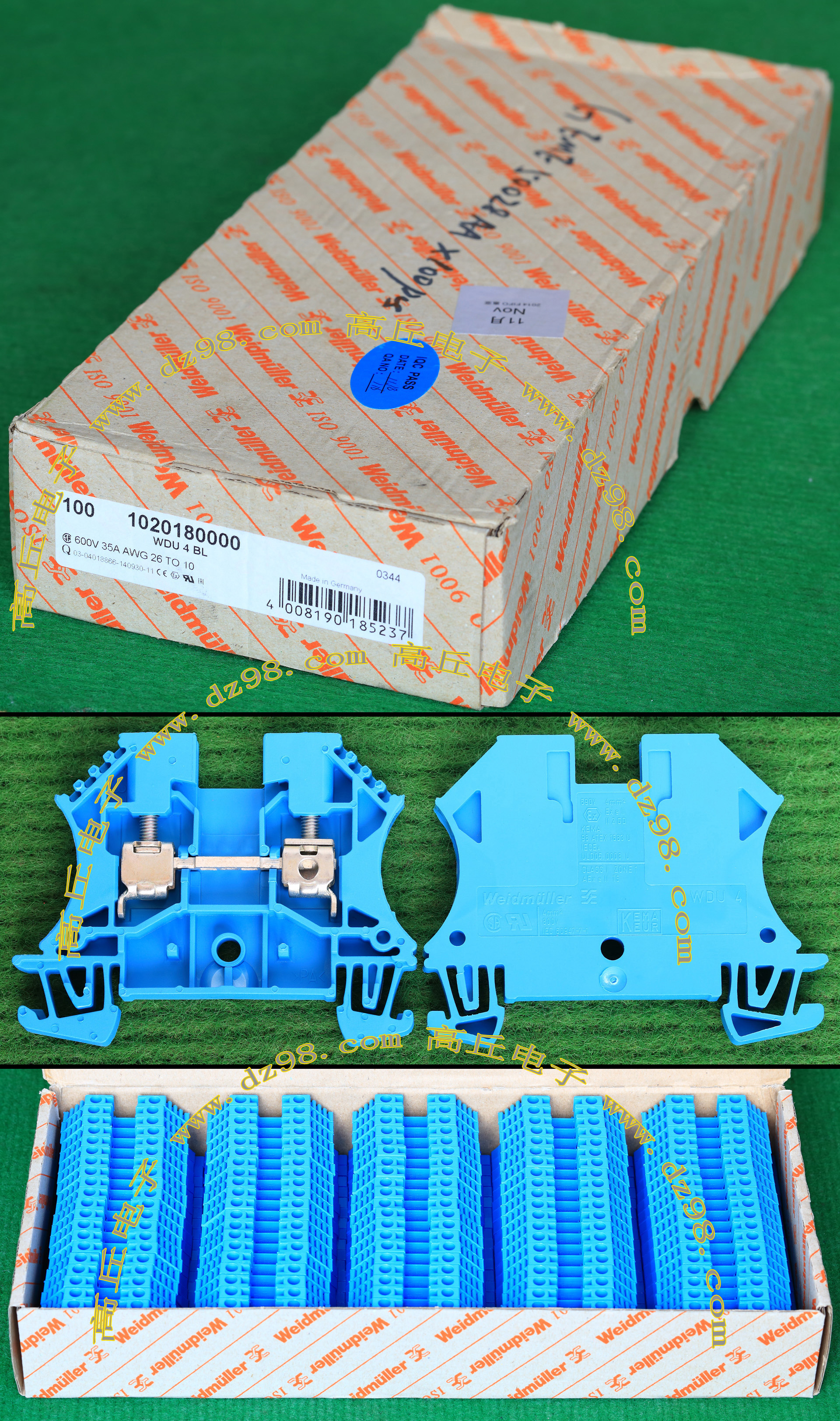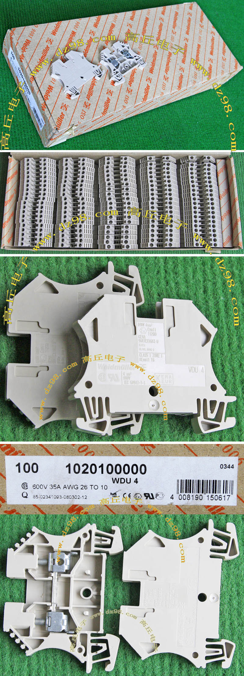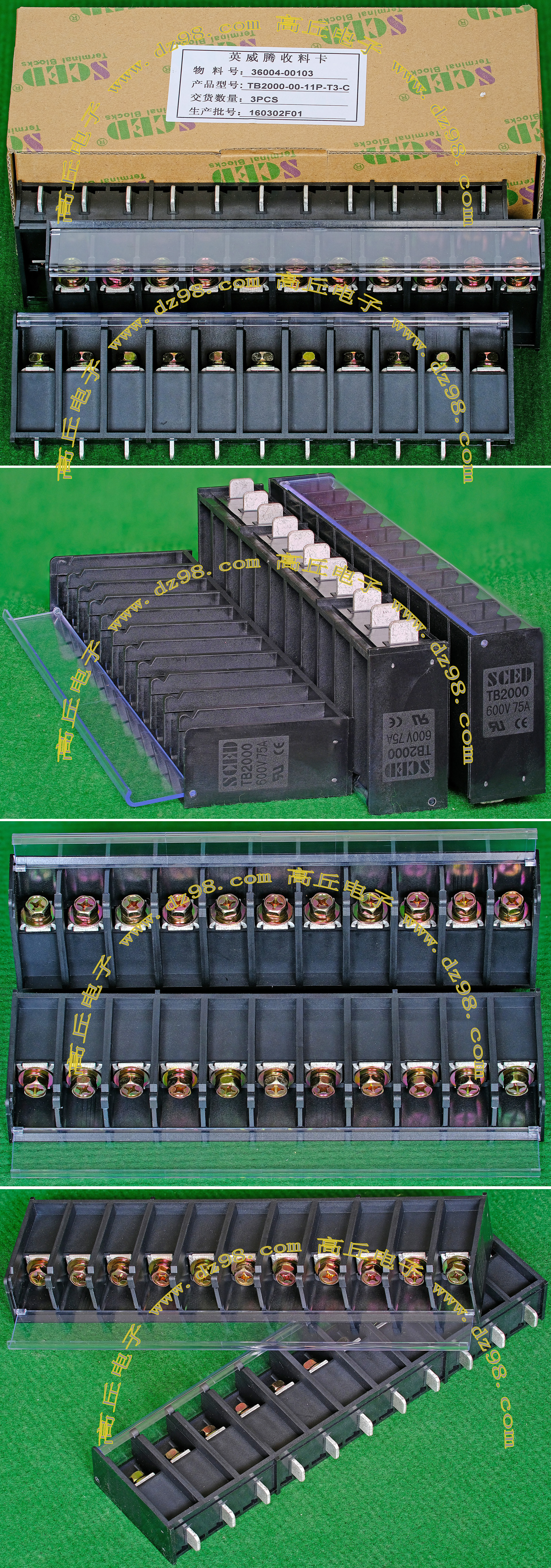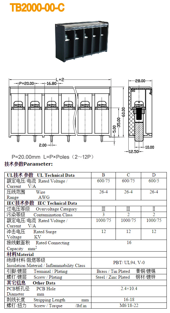 | HOPPY合璧HP-T3052-4P 600V 20A4档 接线端子BQD564 | 全新,实物参照图片,标称电压电流600V,20A,用料足,最大可以通过50A电流,外形尺寸;70x30x20毫米,重量约47克。 |