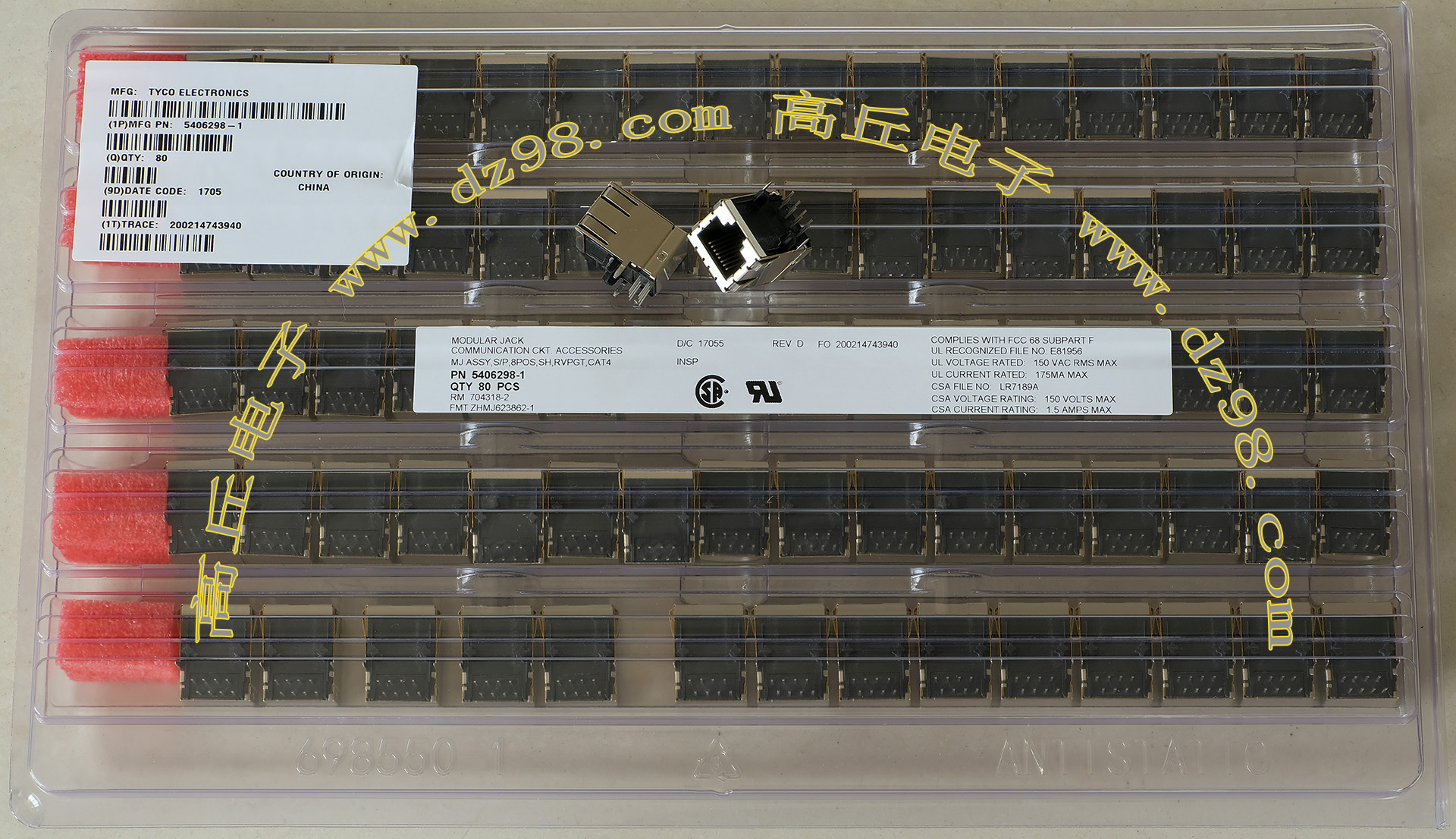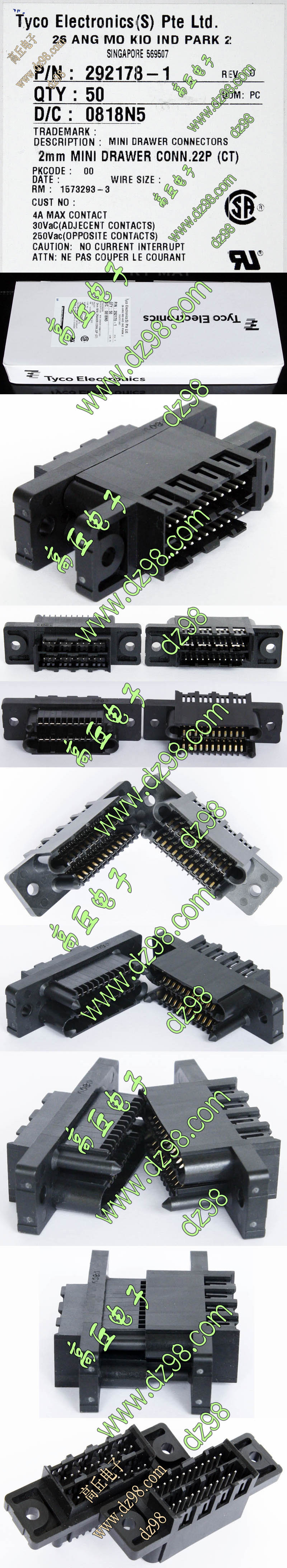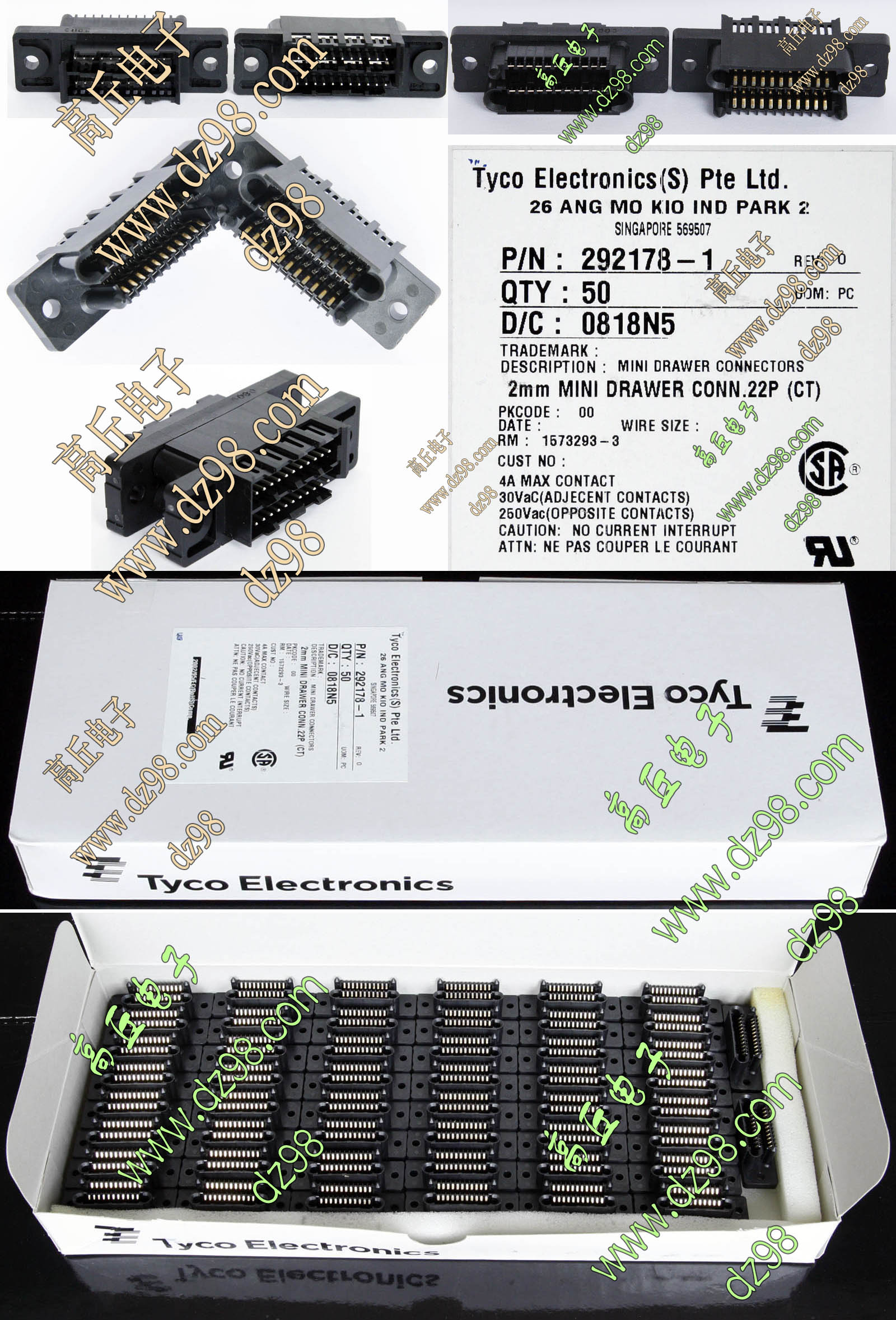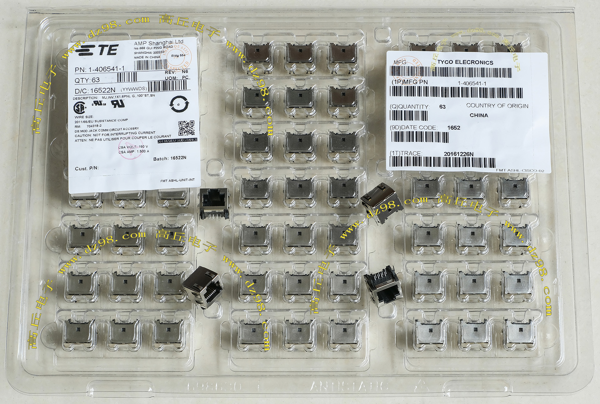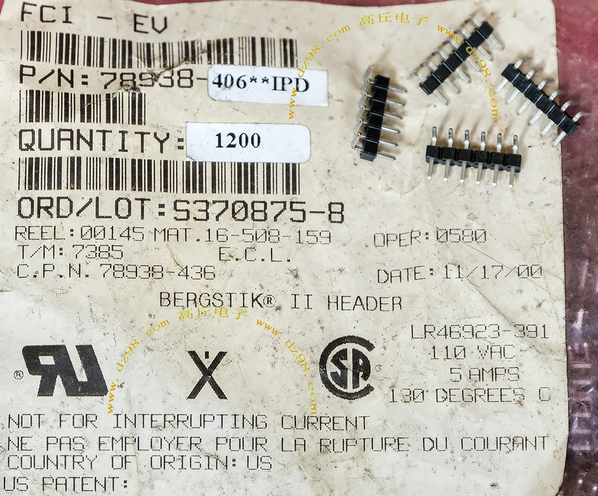 TYCO电子厂全新库存,每包数量1000只,可以和本网页的商品编号BQC162对插。 |