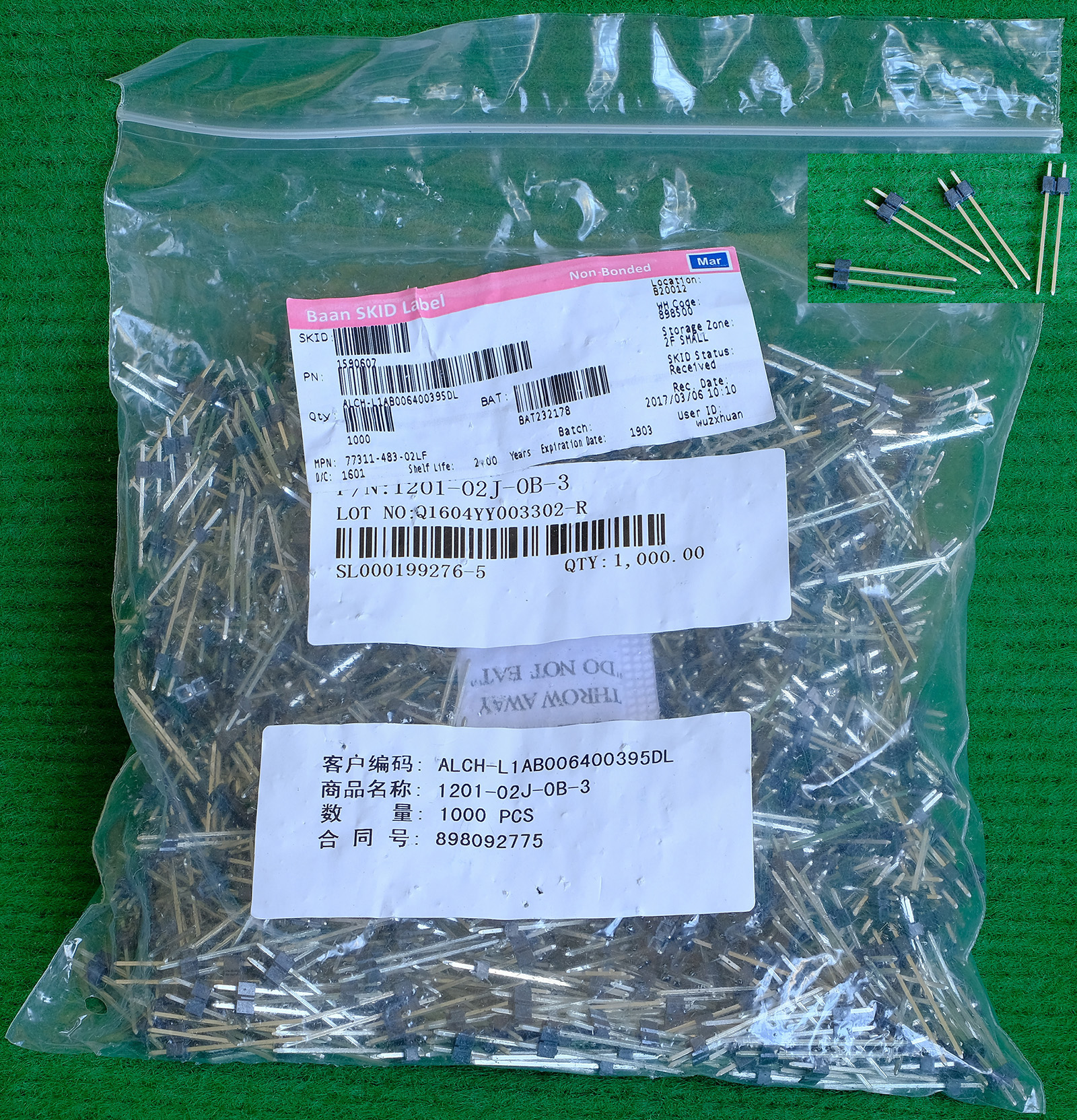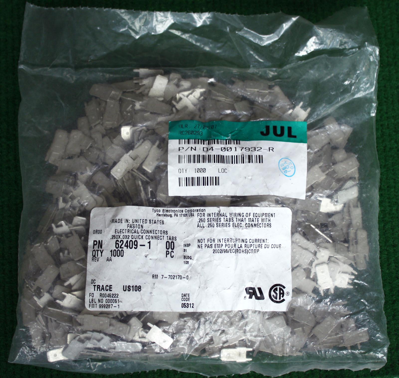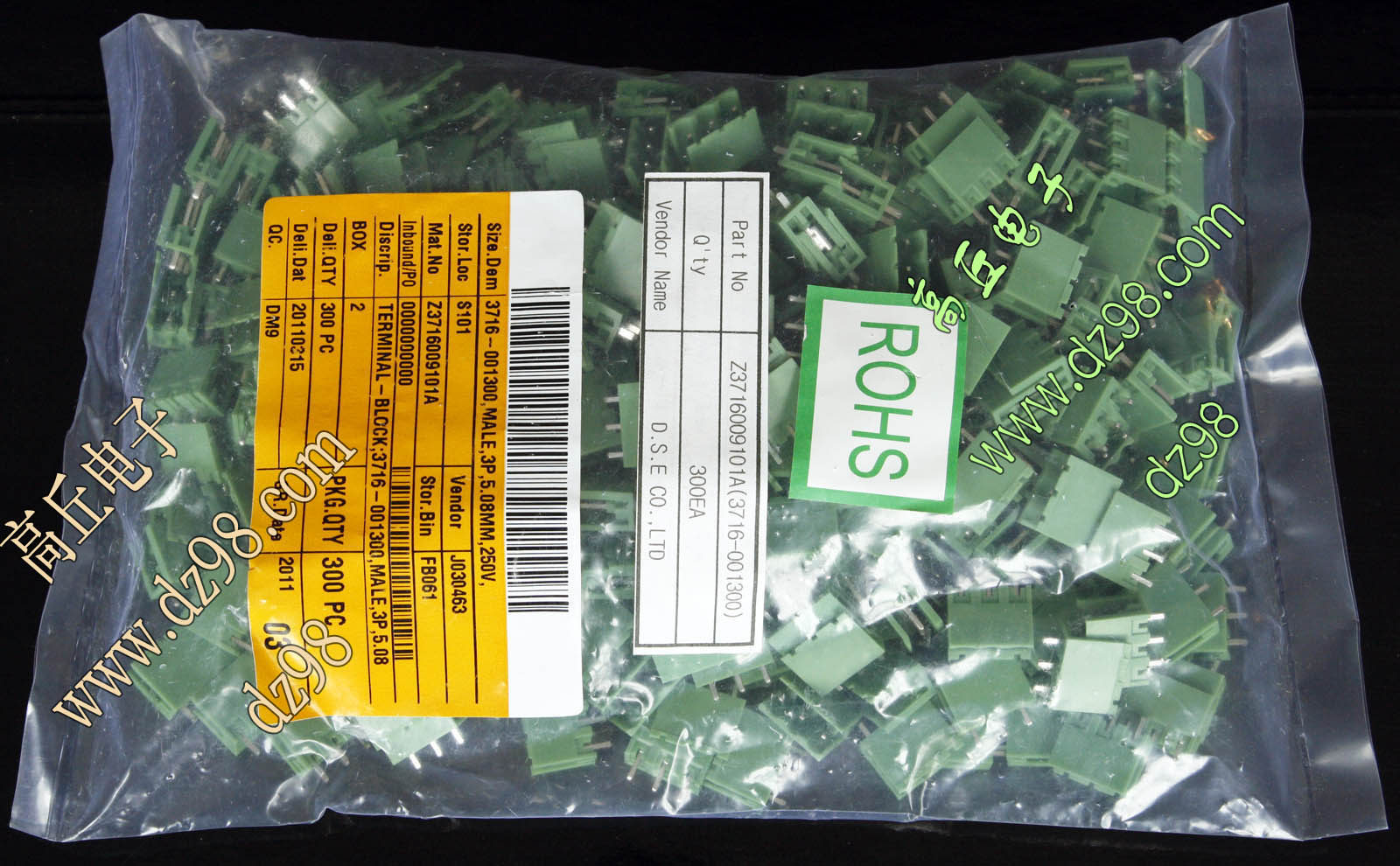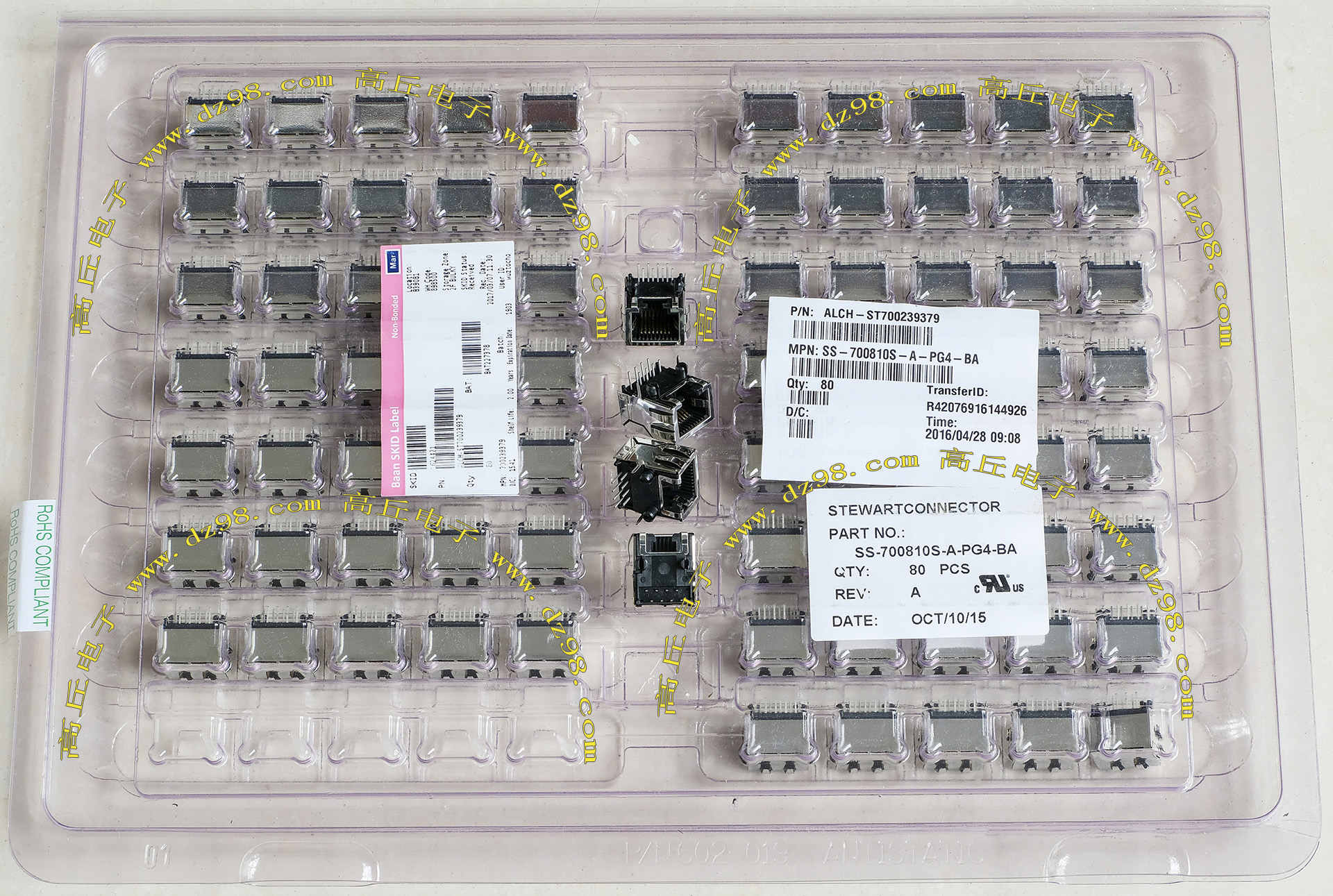 TYCO电子厂全新库存,每包数量1000只,可以和本网页的商品编号BQC162对插。 |