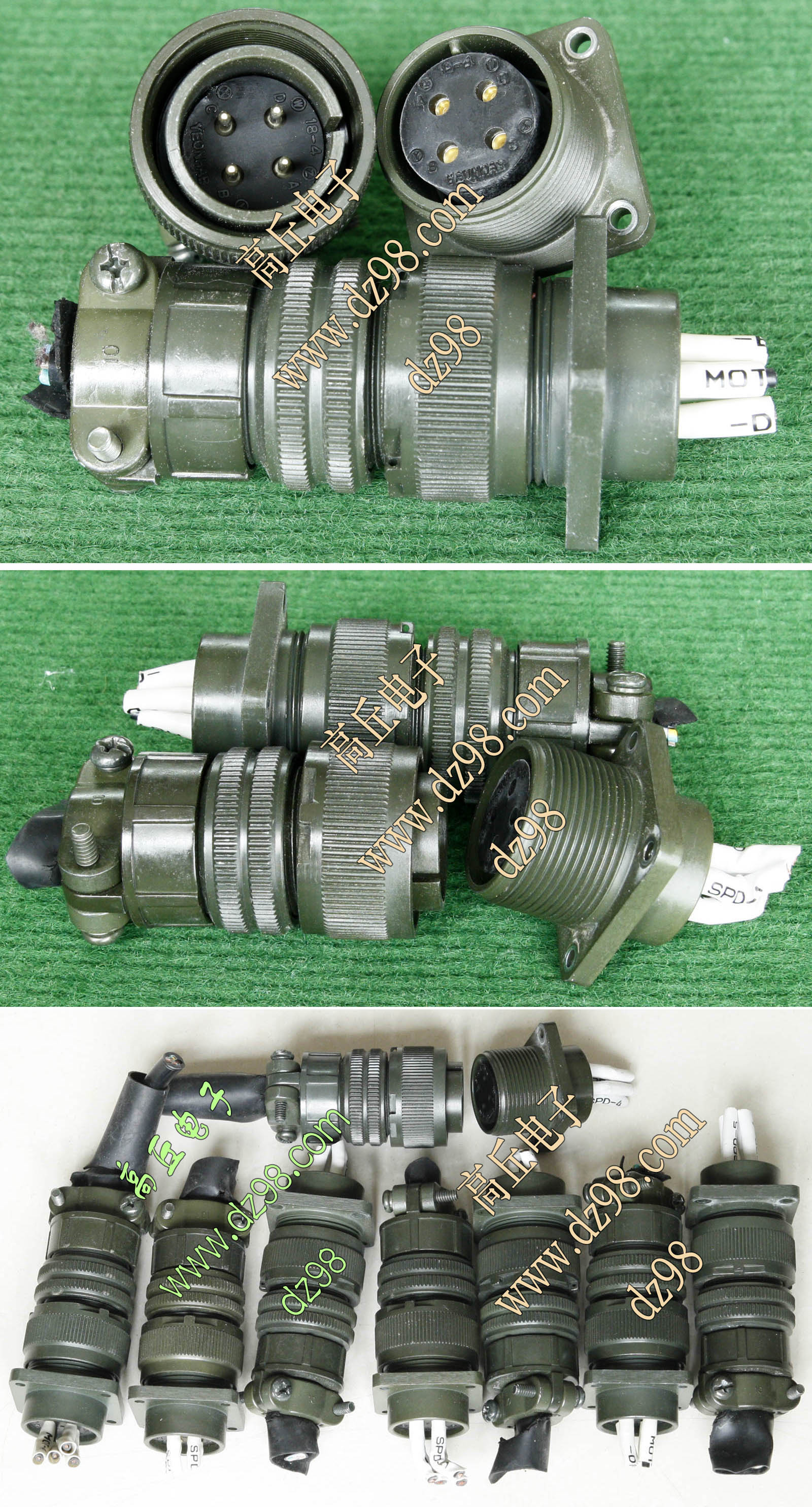 | 进口拆机4P 公座母插航空插头插座连接器BQD608 | 进口拆机,做工精致,军品级插头与插座,共4P,每芯承受电流估计25-30A,金属外壳,镀金导电芯,重量128克,安装开孔直径30mm。 |