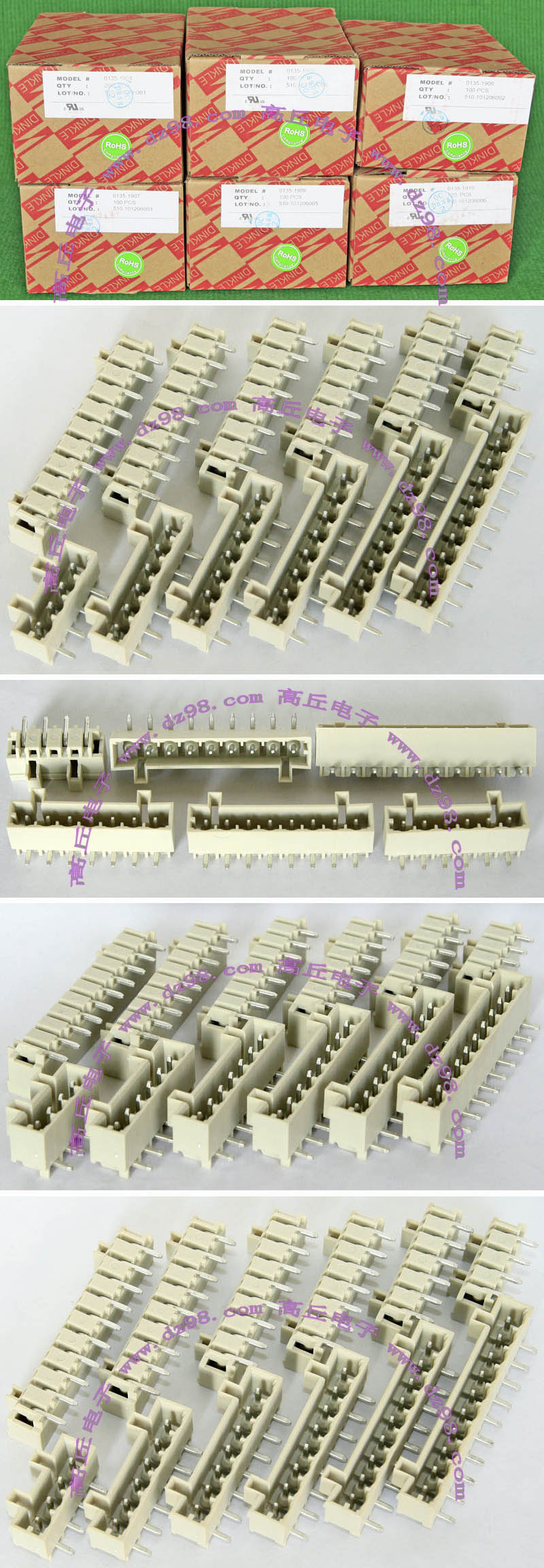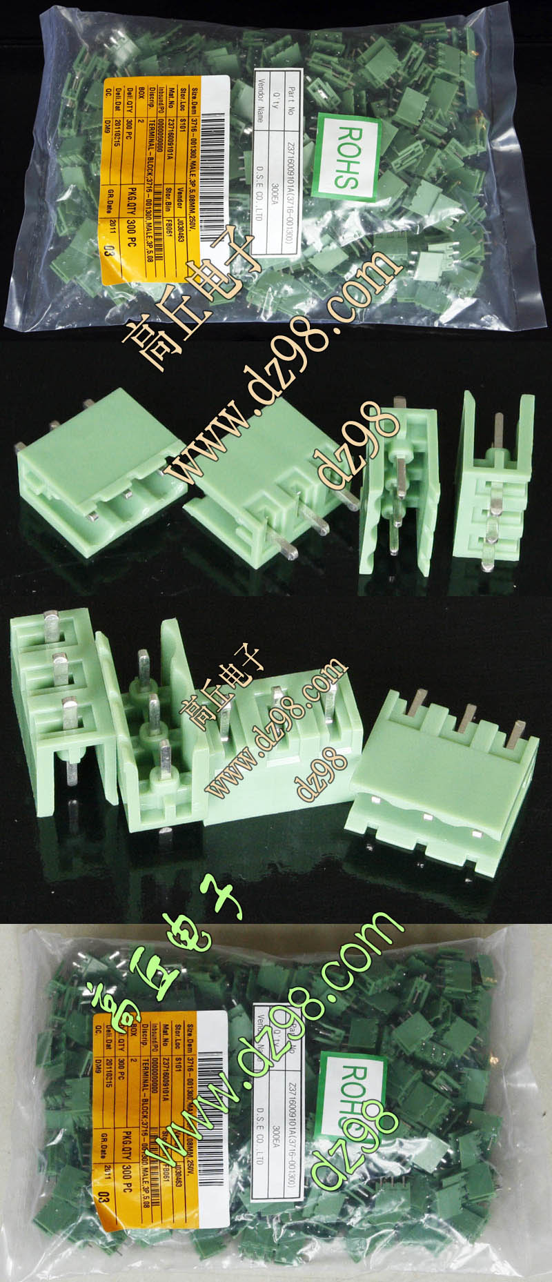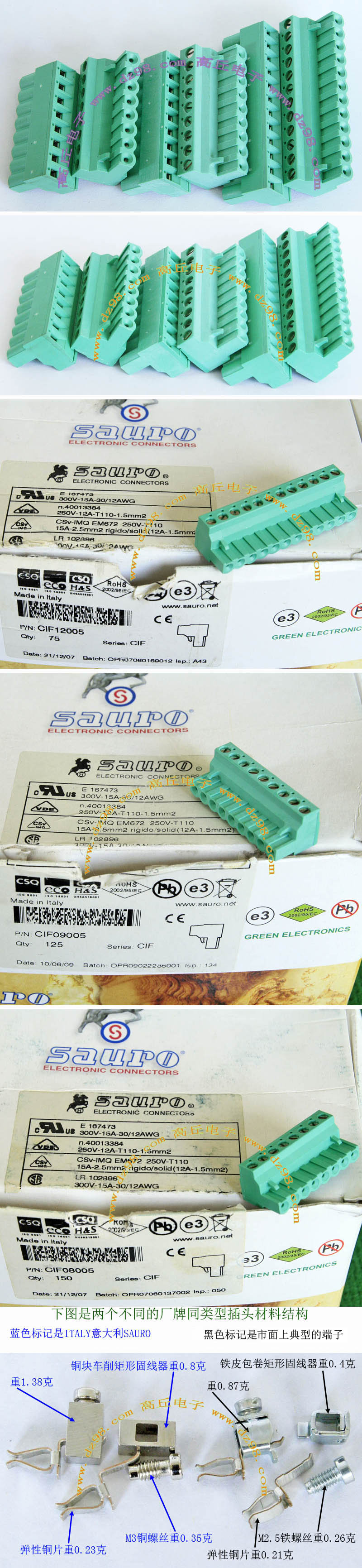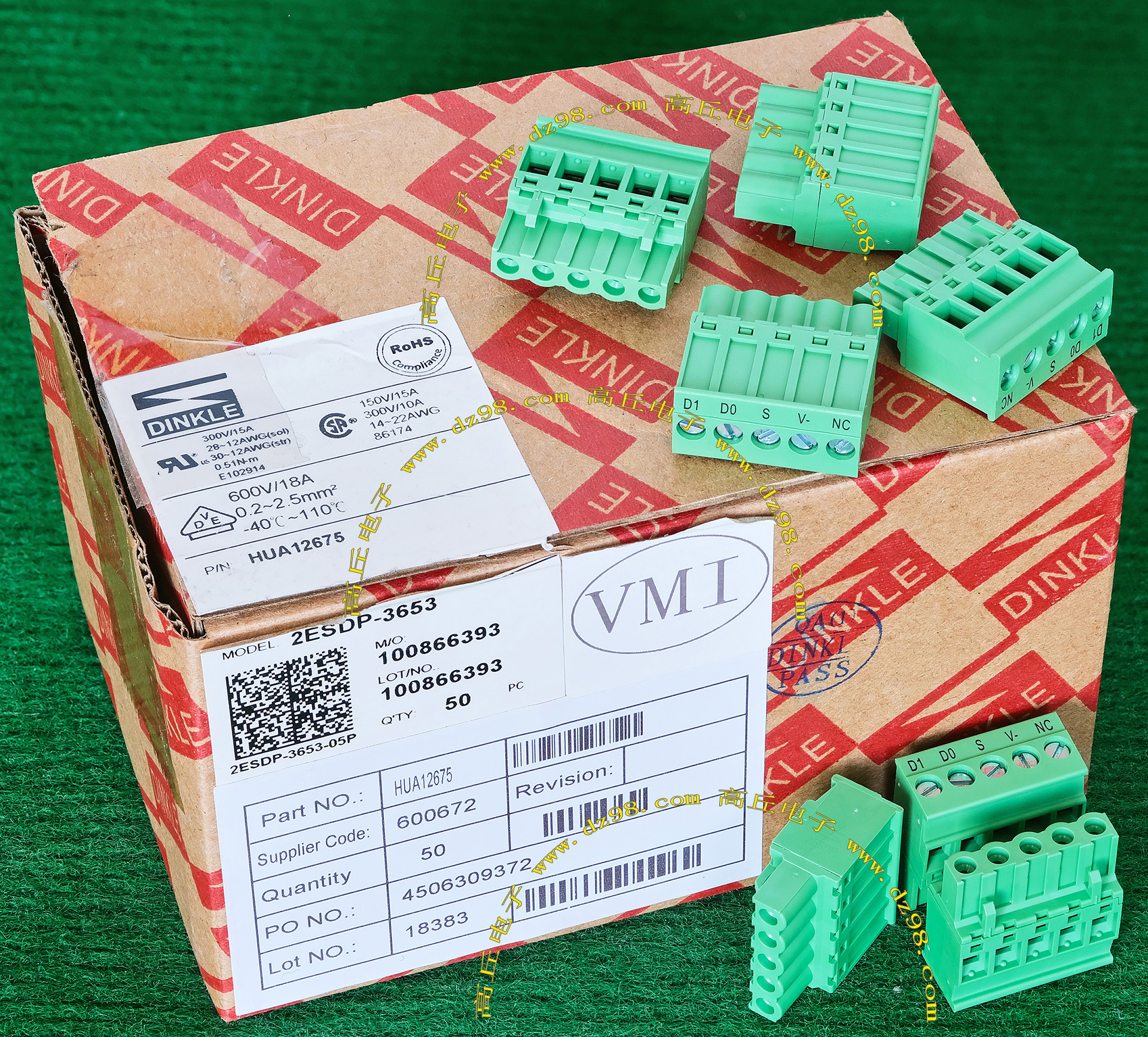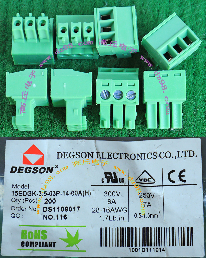 | DINKLE 2ESDP-3653 300V/15A 5档接线端子插头BQD572 | 全新,实物看图片,外形尺寸;25.4x12x26.2毫米,每档间隔距离5.08mm。 |