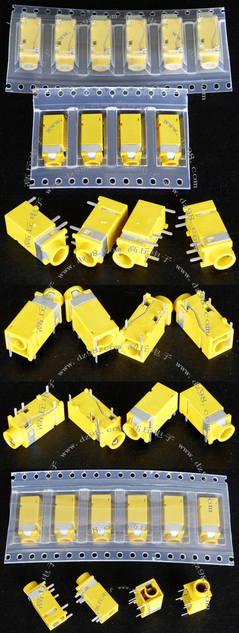 全新焊板式镀金插座,尺寸:外直径4.8mm,最大处外直径5.5mm,内孔直径3.5mm,长度7.4mm,内孔深度6mm。 |