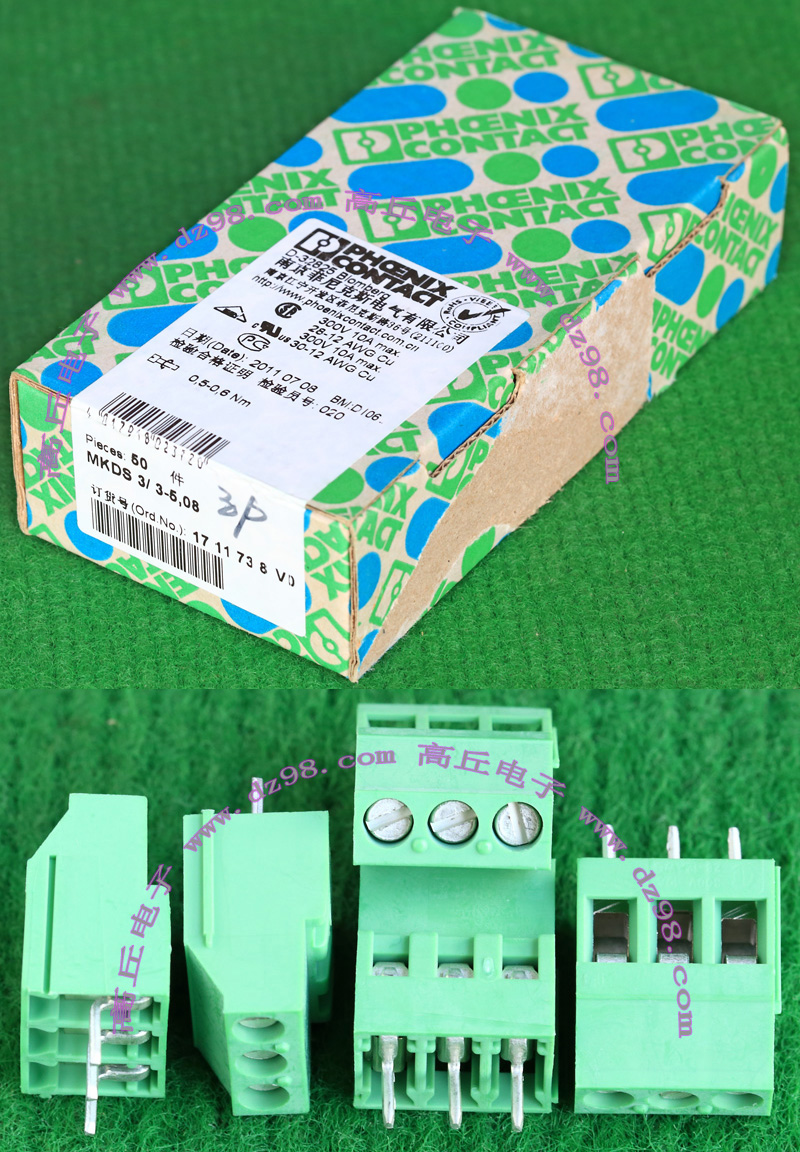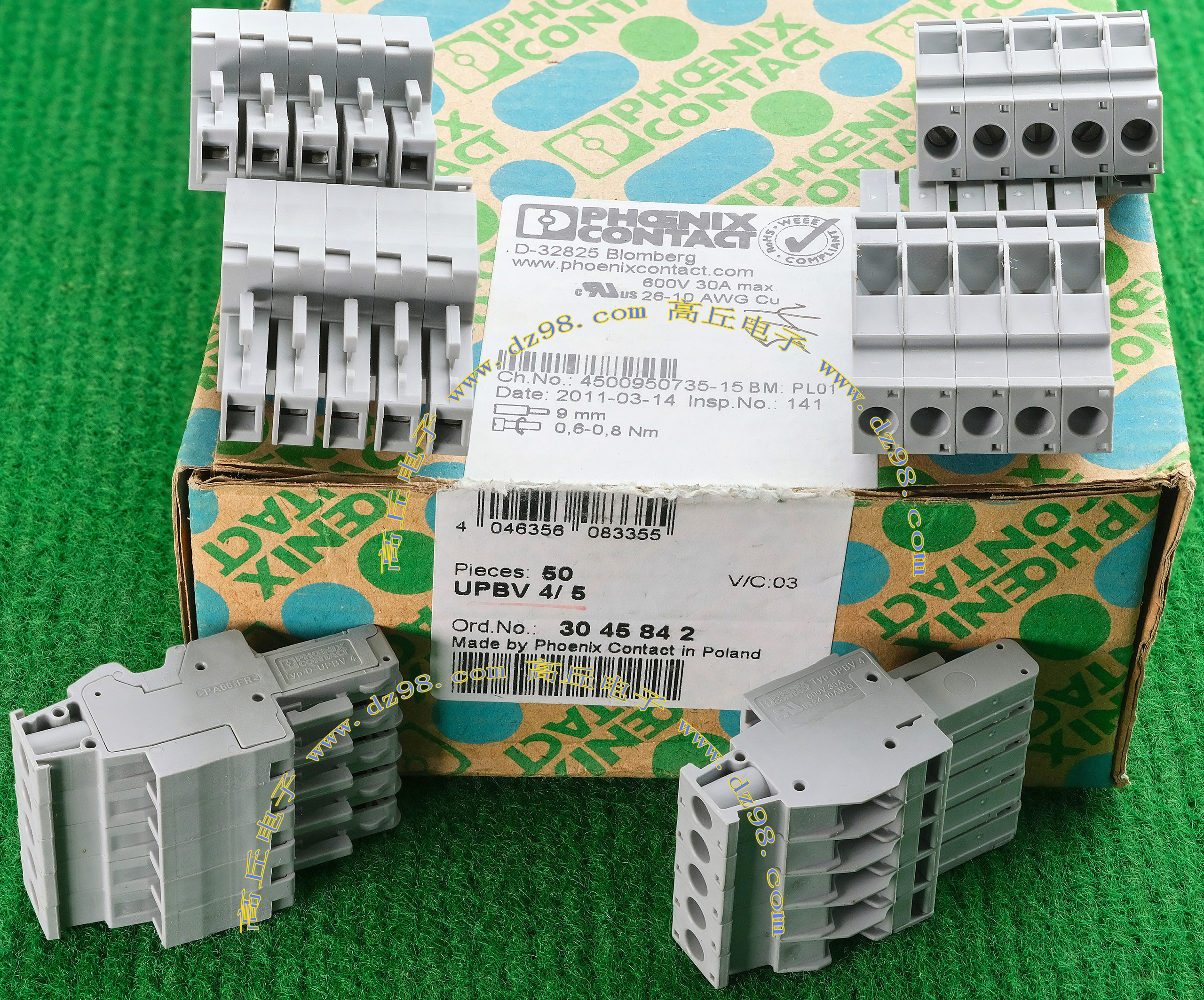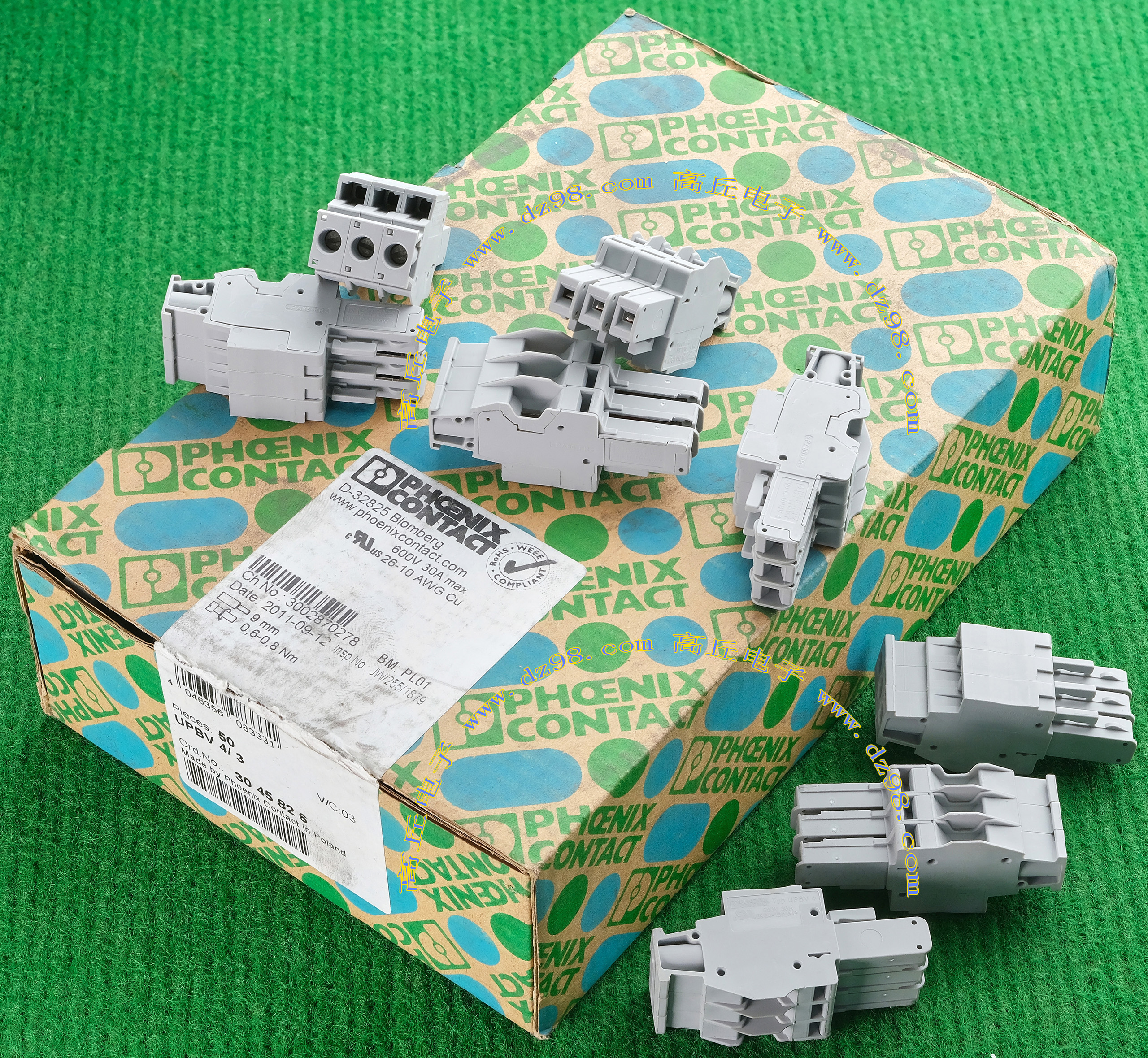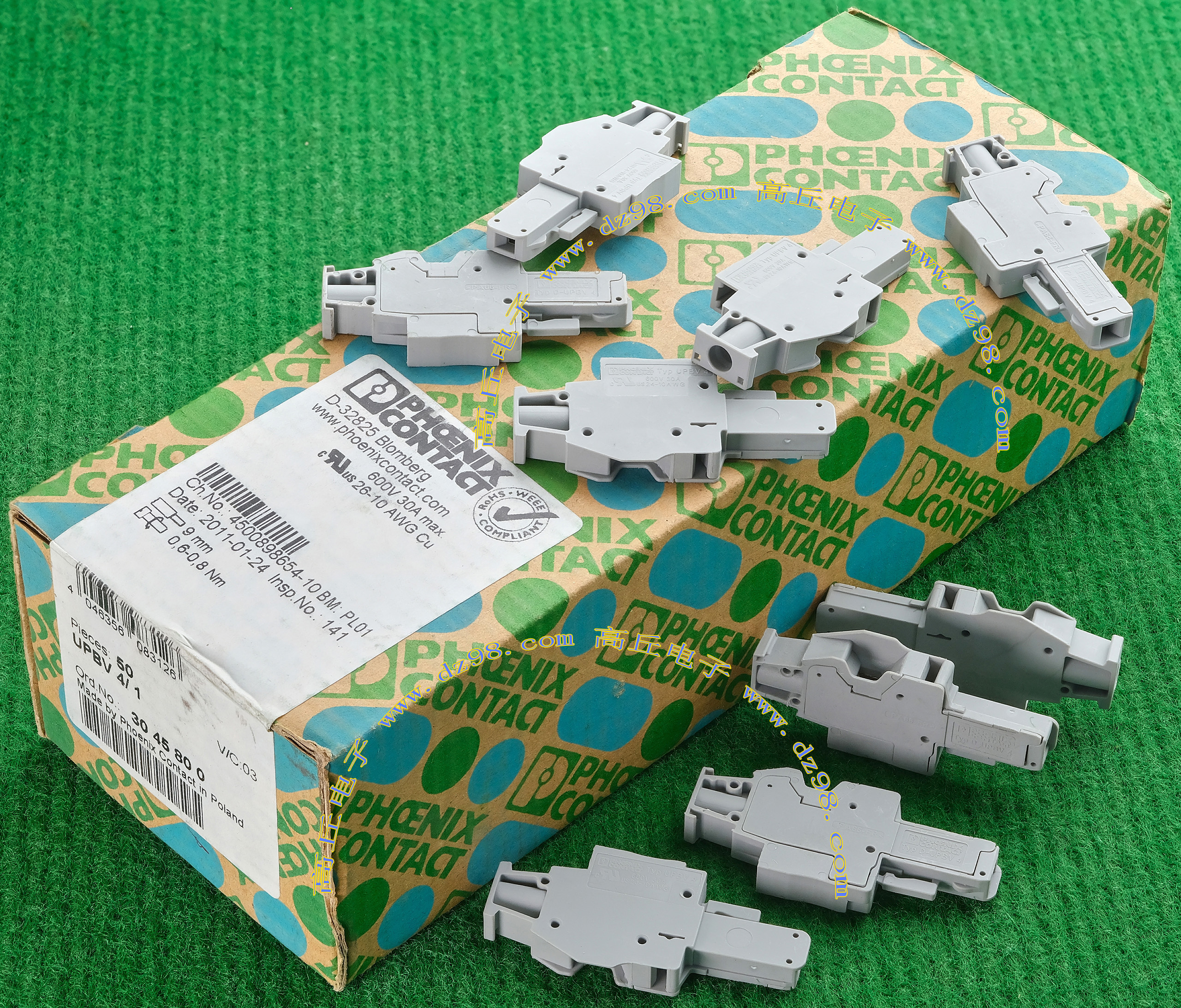 PHOENIX CONTACT菲尼克斯UPBV4/1 600V 30A 26-10AWG接线端子插头BQD594 数量550只 |