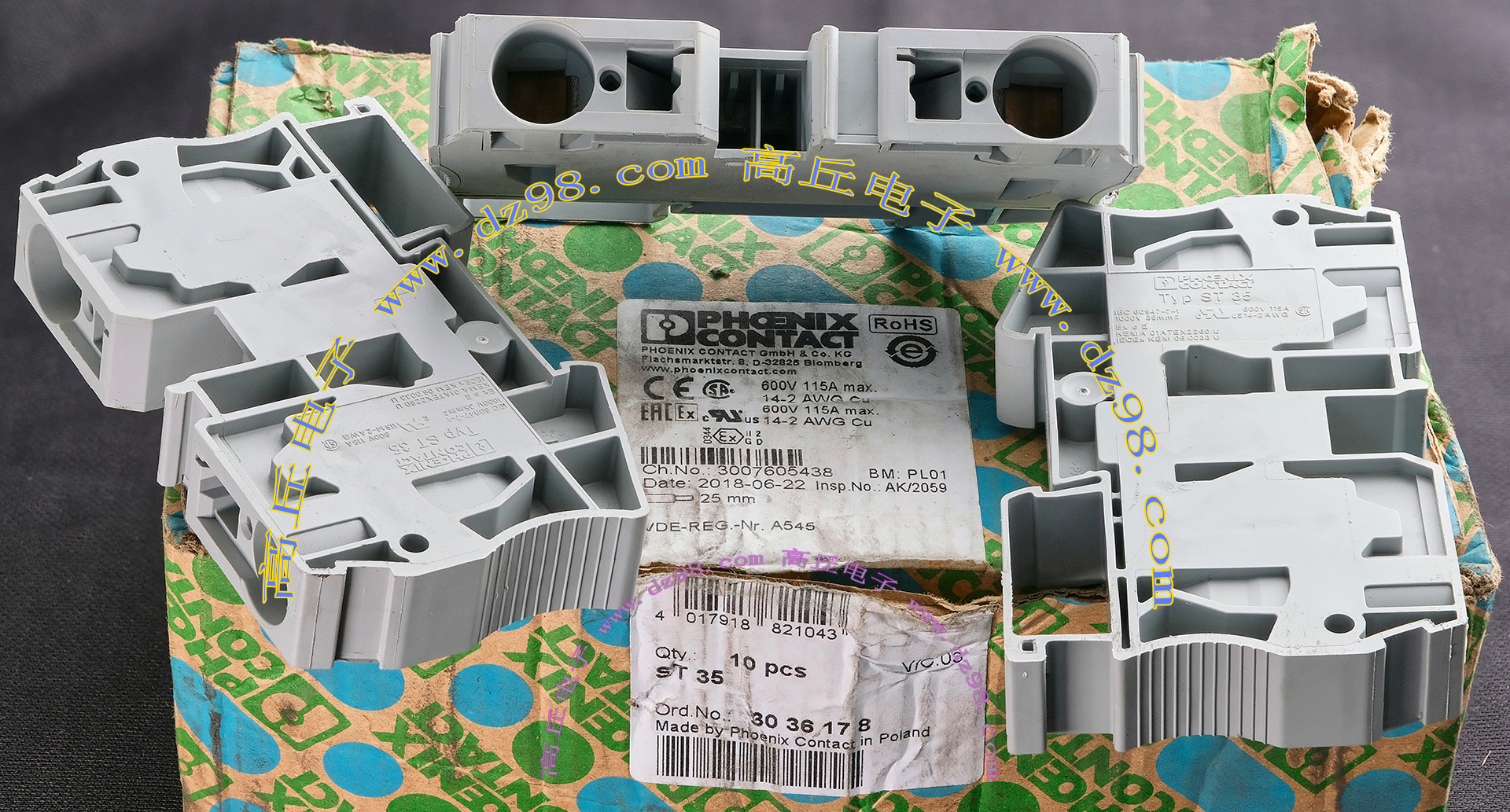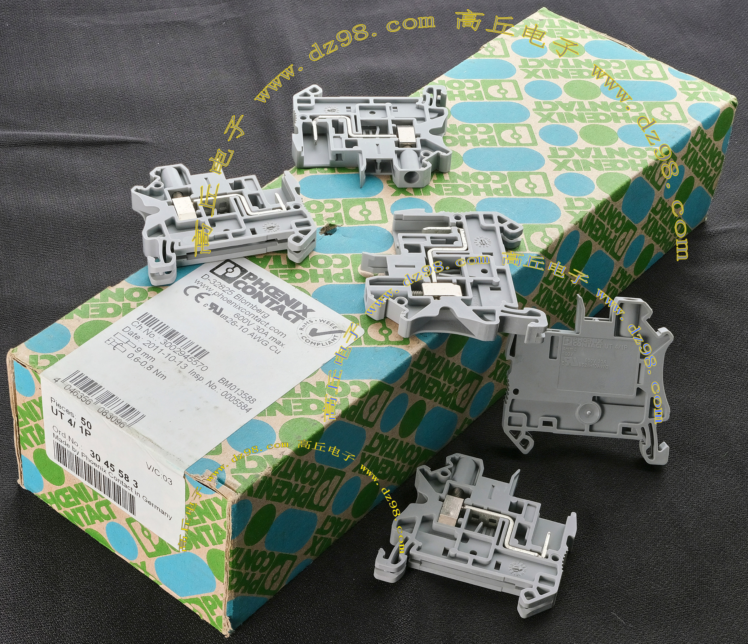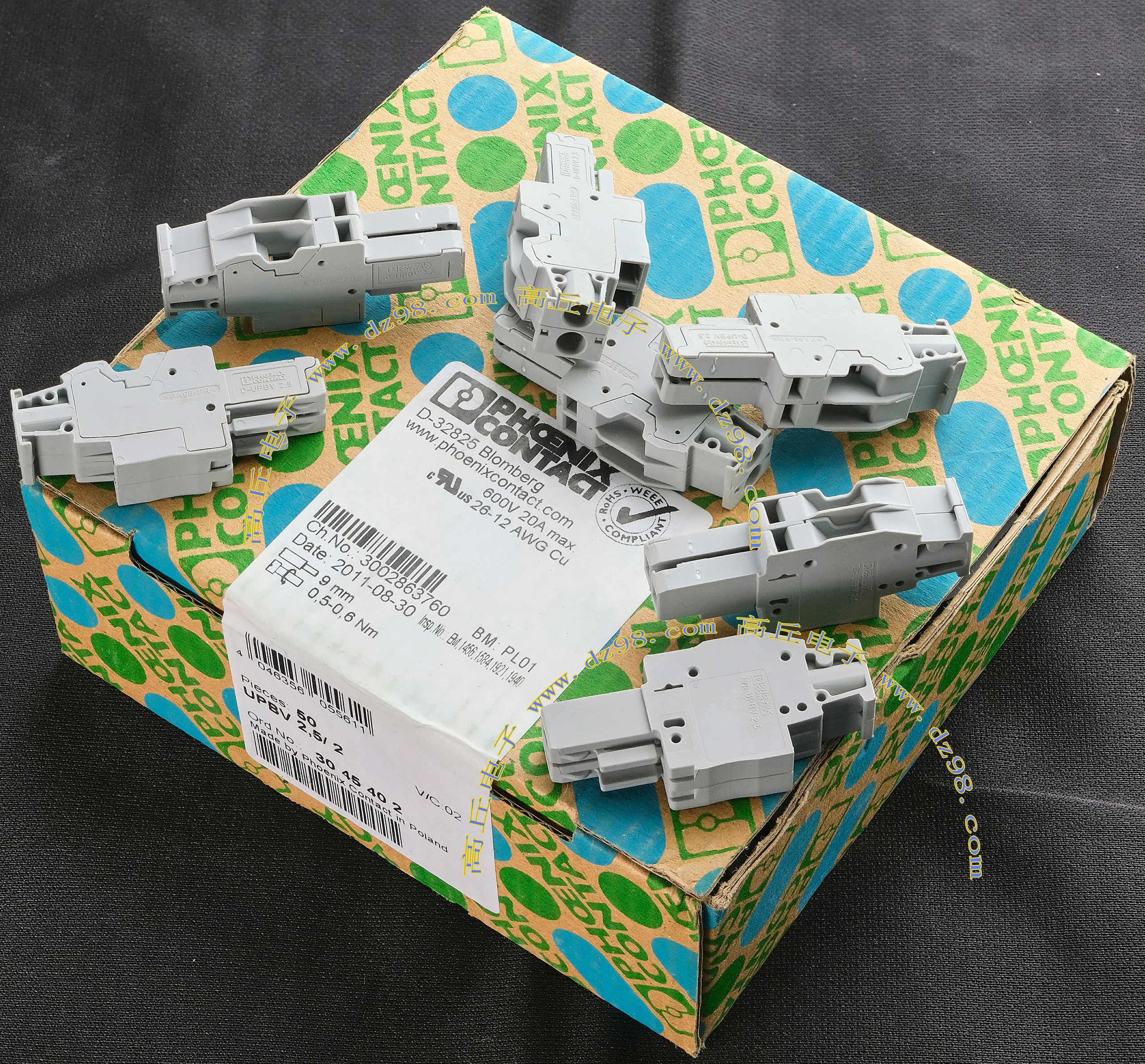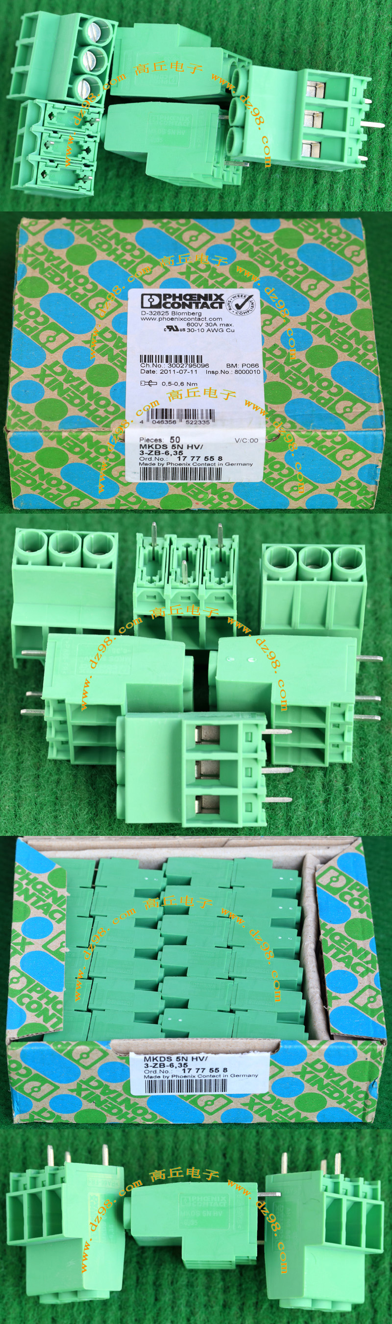 PHOENIX CONTACT菲尼克斯UPBV4/1 600V 30A 26-10AWG接线端子插头BQD594 数量550只 |