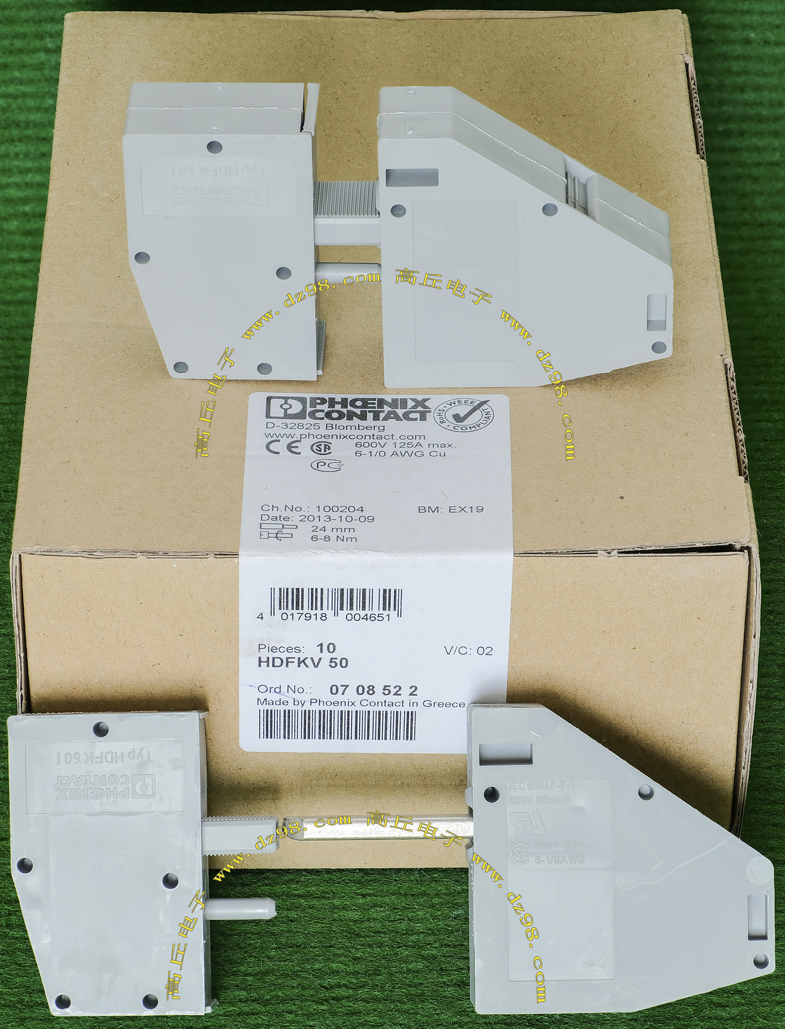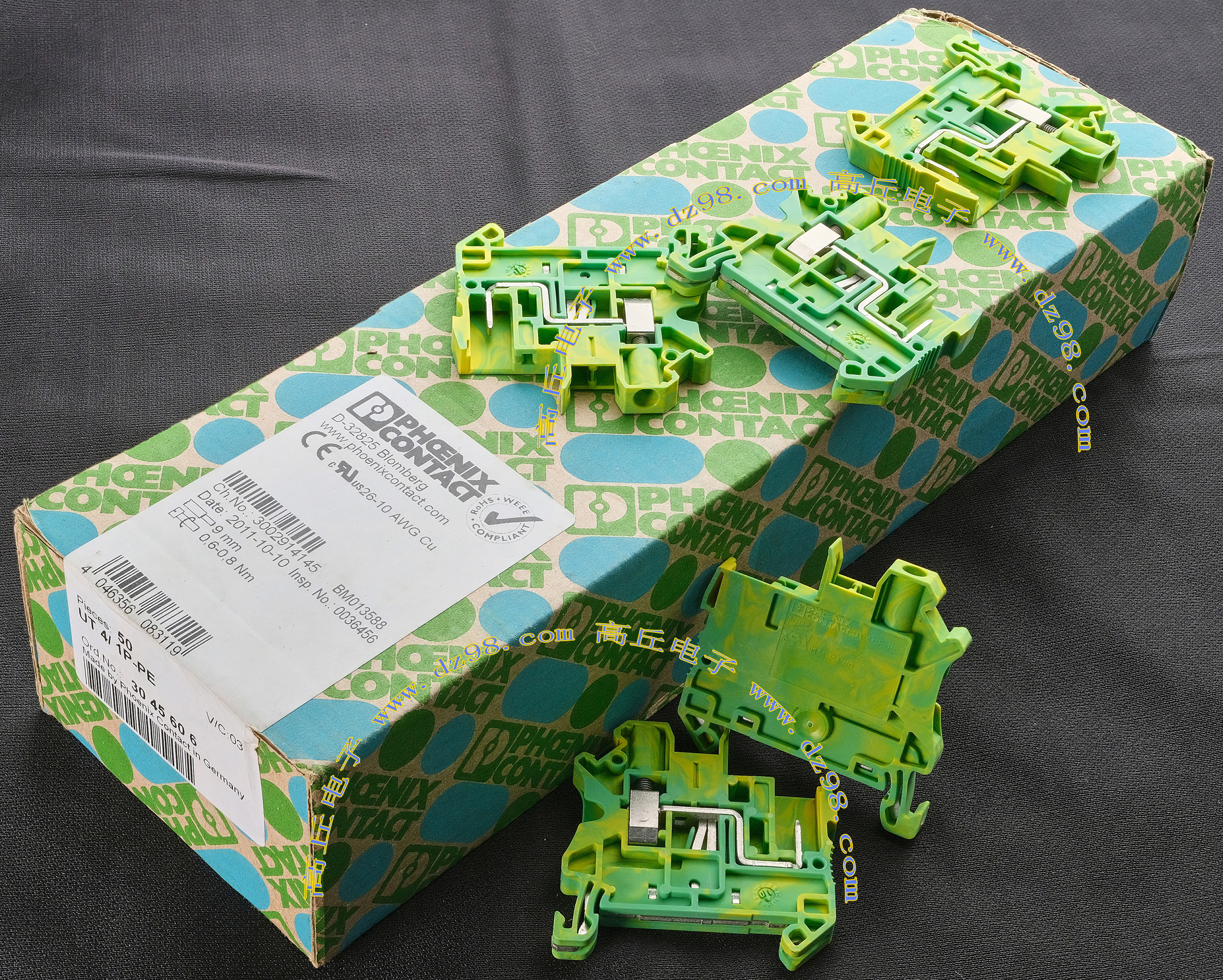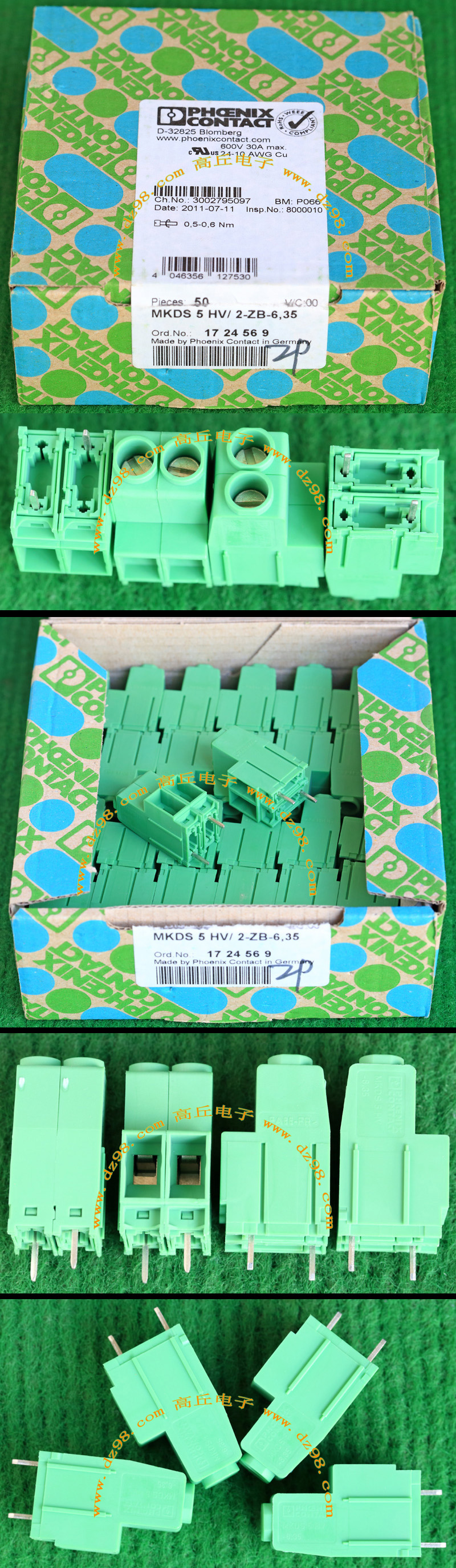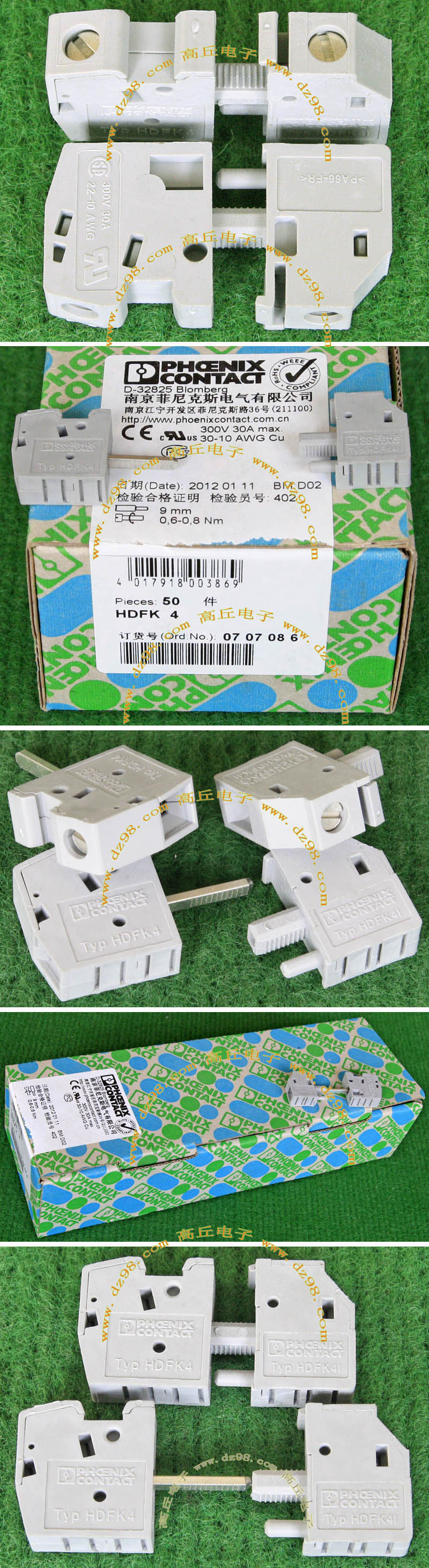 PHOENIX CONTACT菲尼克斯UPBV4/1 600V 30A 26-10AWG接线端子插头BQD594 数量550只 |