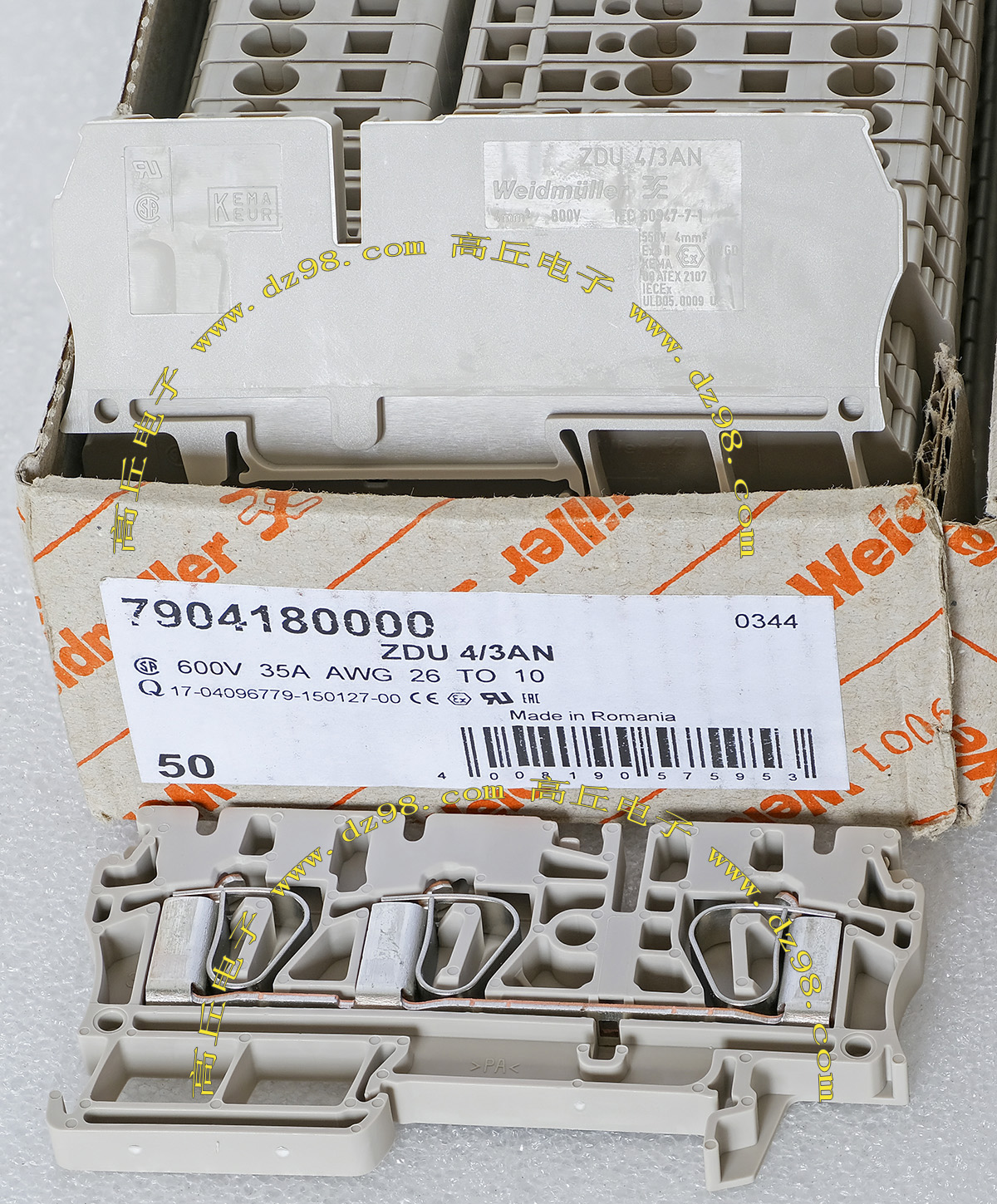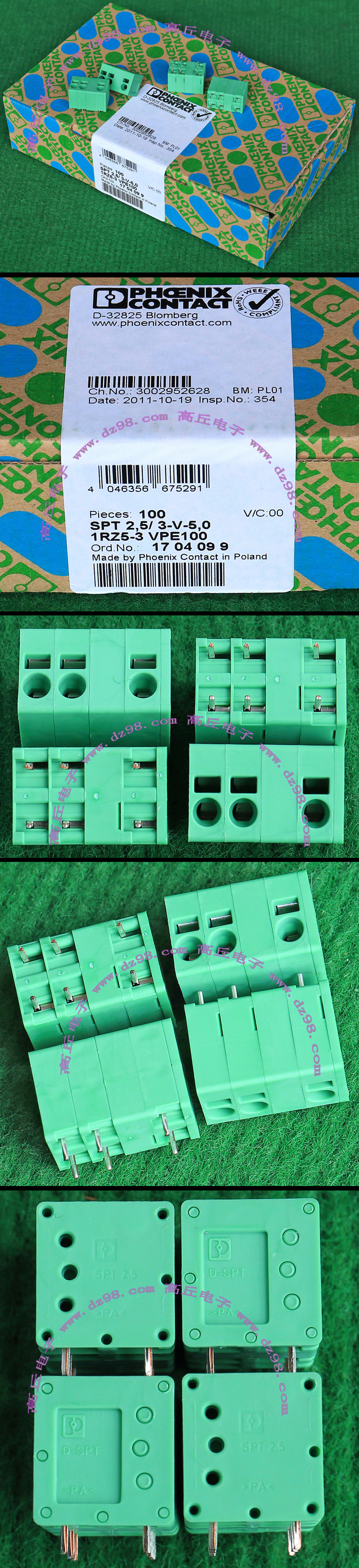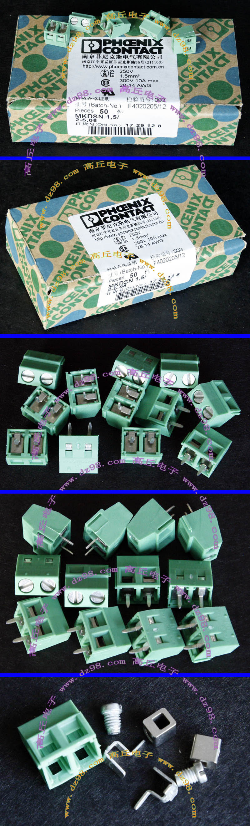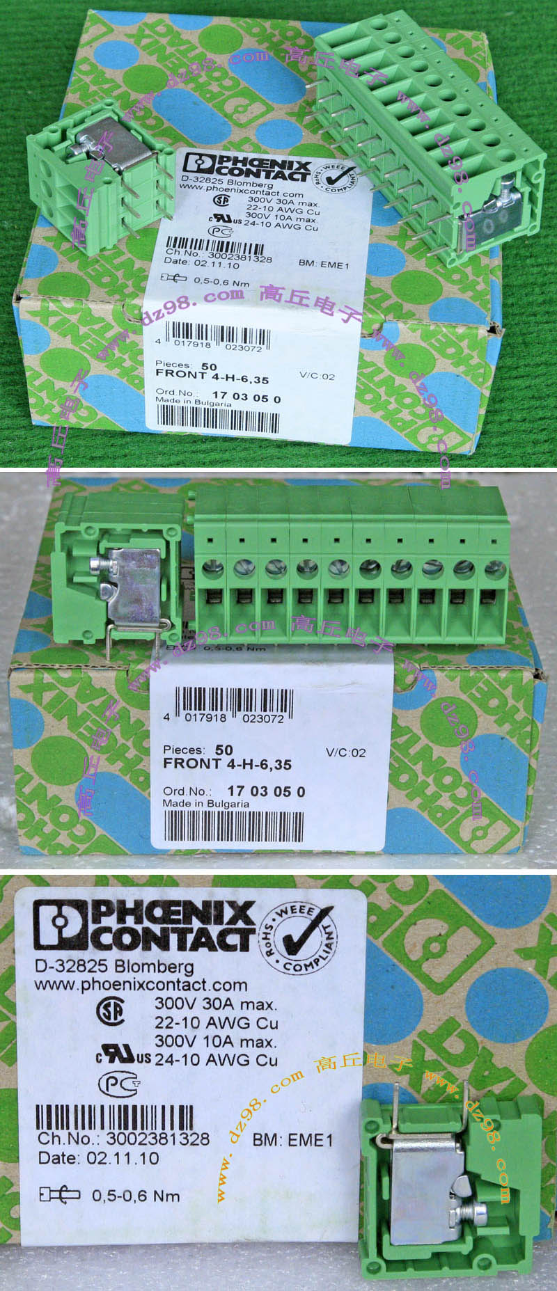 PHOENIX CONTACT菲尼克斯UPBV4/1 600V 30A 26-10AWG接线端子插头BQD594 数量550只 |