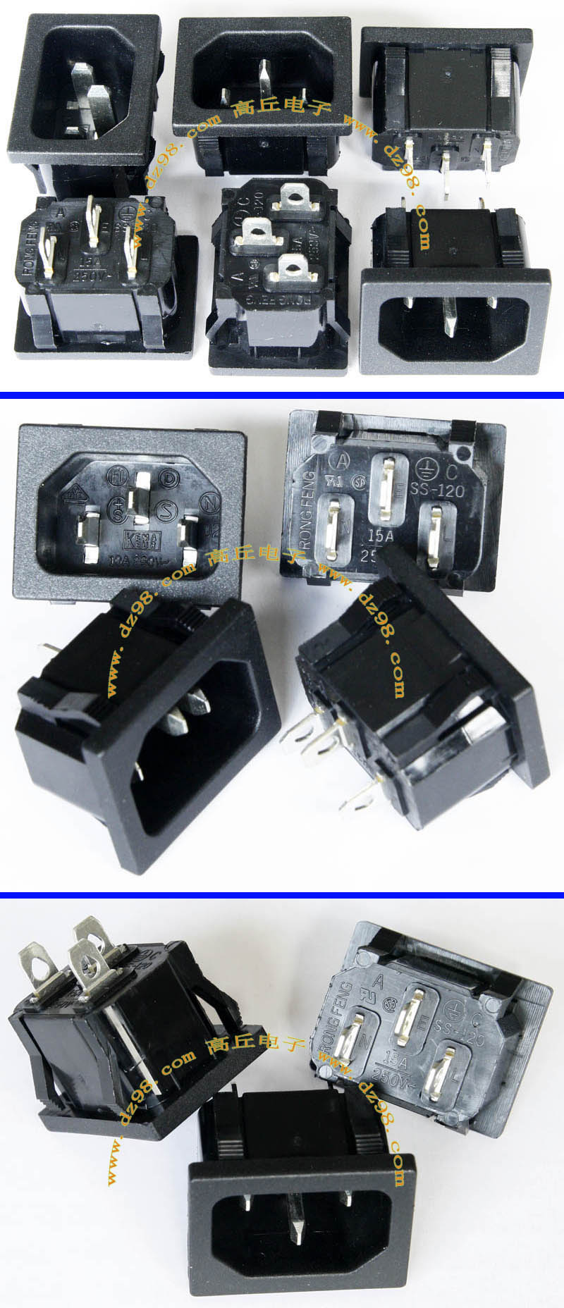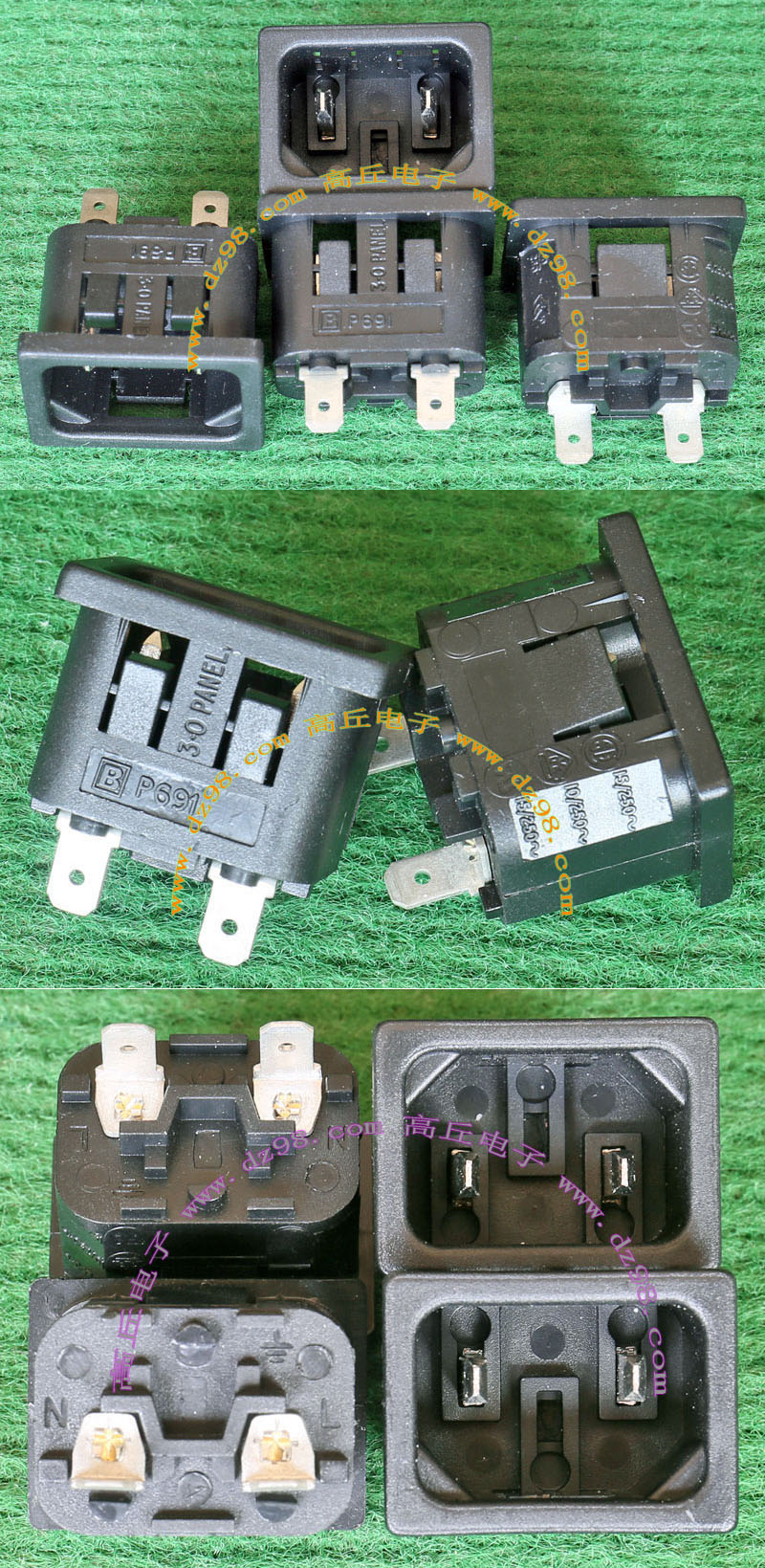 | 全铜导电件 10A-15A 250VAC 电源插座BQD571 | 全新电源插座,实物参照图片,纯铜导电件,开孔尺寸27x19毫米,安装螺丝孔距离40毫米,重量约10.5克。 | 单价1.8元。 |