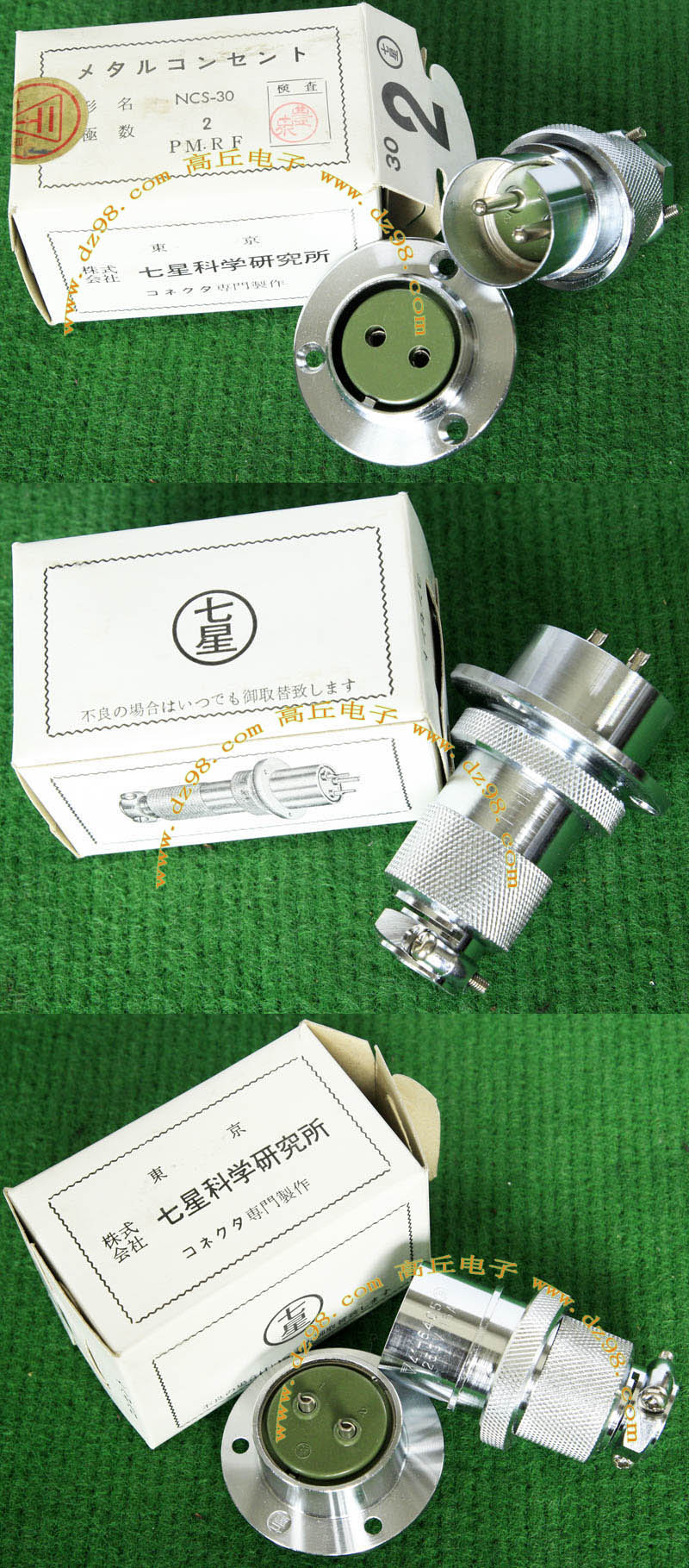 拆机件,日本产,做工精致,军品级插头与插座,每芯电流10A,铝合金外壳,镀银导电芯,重量60克,安装开孔直径19mm,4个锣丝孔距离22.5mm。 |