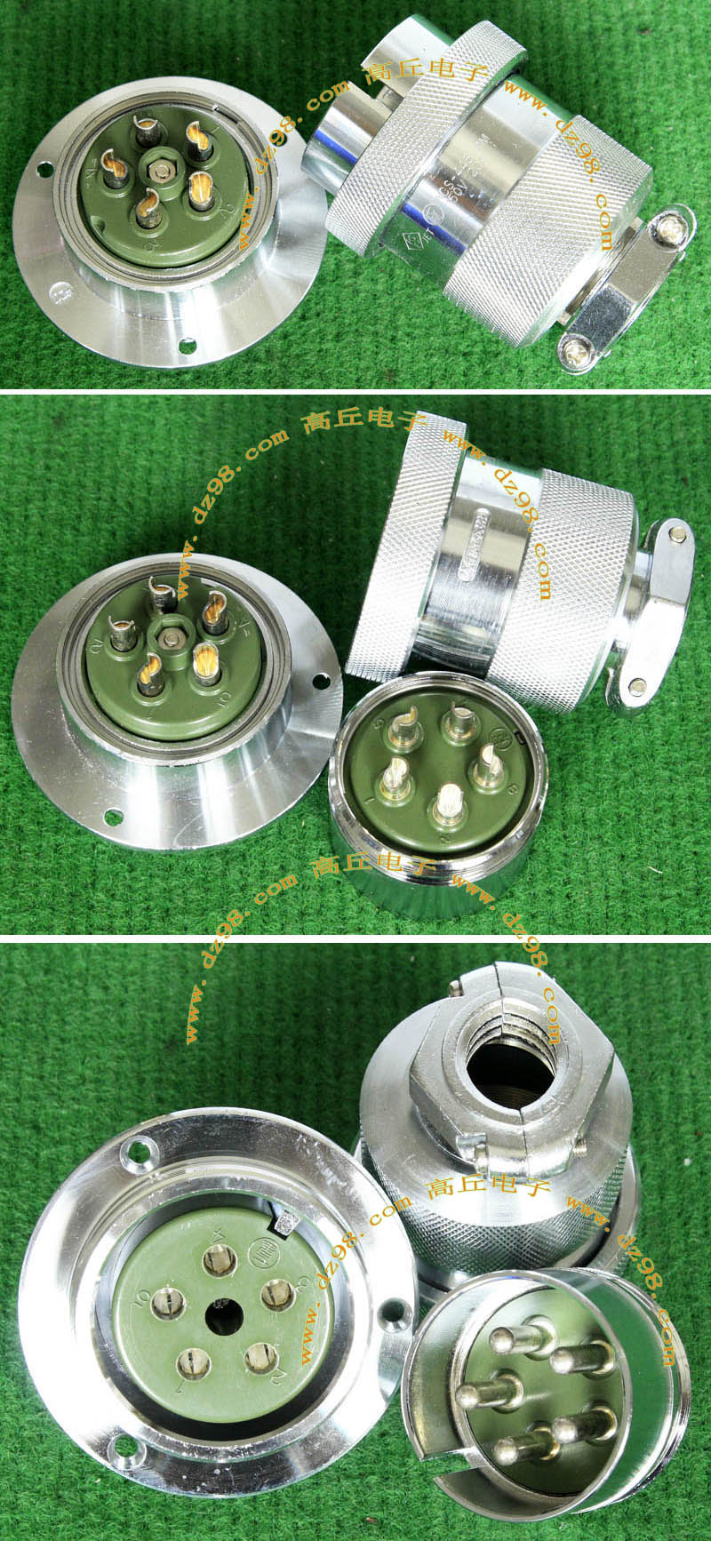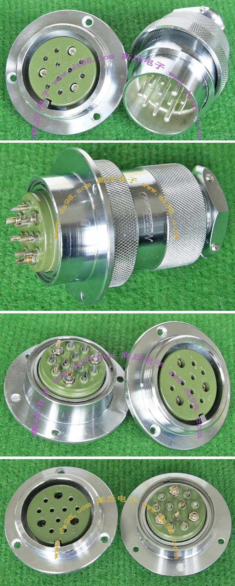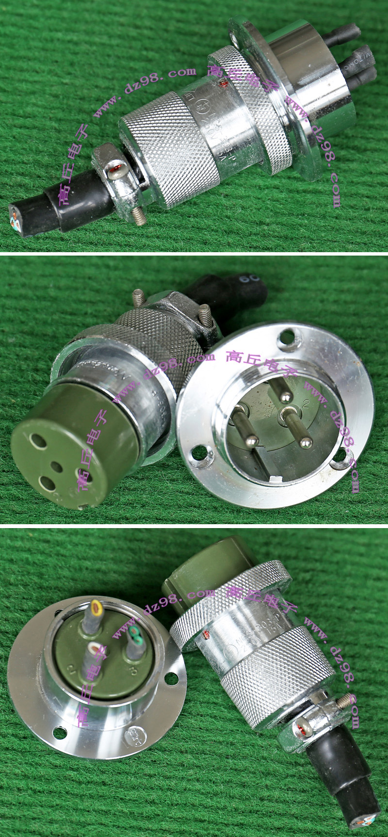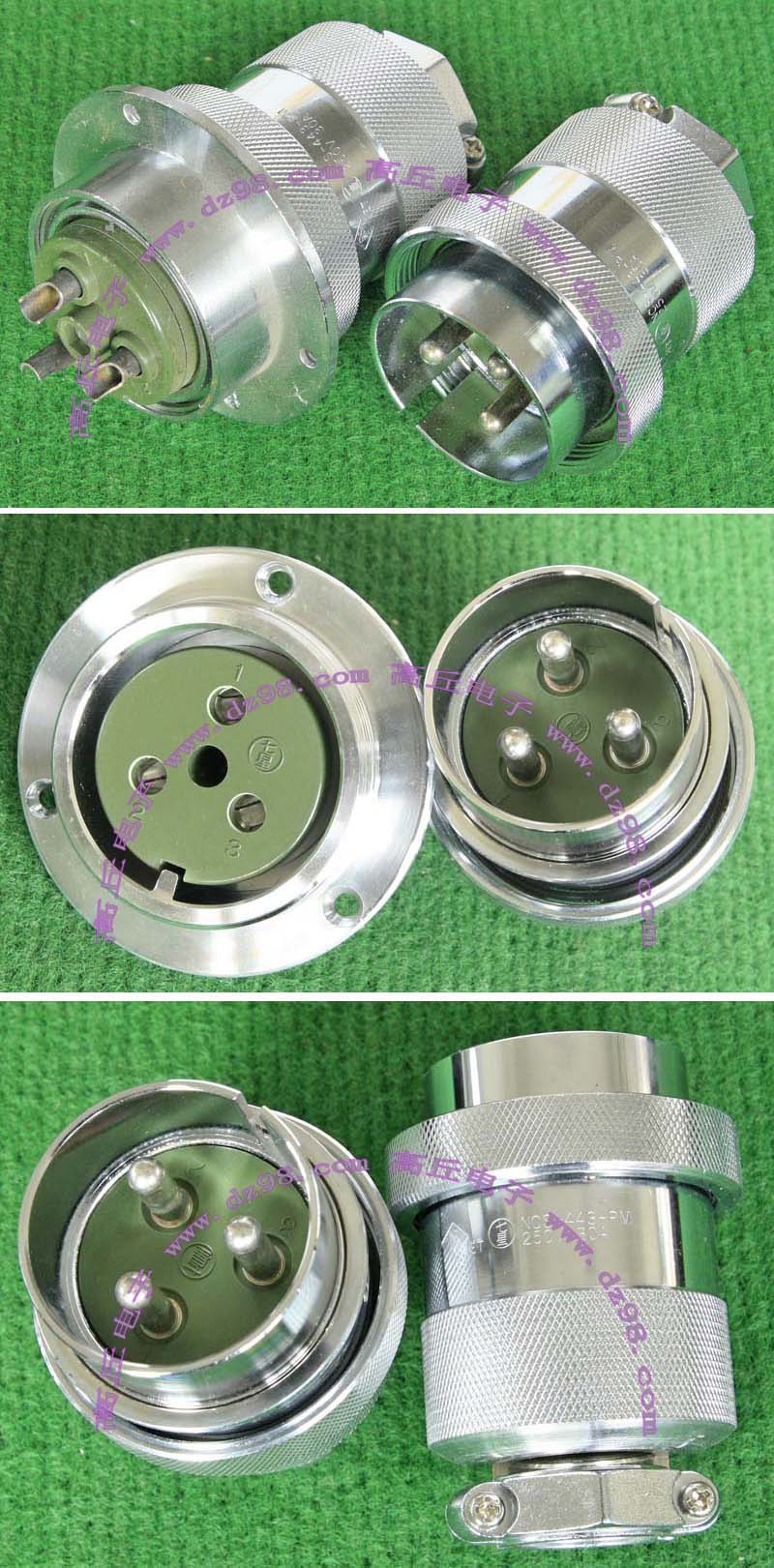 全新进口备件,做工精致,军品级插头与插座,共4P,每芯承受电流估计50-80A,铝合金外壳,镀银导电芯,重量292克,安装开孔直径41.5mm,安装螺丝孔距离40mm。 |