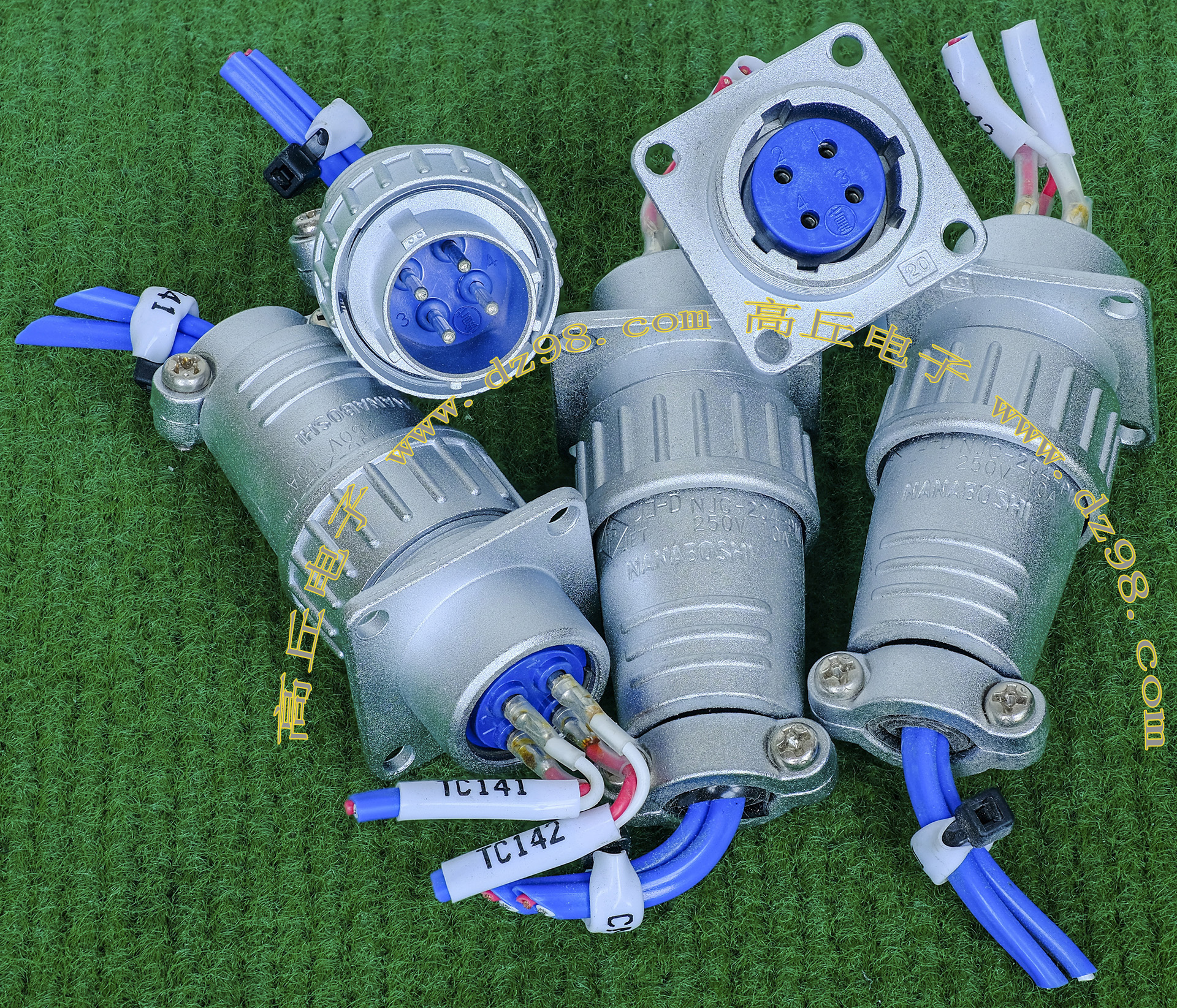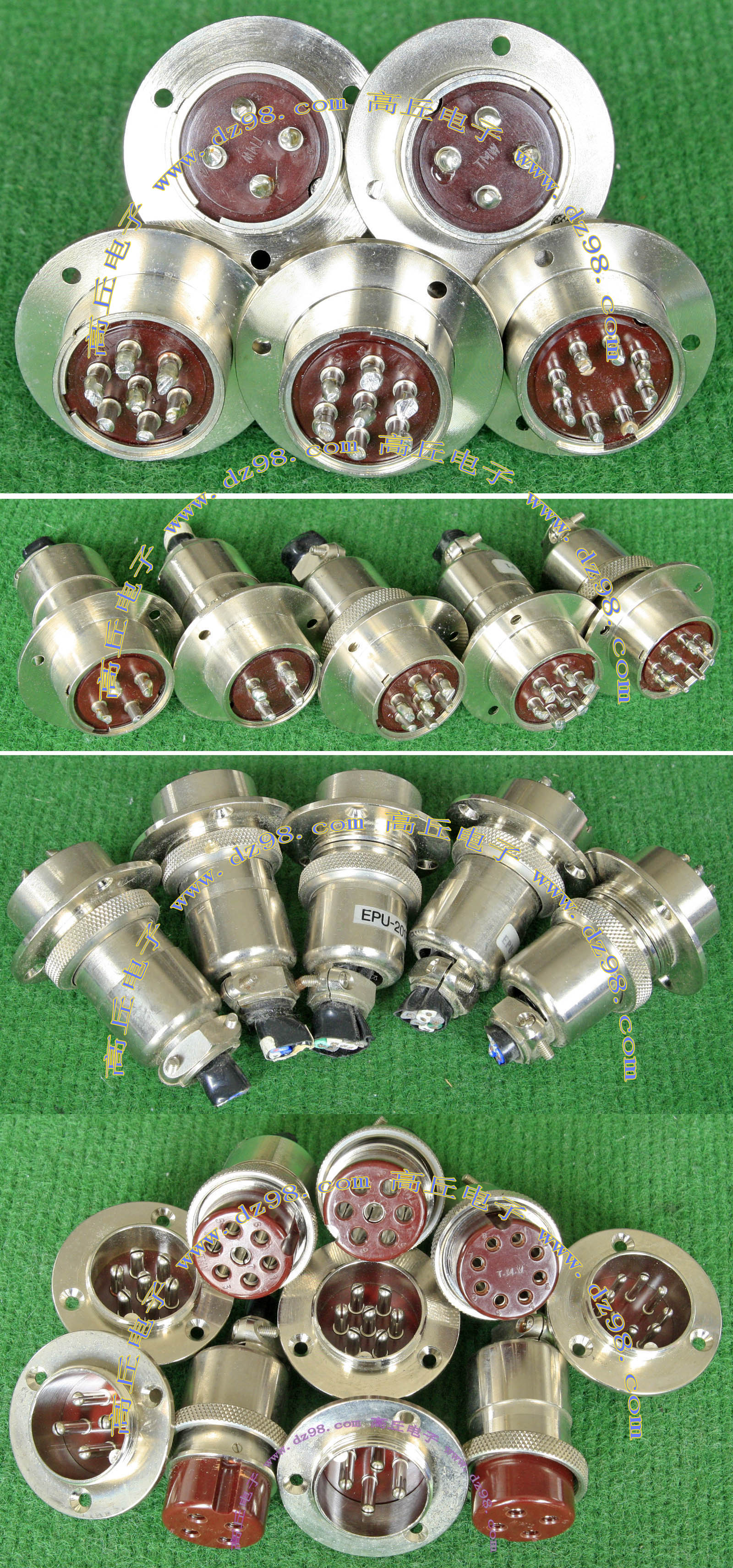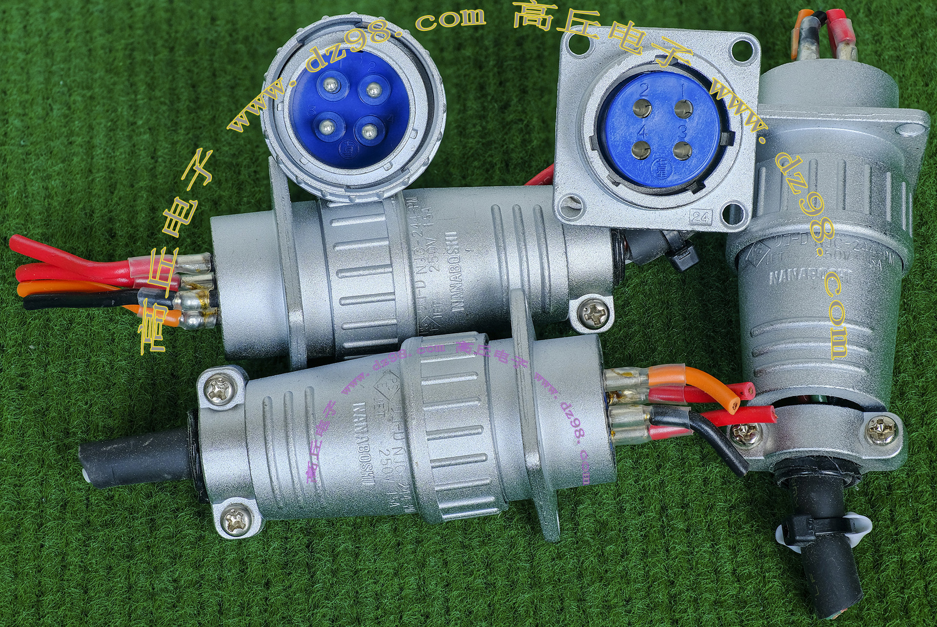 全新进口备件,做工精致,军品级插头与插座,共4P,每芯承受电流估计50-80A,铝合金外壳,镀银导电芯,重量292克,安装开孔直径41.5mm,安装螺丝孔距离40mm。 |