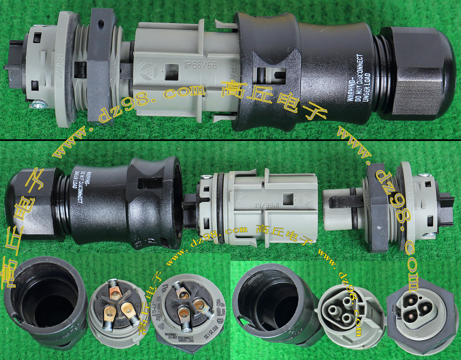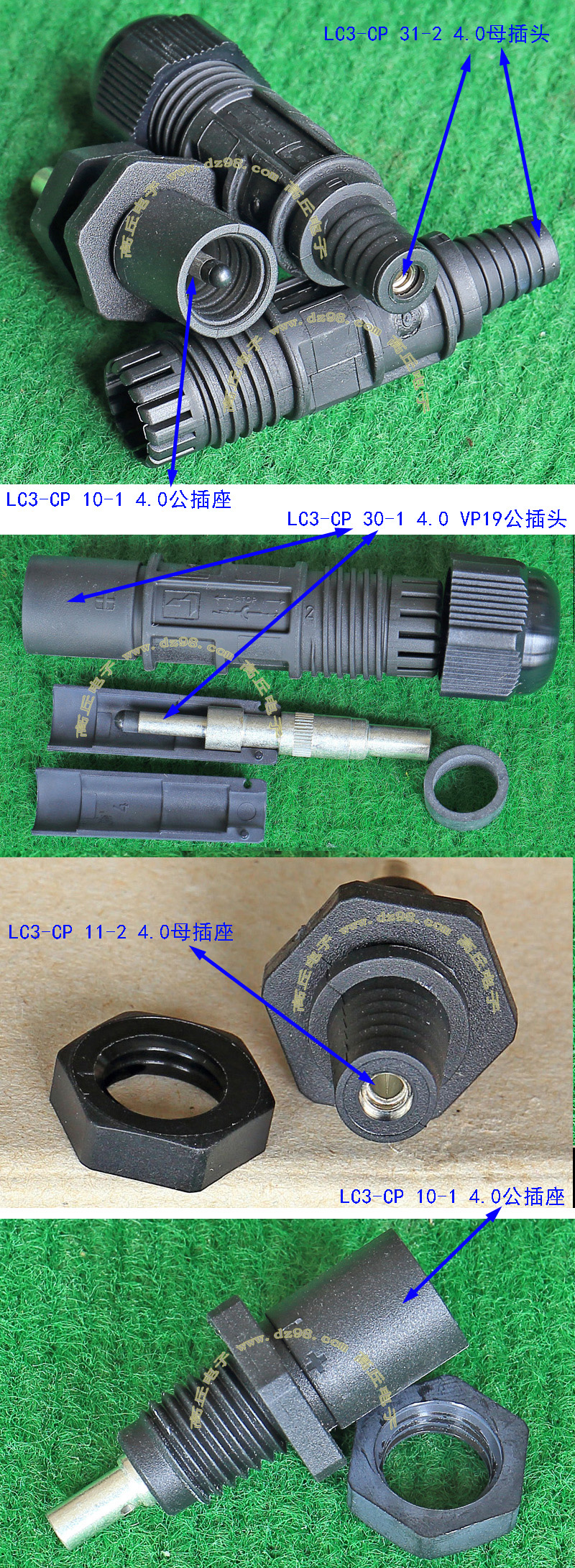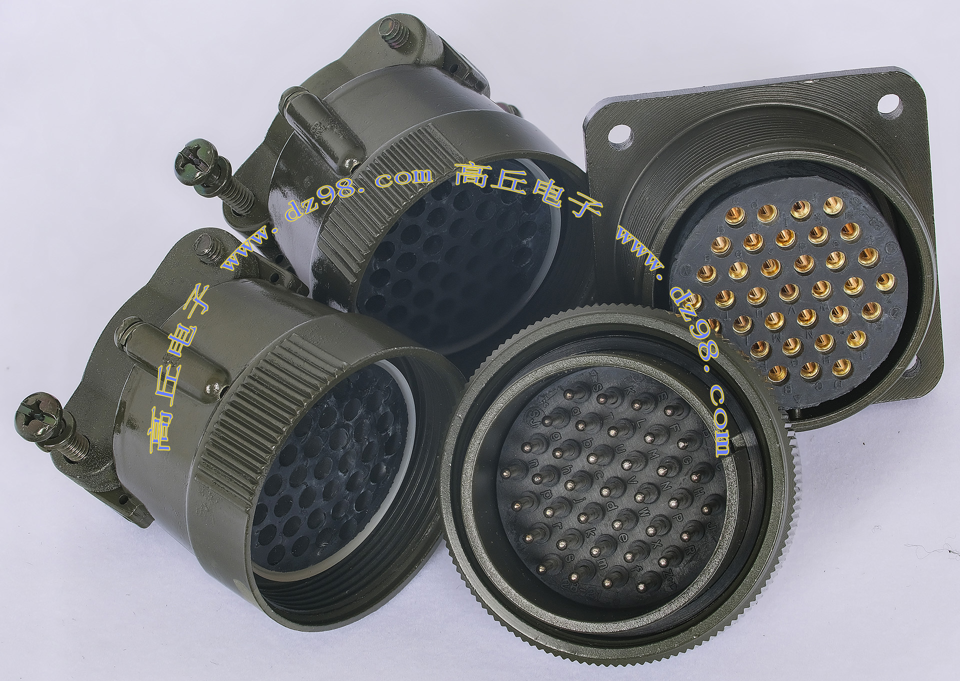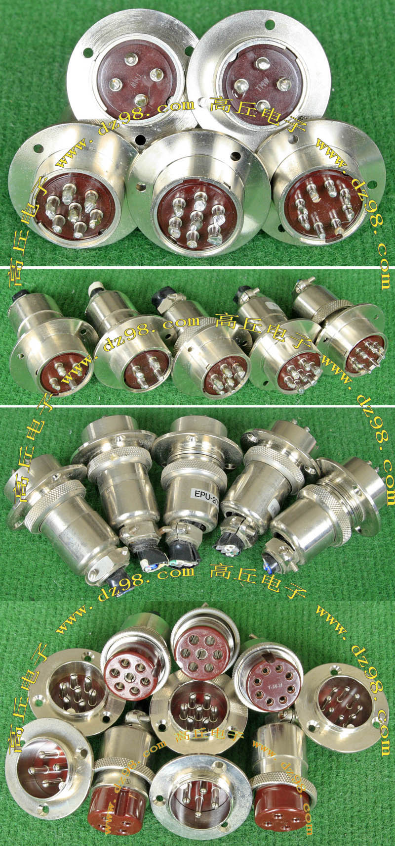 全新进口备件,做工精致,军品级插头与插座,共4P,每芯承受电流估计50-80A,铝合金外壳,镀银导电芯,重量292克,安装开孔直径41.5mm,安装螺丝孔距离40mm。 |