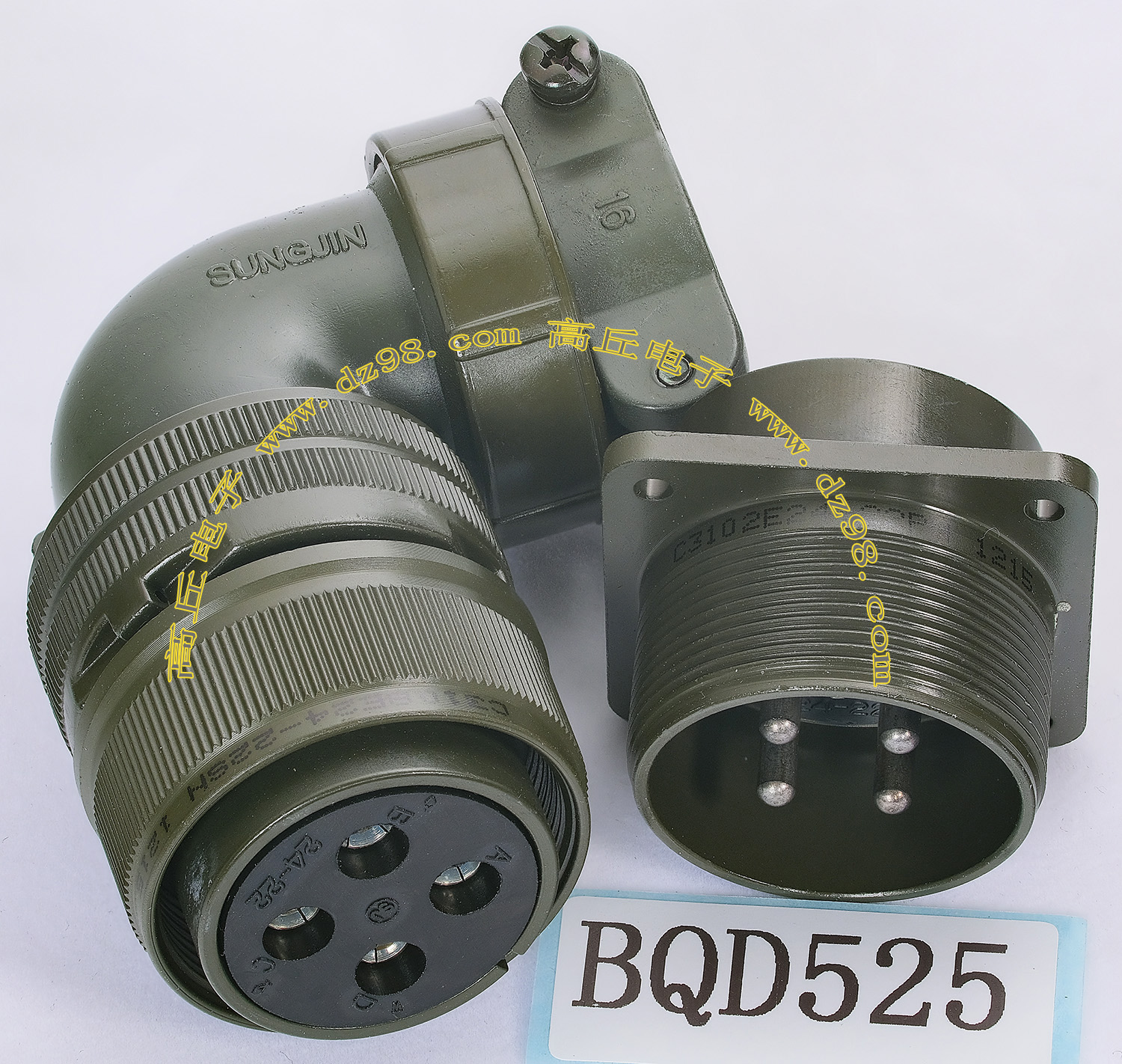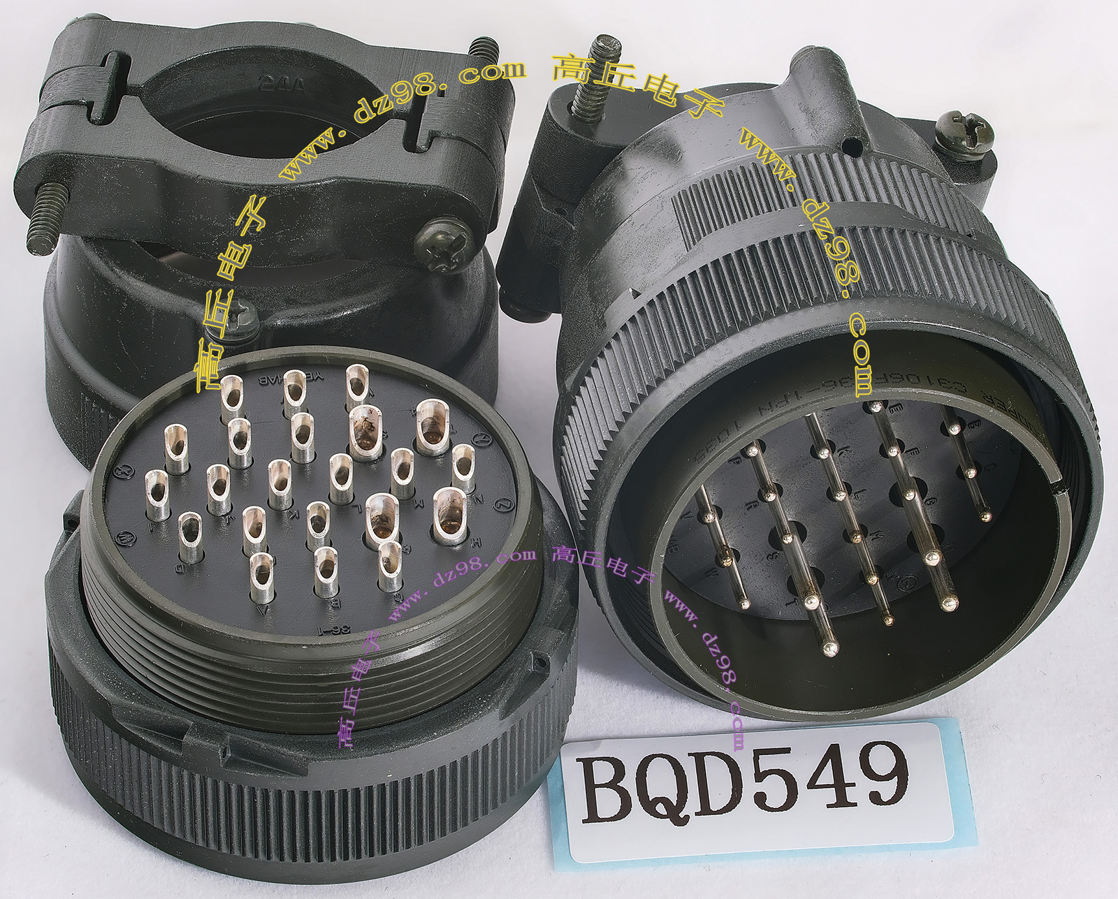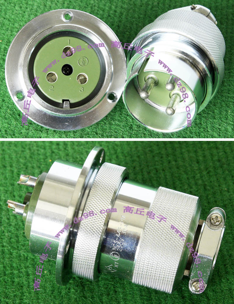 | C3108E24-22SN C3102E24-22PN 4P航空插头插座连接器BQD525 | 全新进口备件,做工精致,军品级插头与插座,共4P,每芯承受电流估计25-35A,铝合金外壳,镀银导电芯,重量265克,安装开孔直径35.5mm,安装螺丝孔距离35.5mm。 |