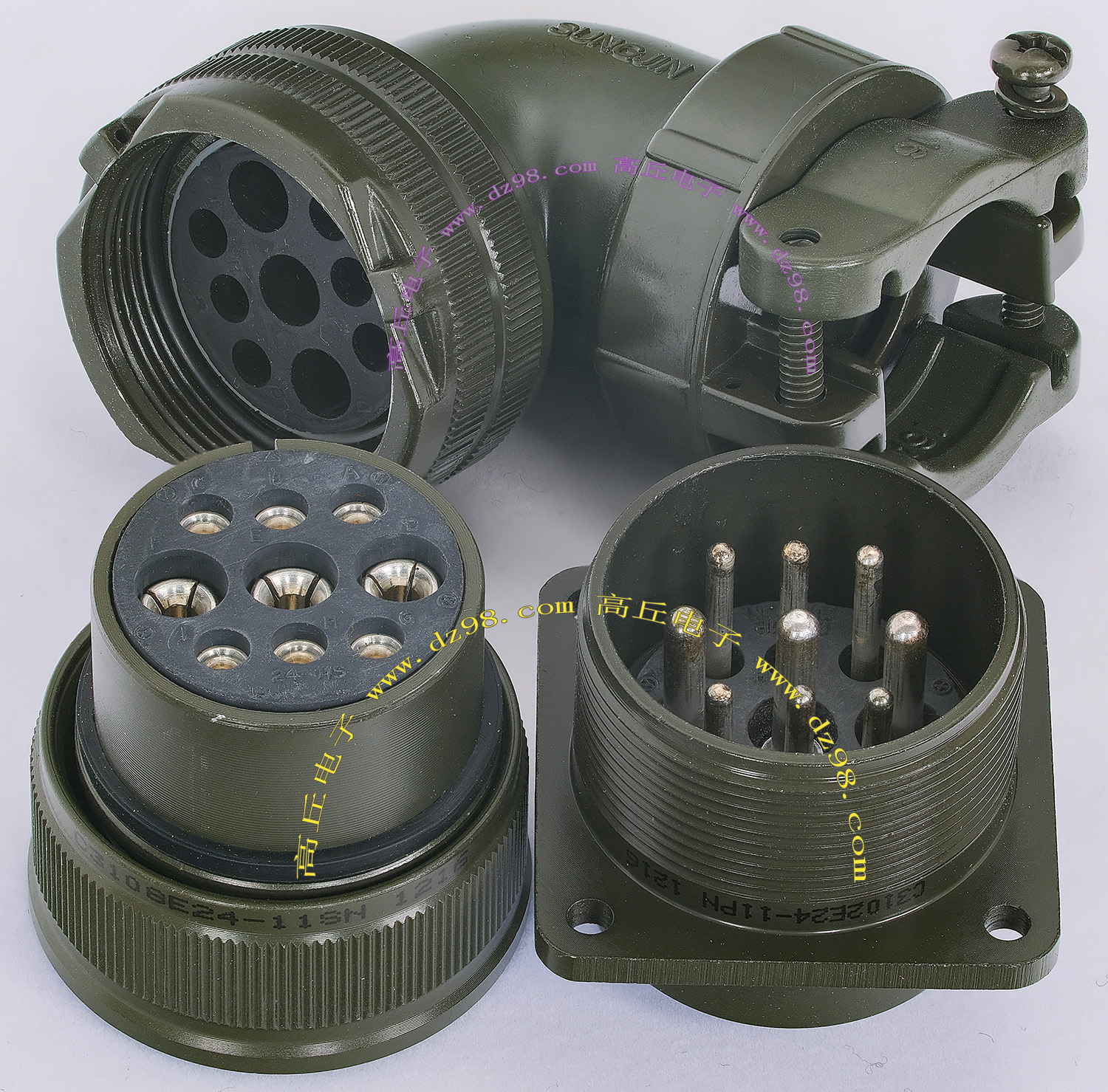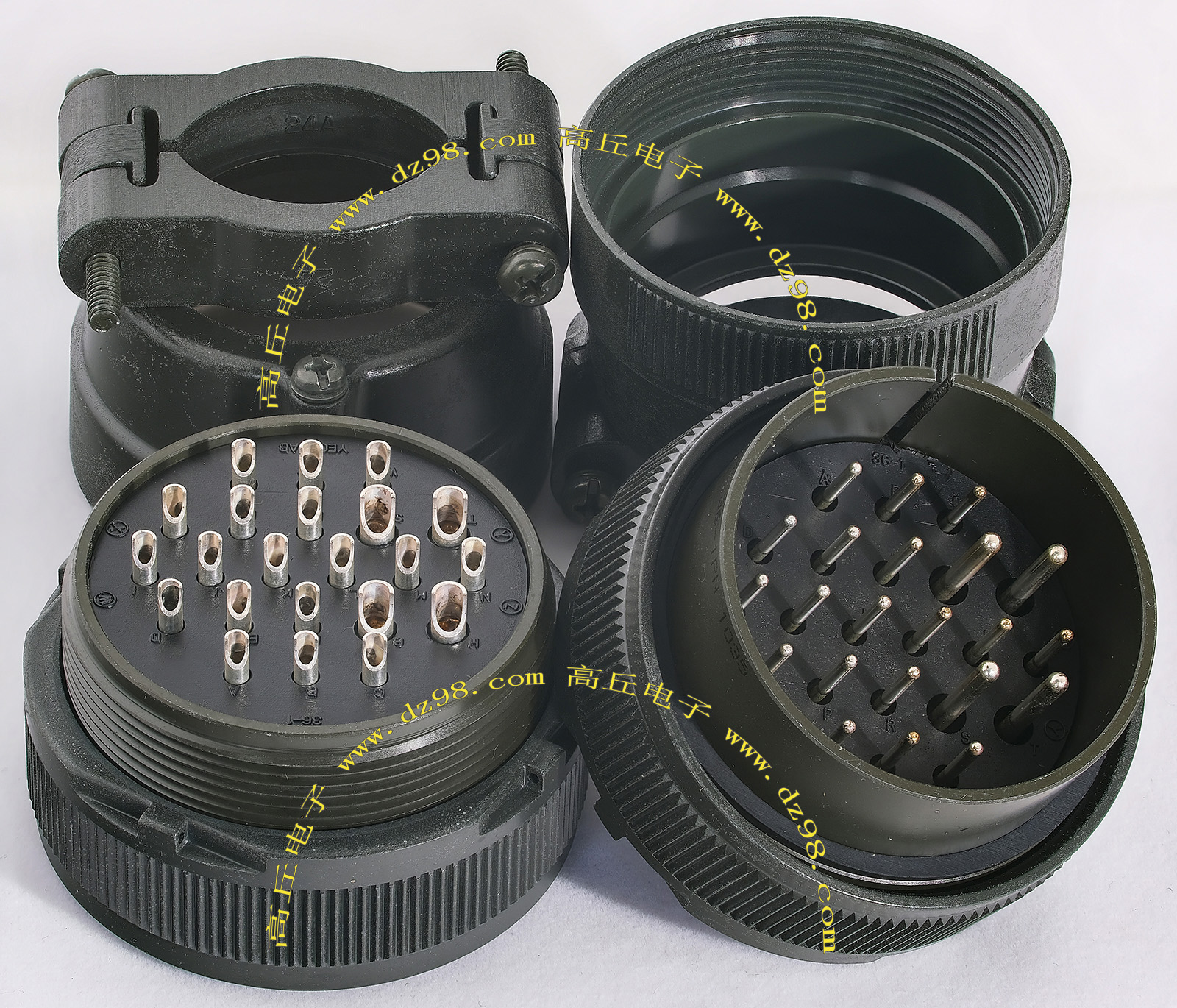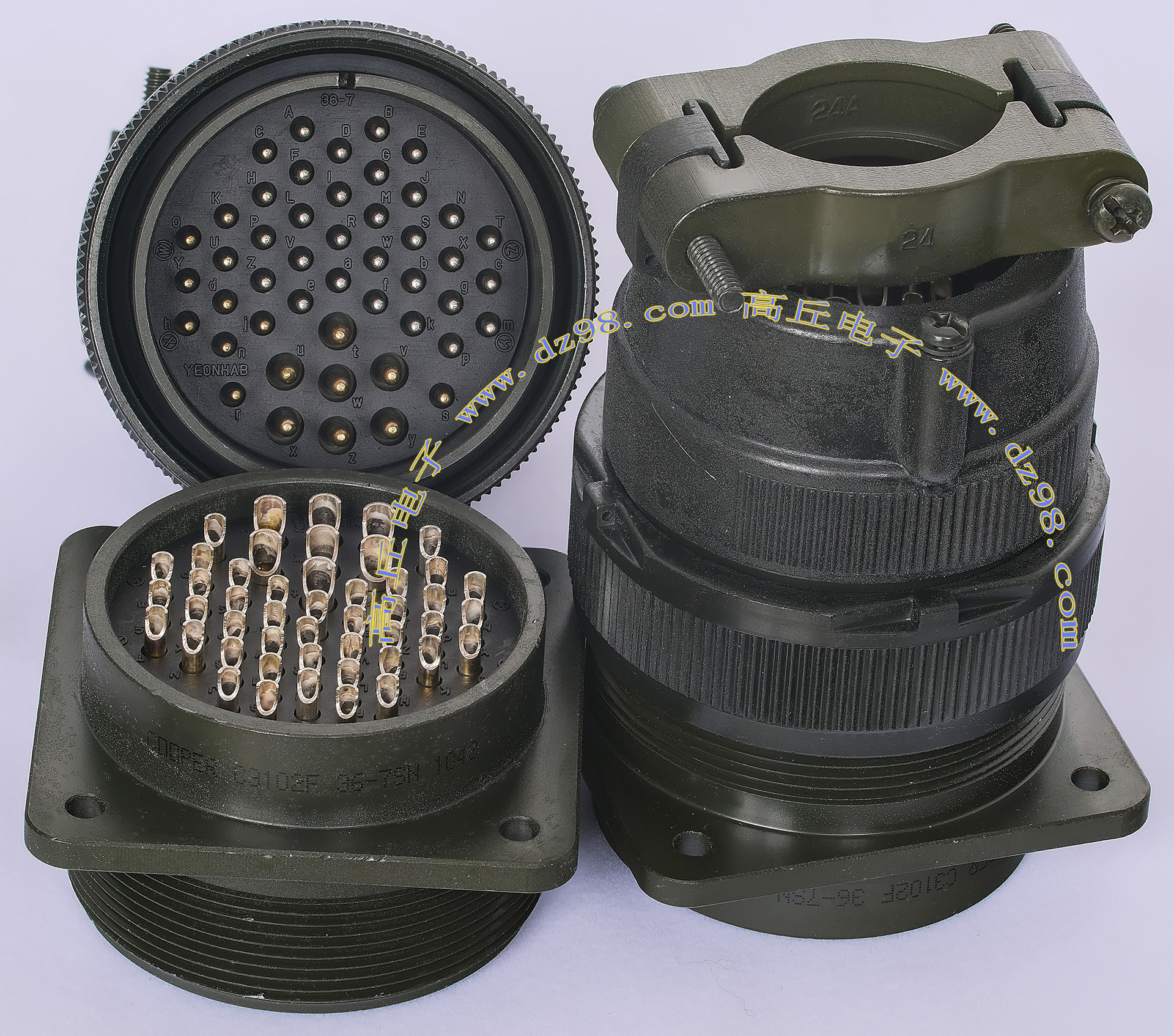 | C3108E24-22SN C3102E24-22PN 4P航空插头插座连接器BQD525 | 全新进口备件,做工精致,军品级插头与插座,共4P,每芯承受电流估计25-35A,铝合金外壳,镀银导电芯,重量265克,安装开孔直径35.5mm,安装螺丝孔距离35.5mm。 |
