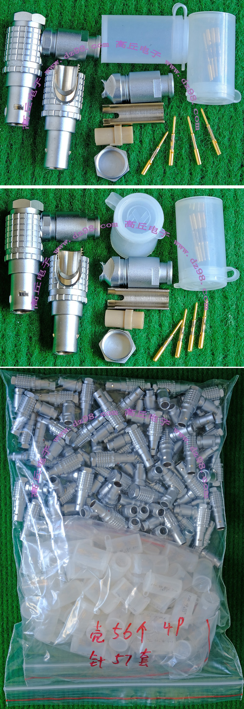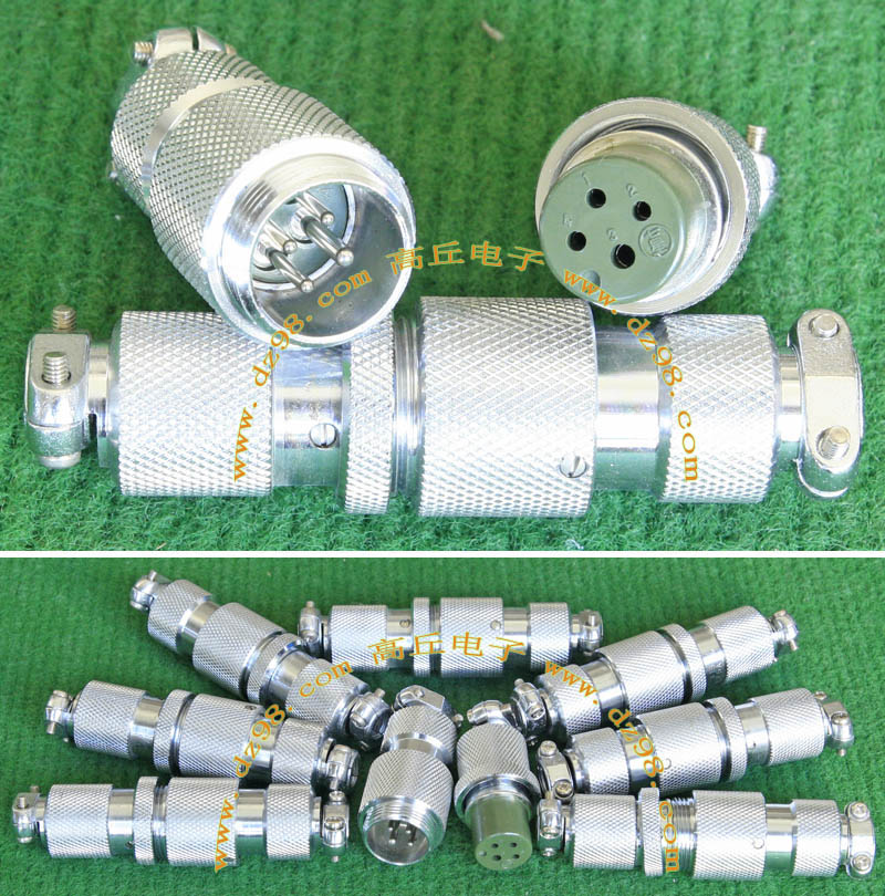 全新进口备件,做工精致,军品级插头与插座,共4P,每芯承受电流估计10-15A,铝合金外壳,镀银导电芯,重量155克,安装开孔直径29mm,安装螺丝孔距离29mm。 |