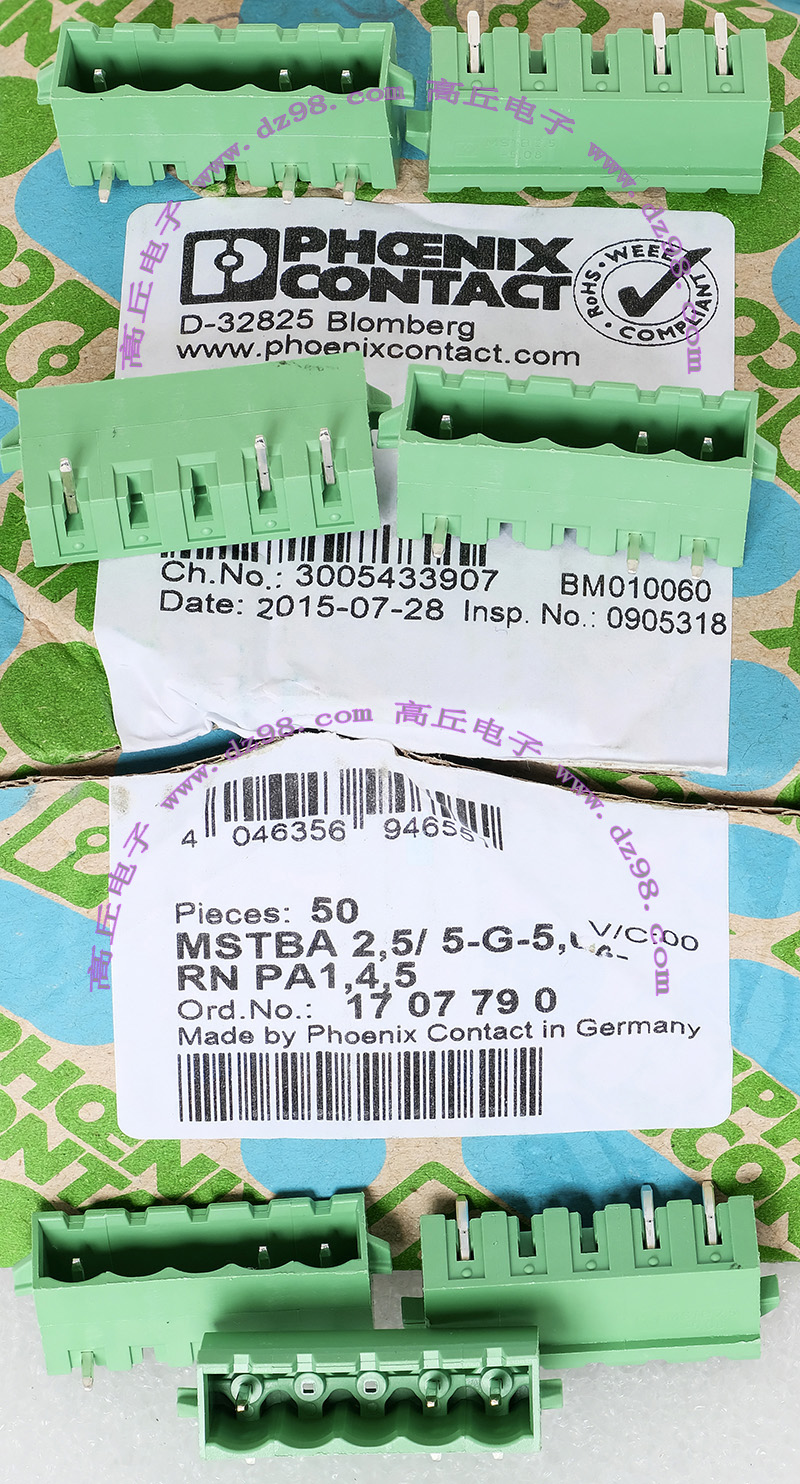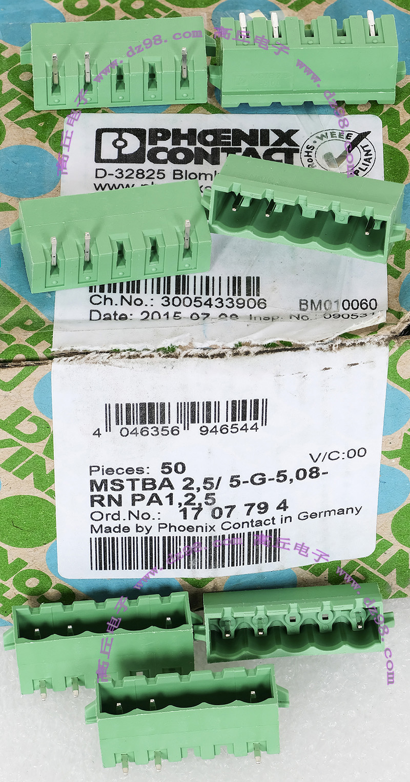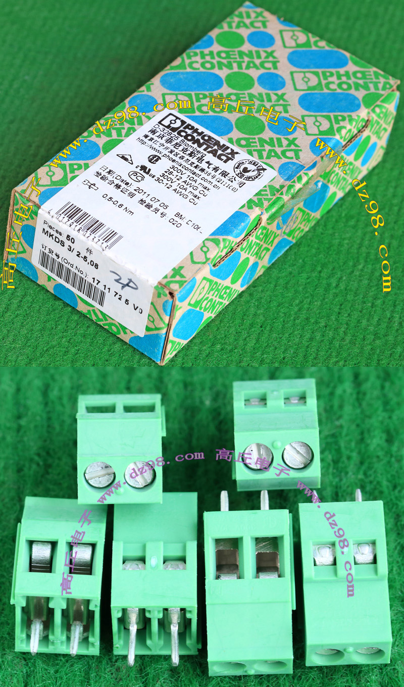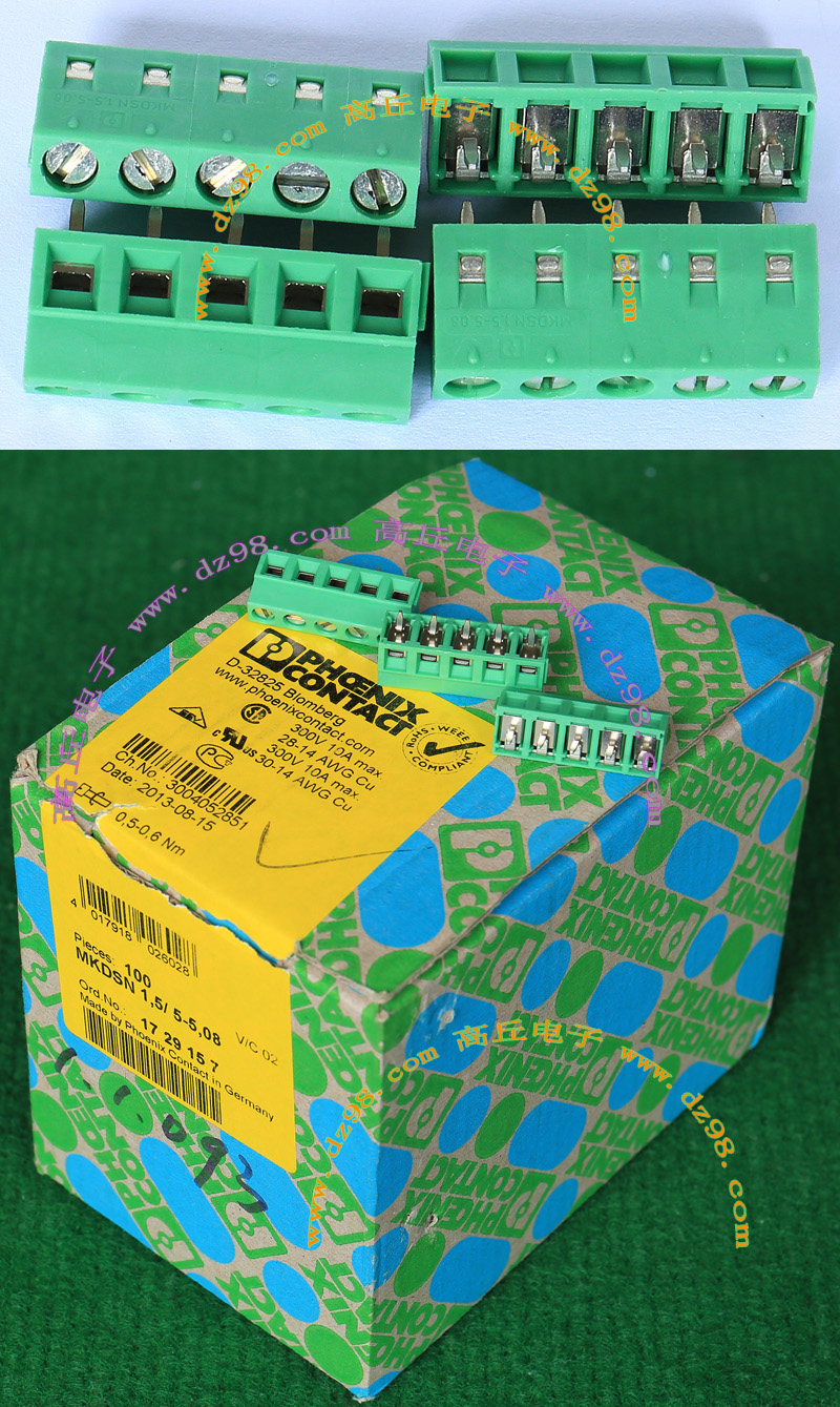 PHOENIX CONTACT菲尼克斯UPBV4/5 600V 30A 26-10AWG接线端子插头BQD595 数量450只 |