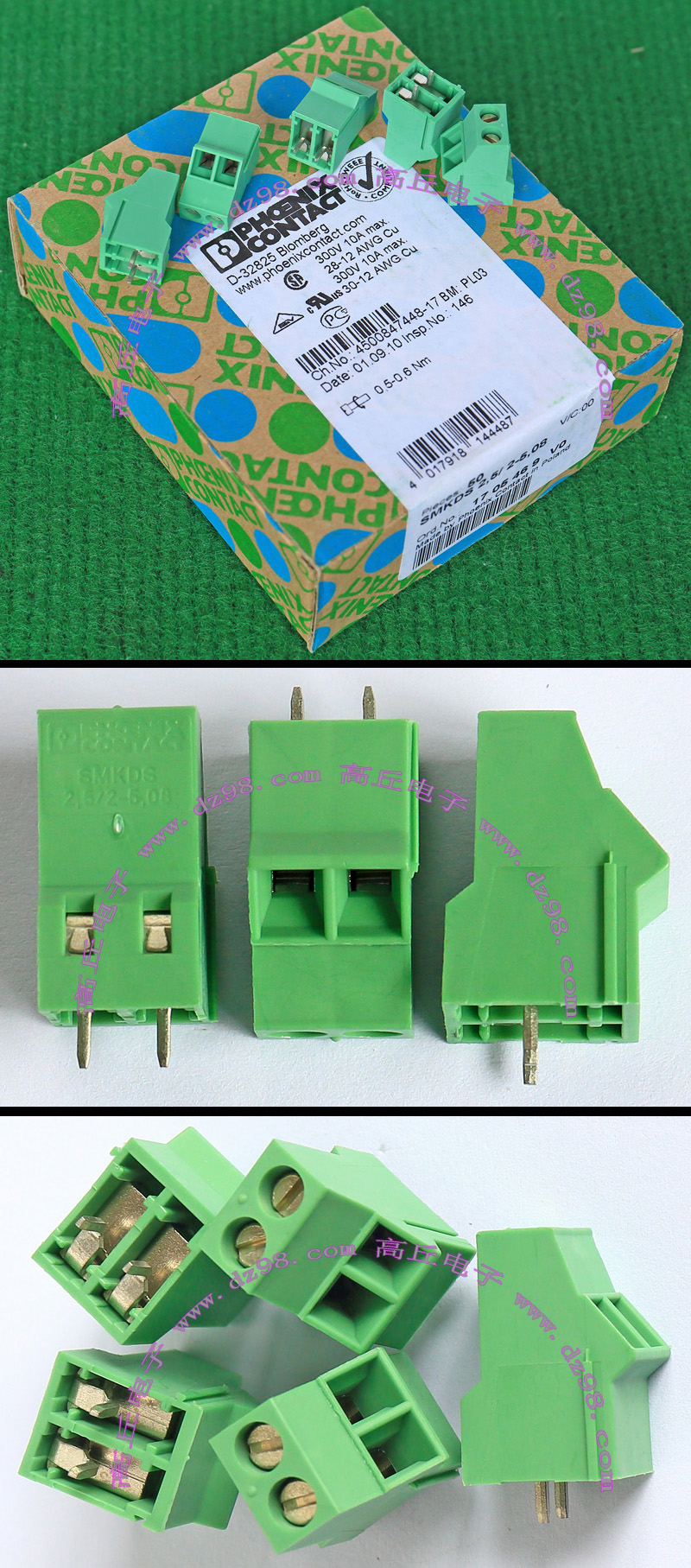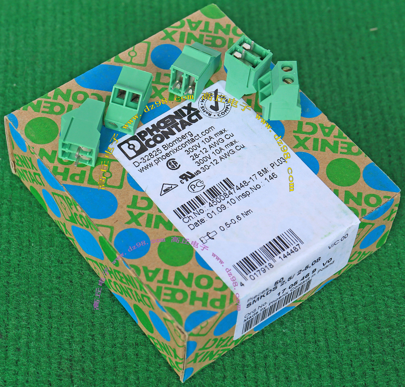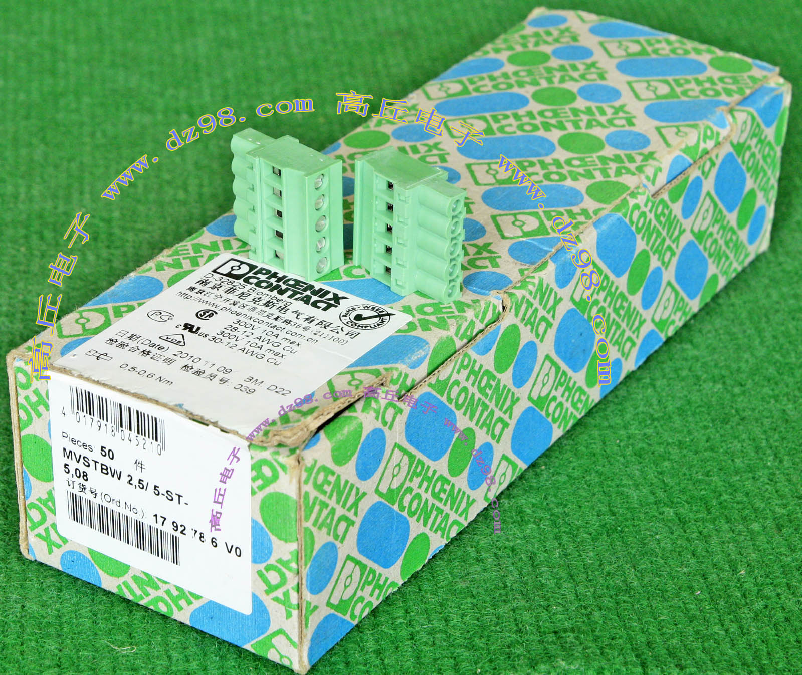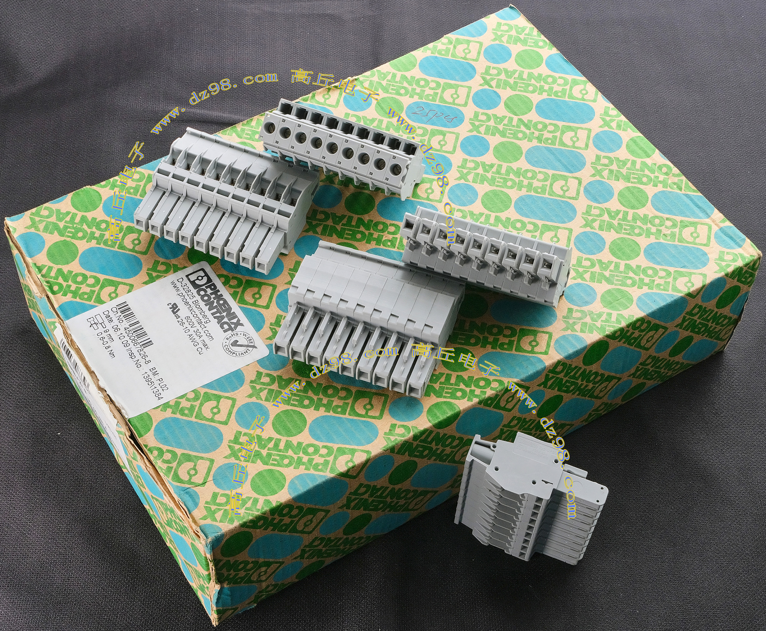 PHOENIX CONTACT菲尼克斯UPBV4/5 600V 30A 26-10AWG接线端子插头BQD595 数量450只 |